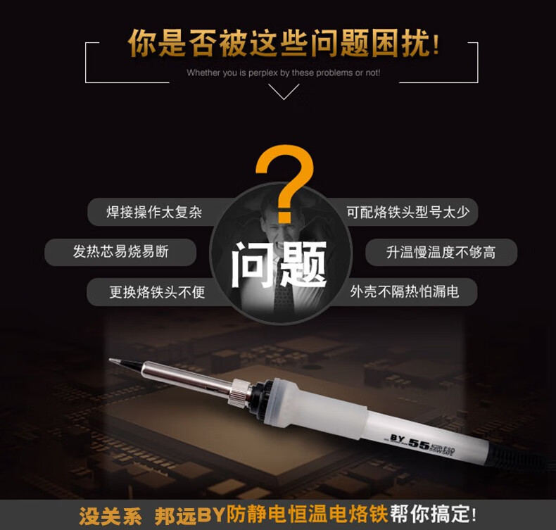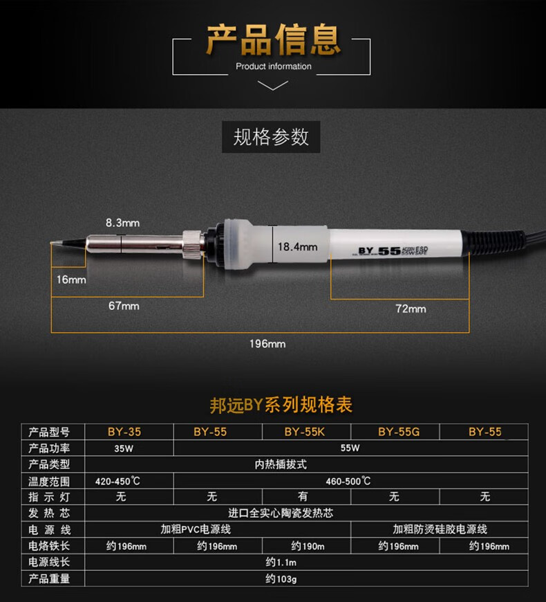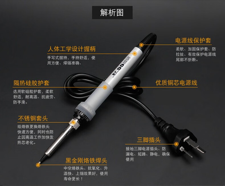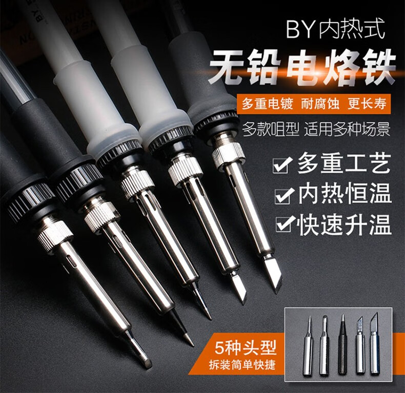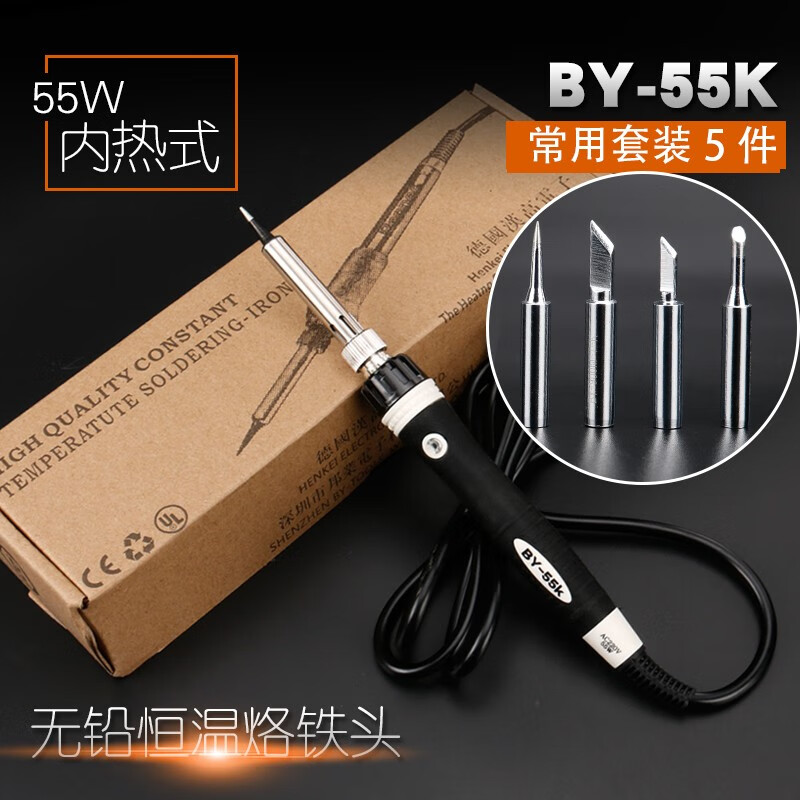 邦远电烙铁套装家用维修锡焊60W工业级电焊笔BY55A可调恒温内热电洛铁 BY55+4个头