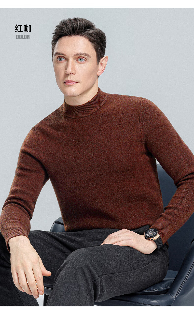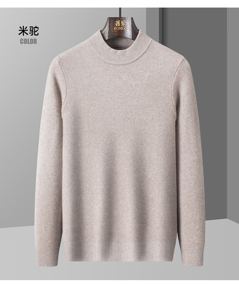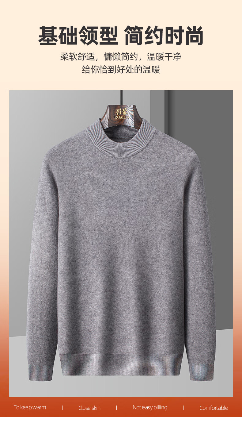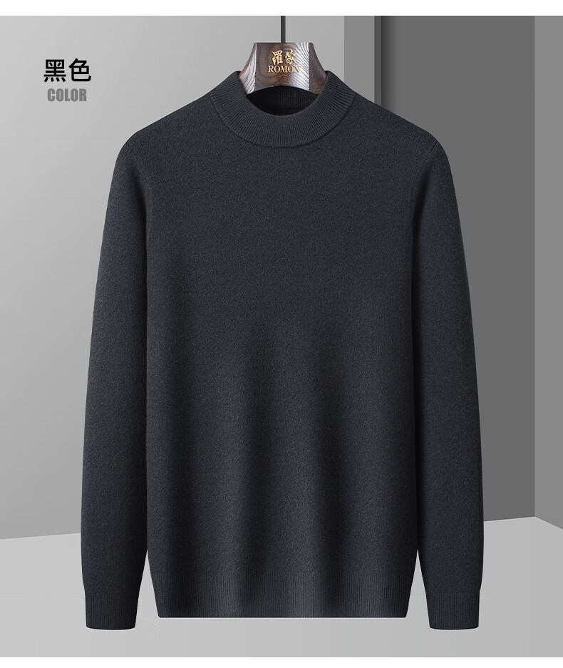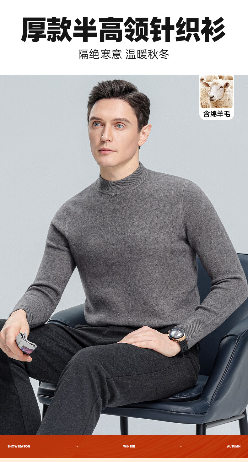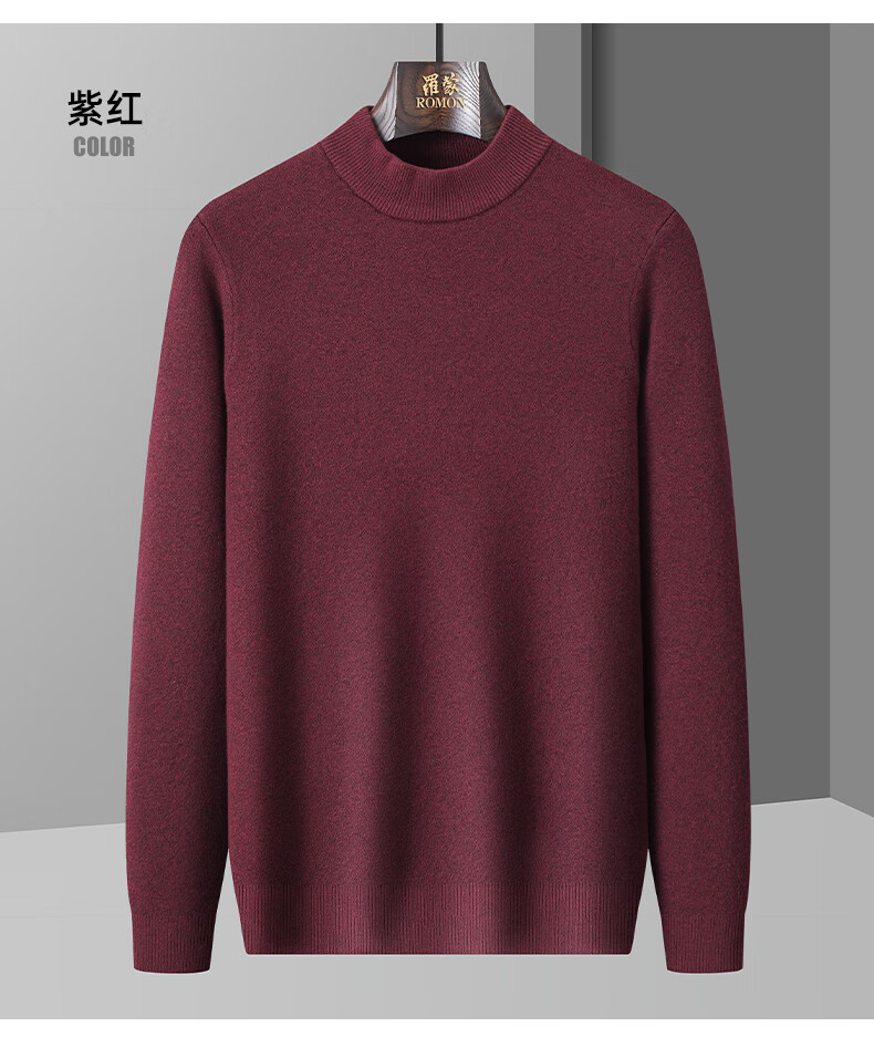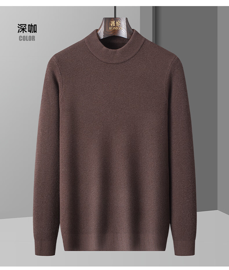 罗蒙(ROMON)【含绵羊毛】男士半高领针织衫秋季新款商务休闲舒适百搭厚毛衣男 红咖 XL (180)
