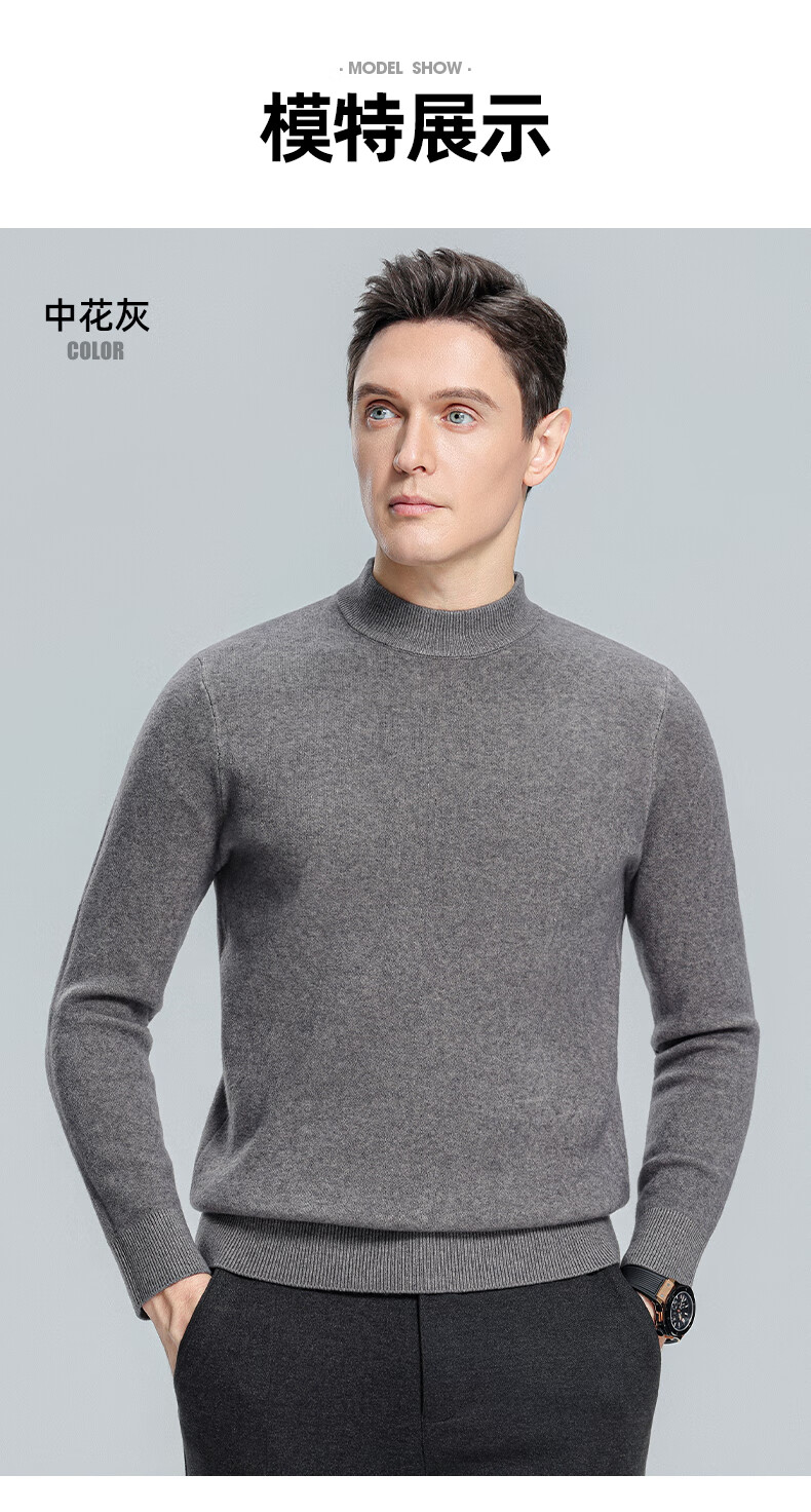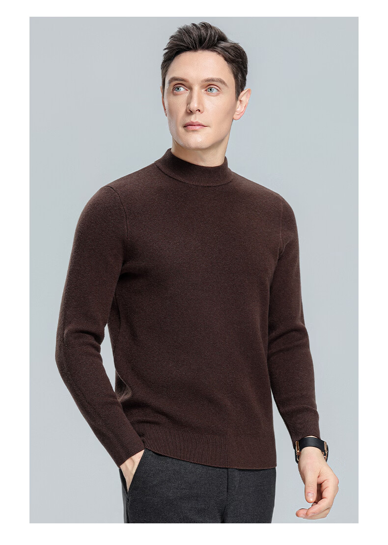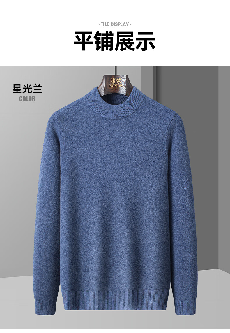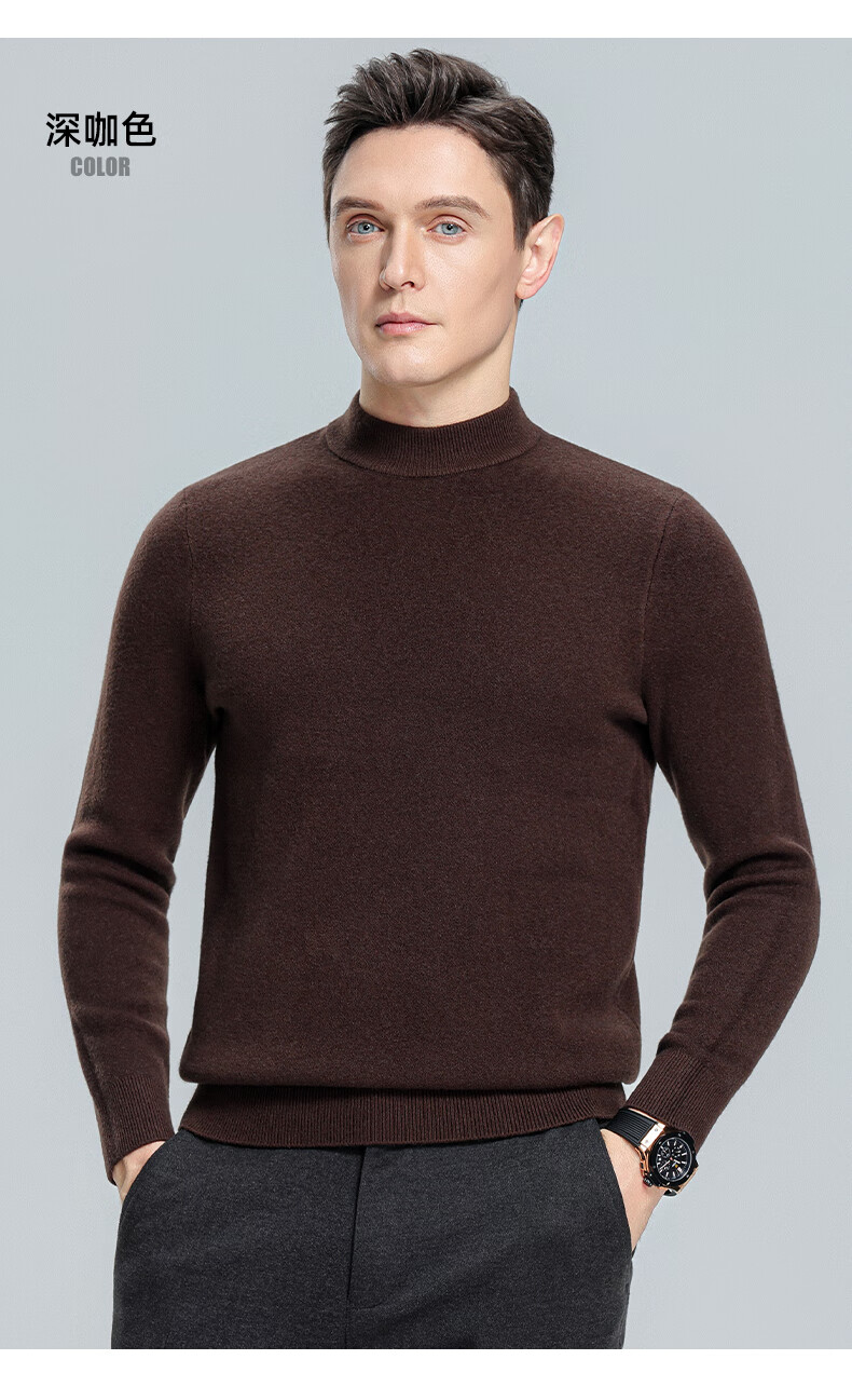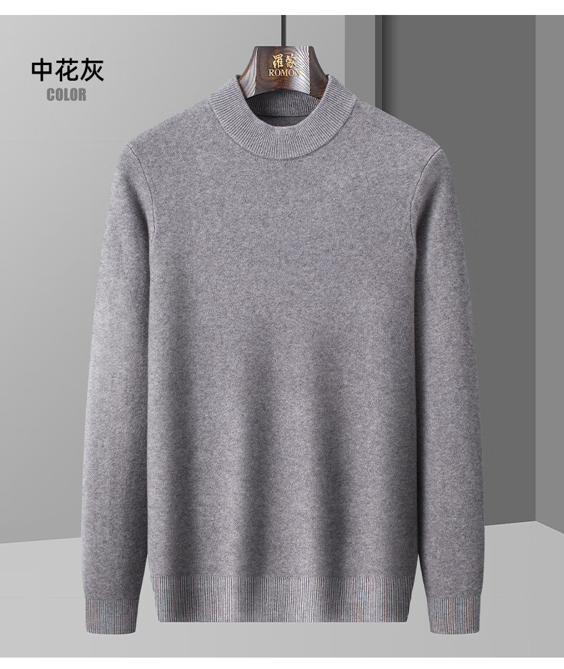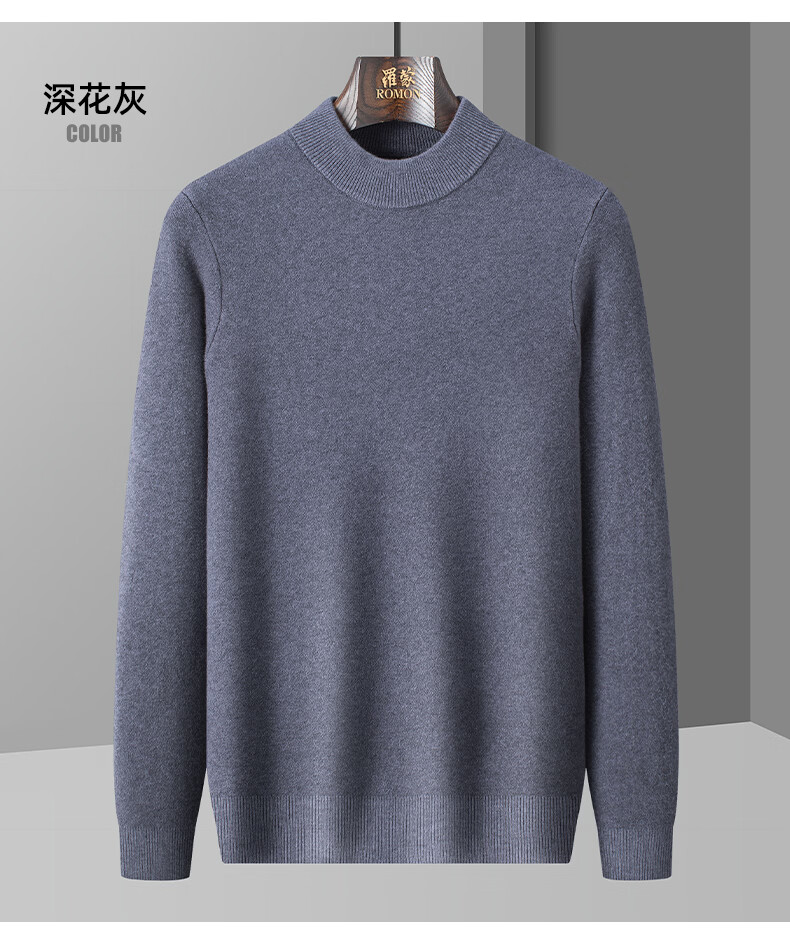 罗蒙(ROMON)【含绵羊毛】男士半高领针织衫秋季新款商务休闲舒适百搭厚毛衣男 红咖 XL (180)