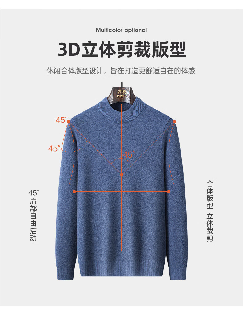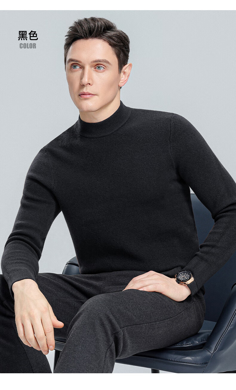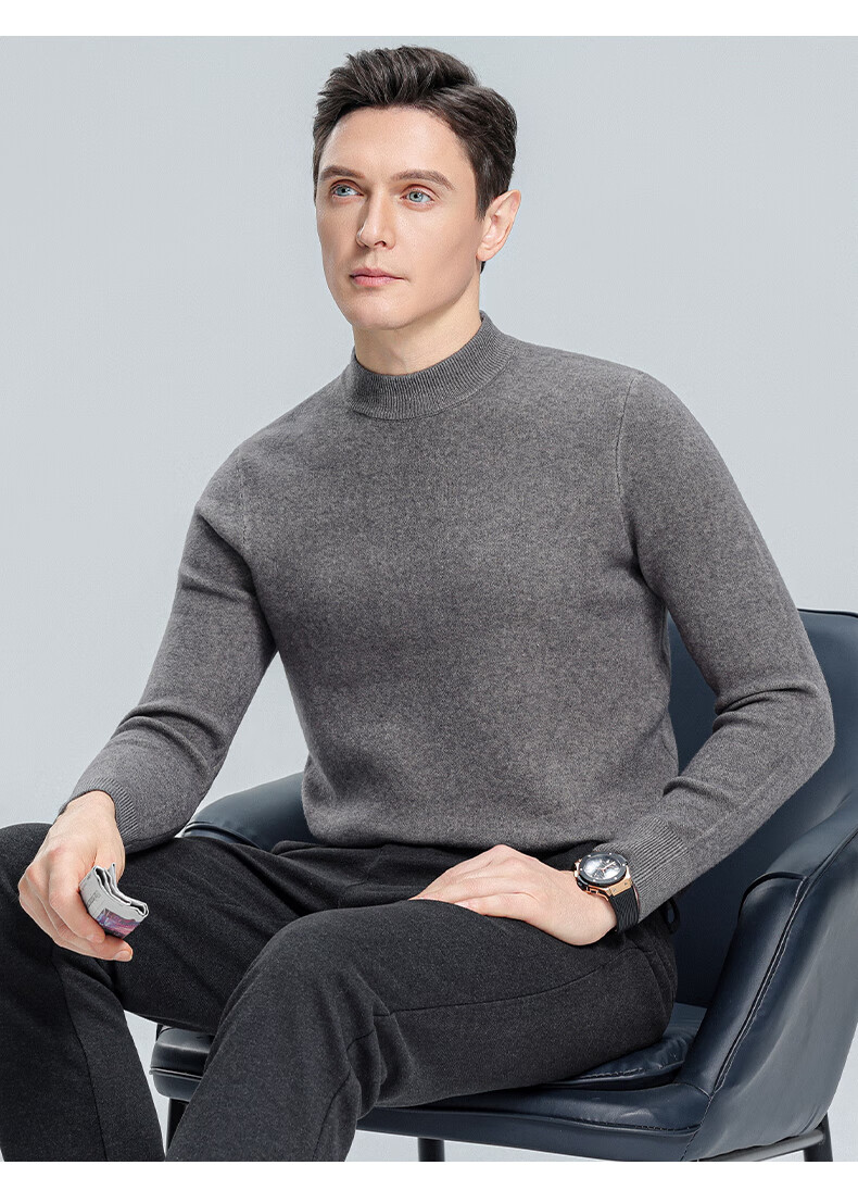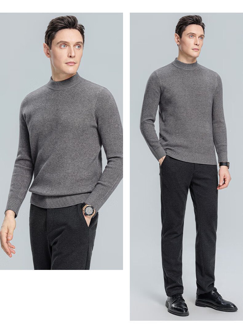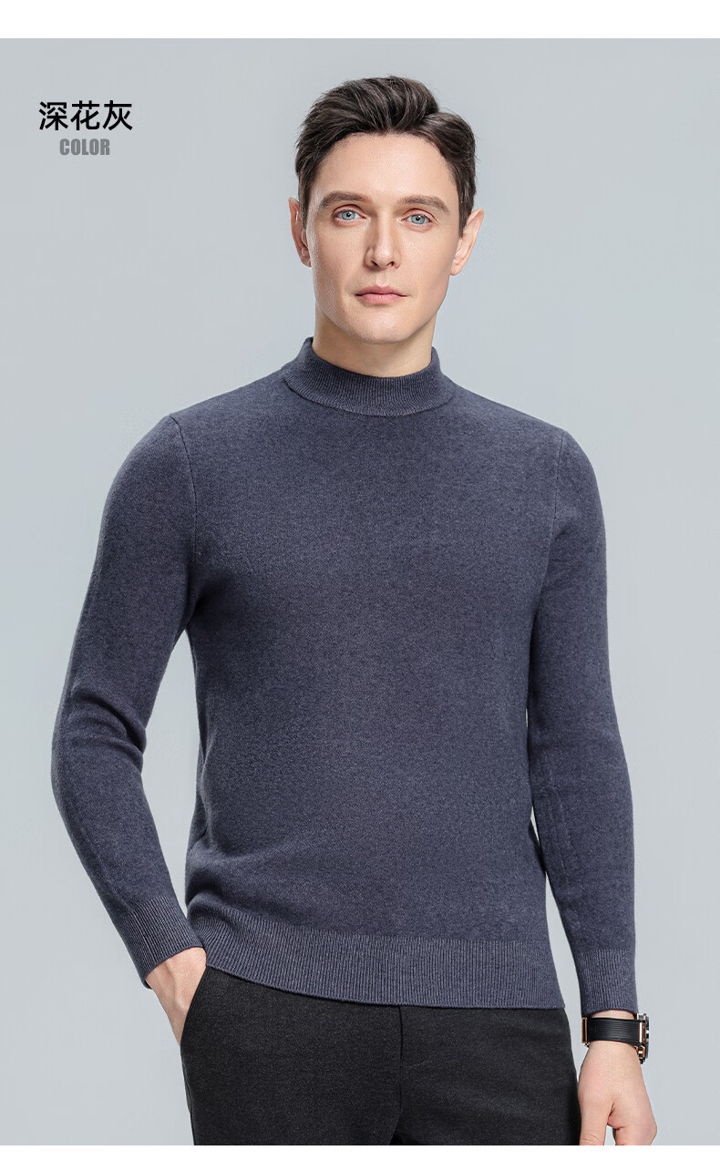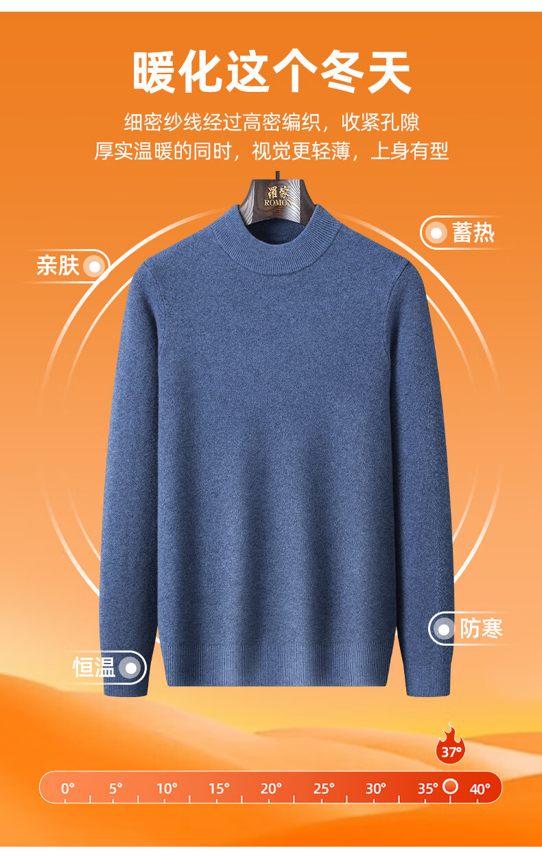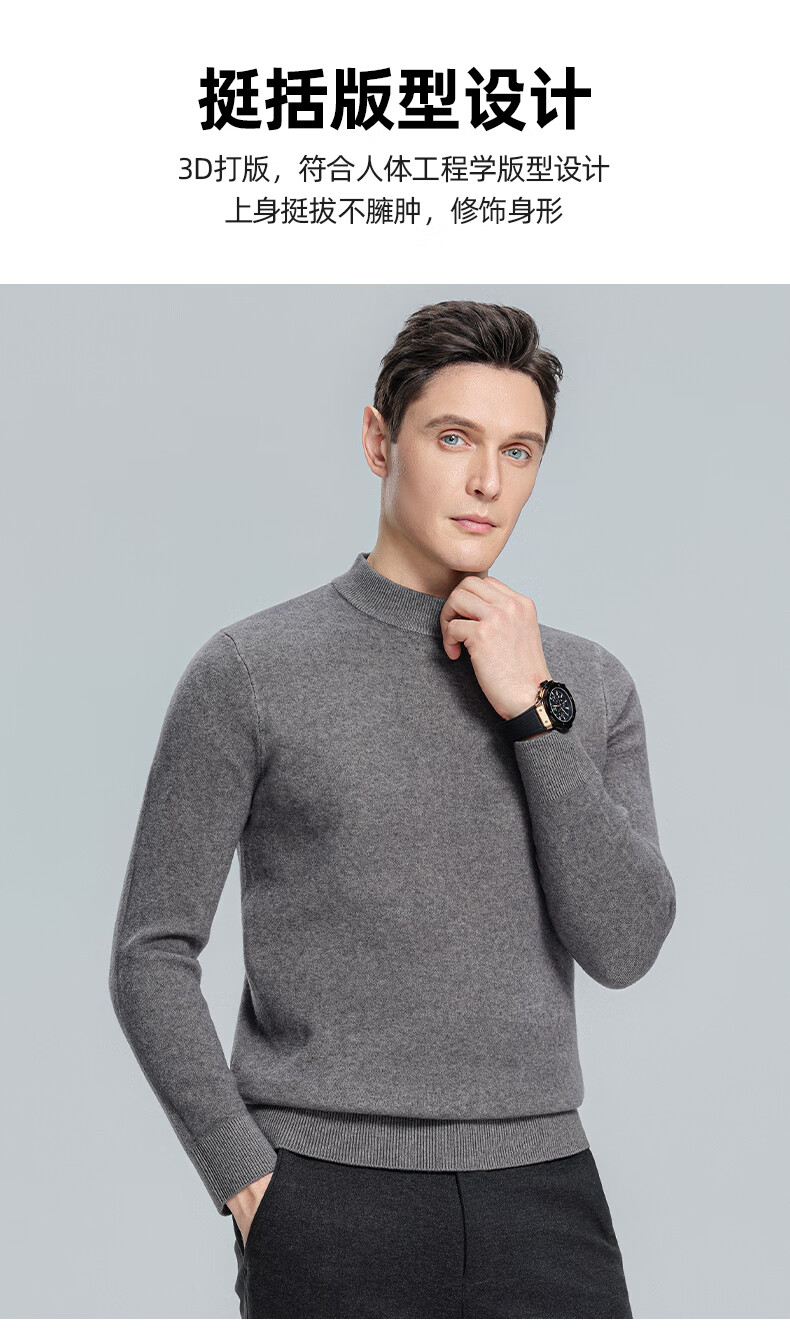 罗蒙(ROMON)【含绵羊毛】男士半高领针织衫秋季新款商务休闲舒适百搭厚毛衣男 红咖 XL (180)