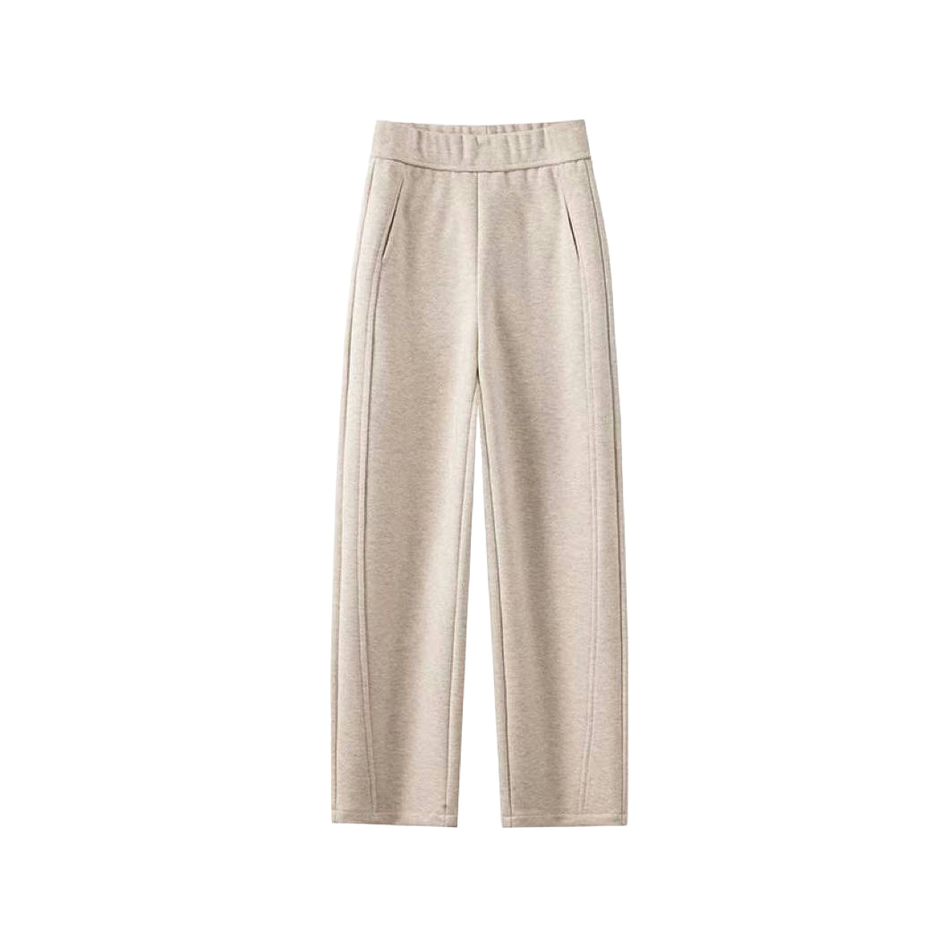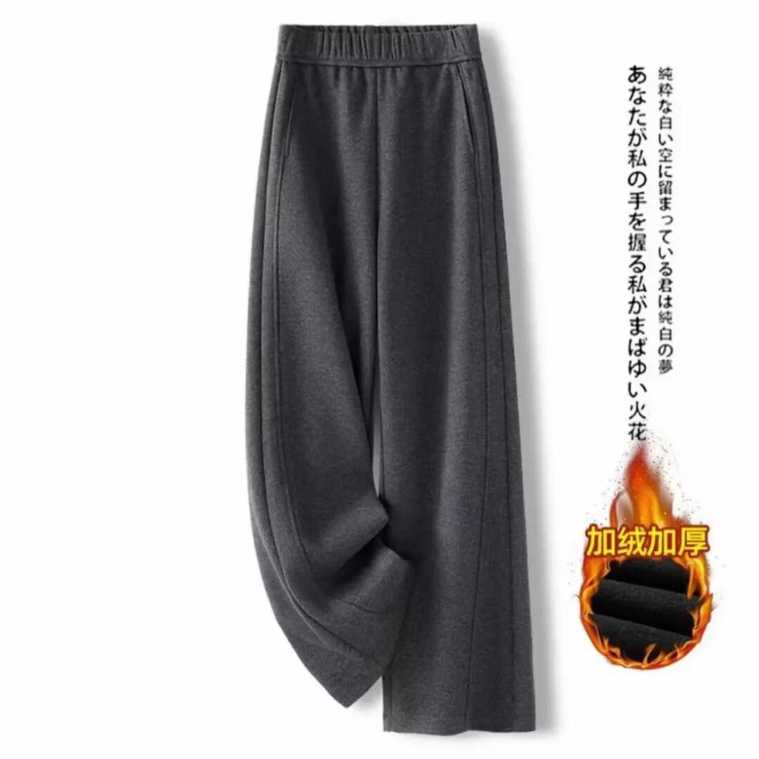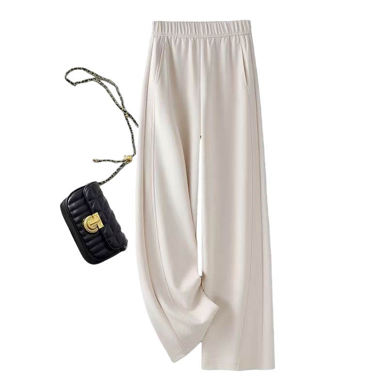 【报恩裤】2025秋冬新款高腰休闲加绒糯米绒弯刀裤宽松大码直筒裤 米杏色【加绒】 M 【适合80-105斤】