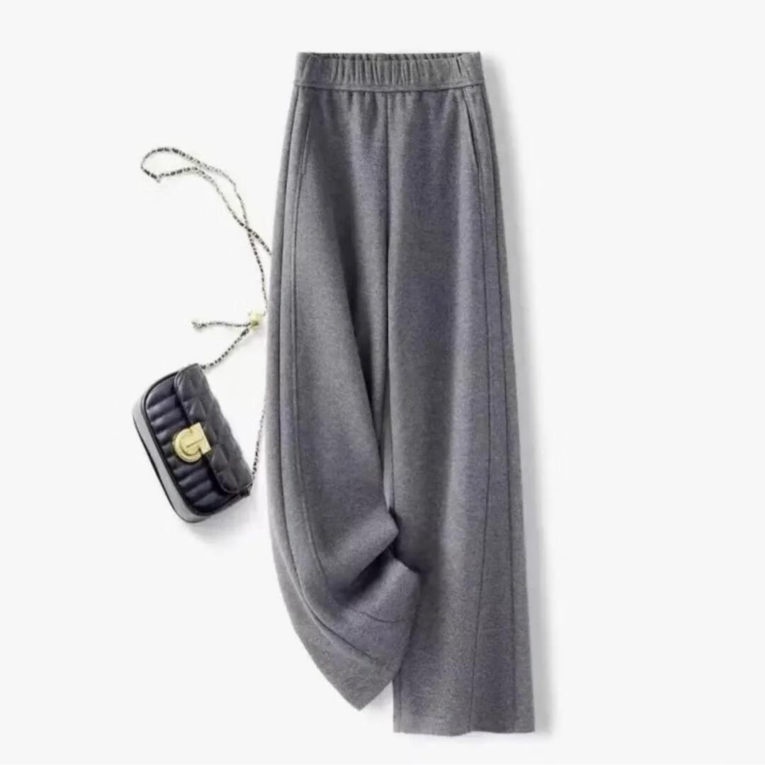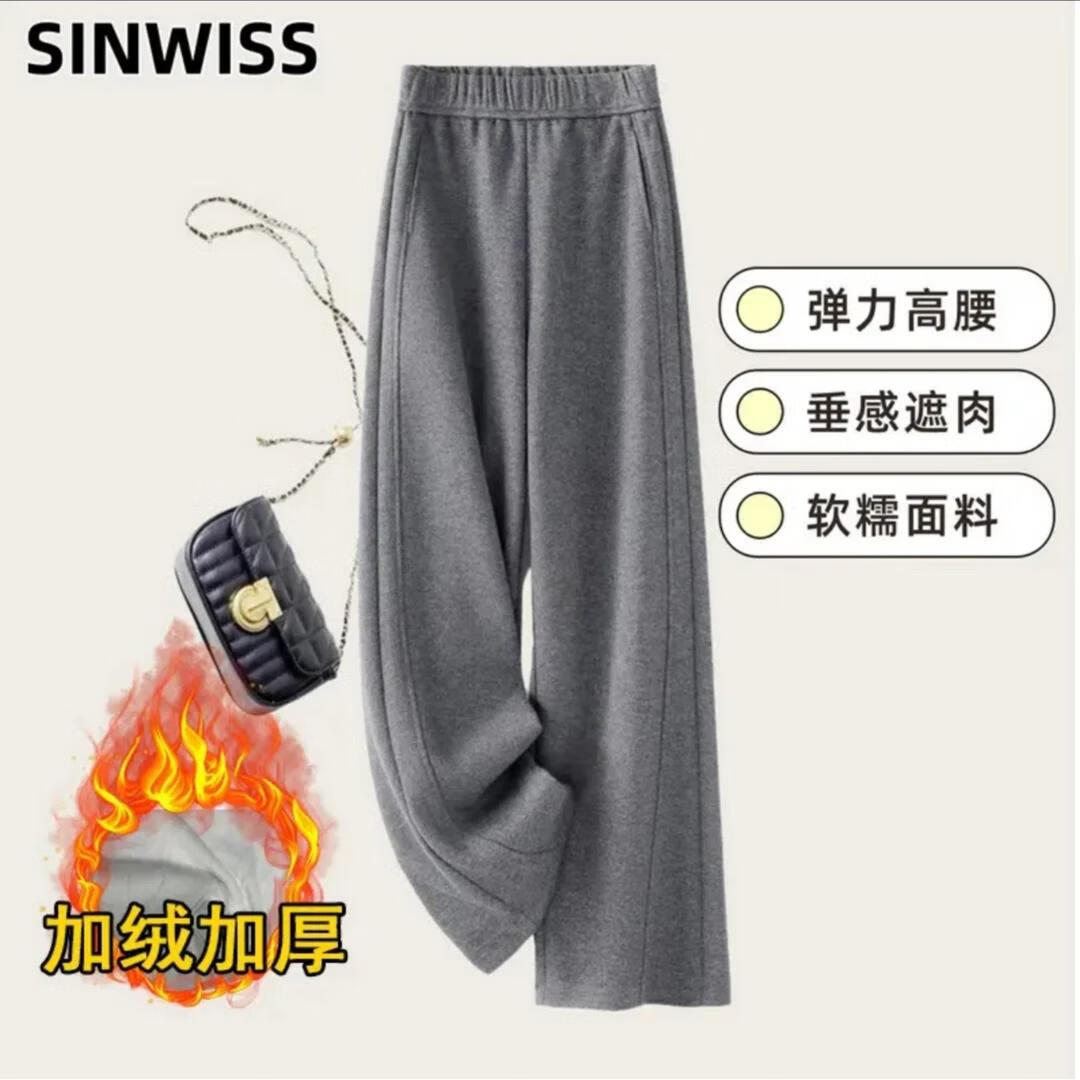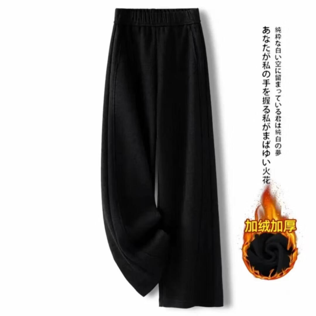 【报恩裤】2025秋冬新款高腰休闲加绒糯米绒弯刀裤宽松大码直筒裤 米杏色【加绒】 M 【适合80-105斤】
