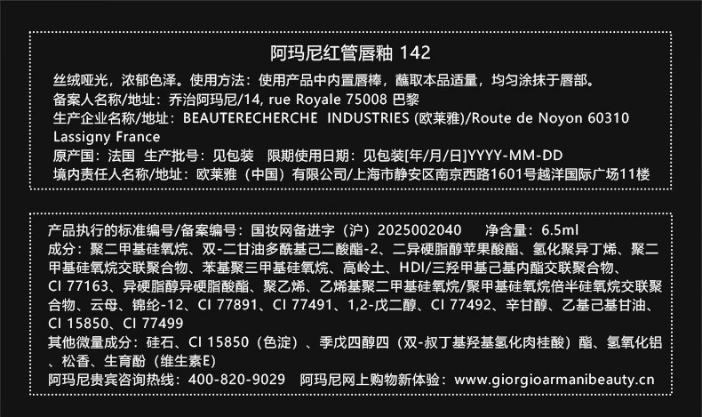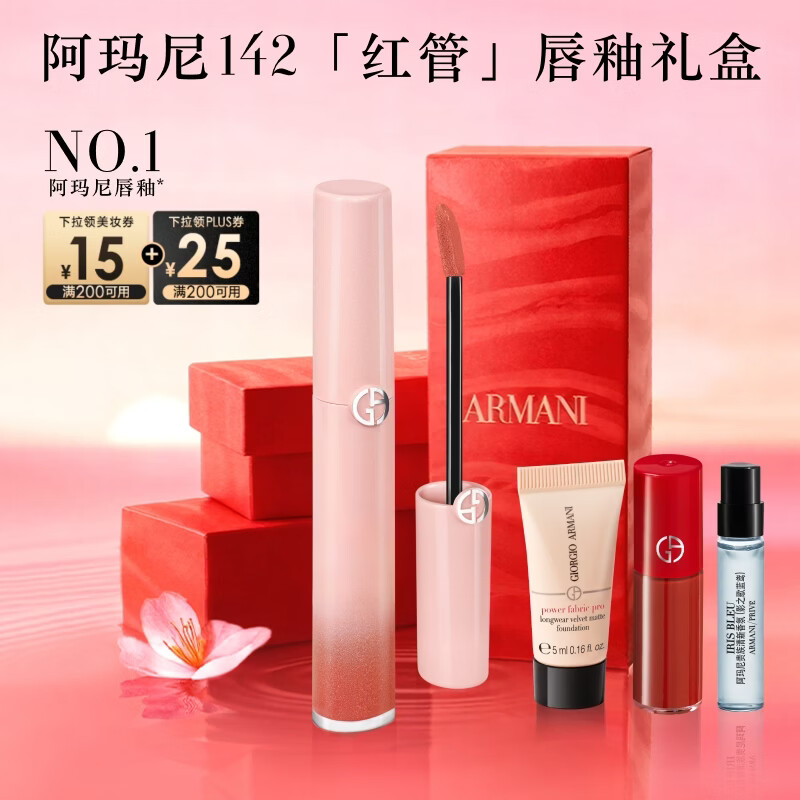 阿玛尼梦中人红管唇釉#142梦中粉 素颜显白口红不沾杯润唇膏新年礼物