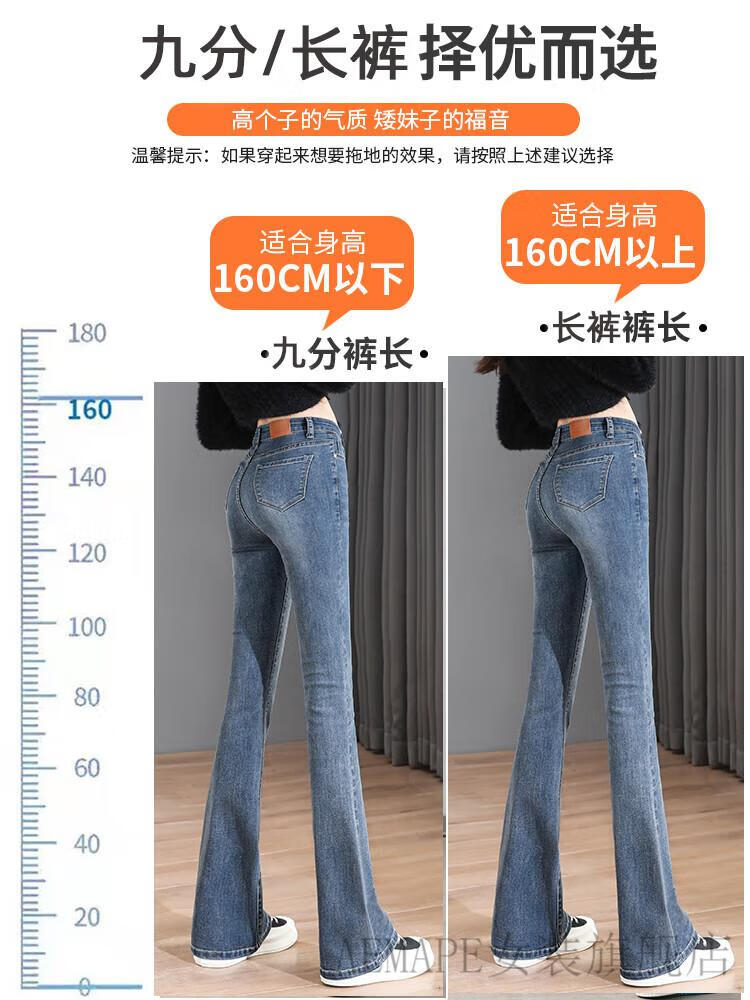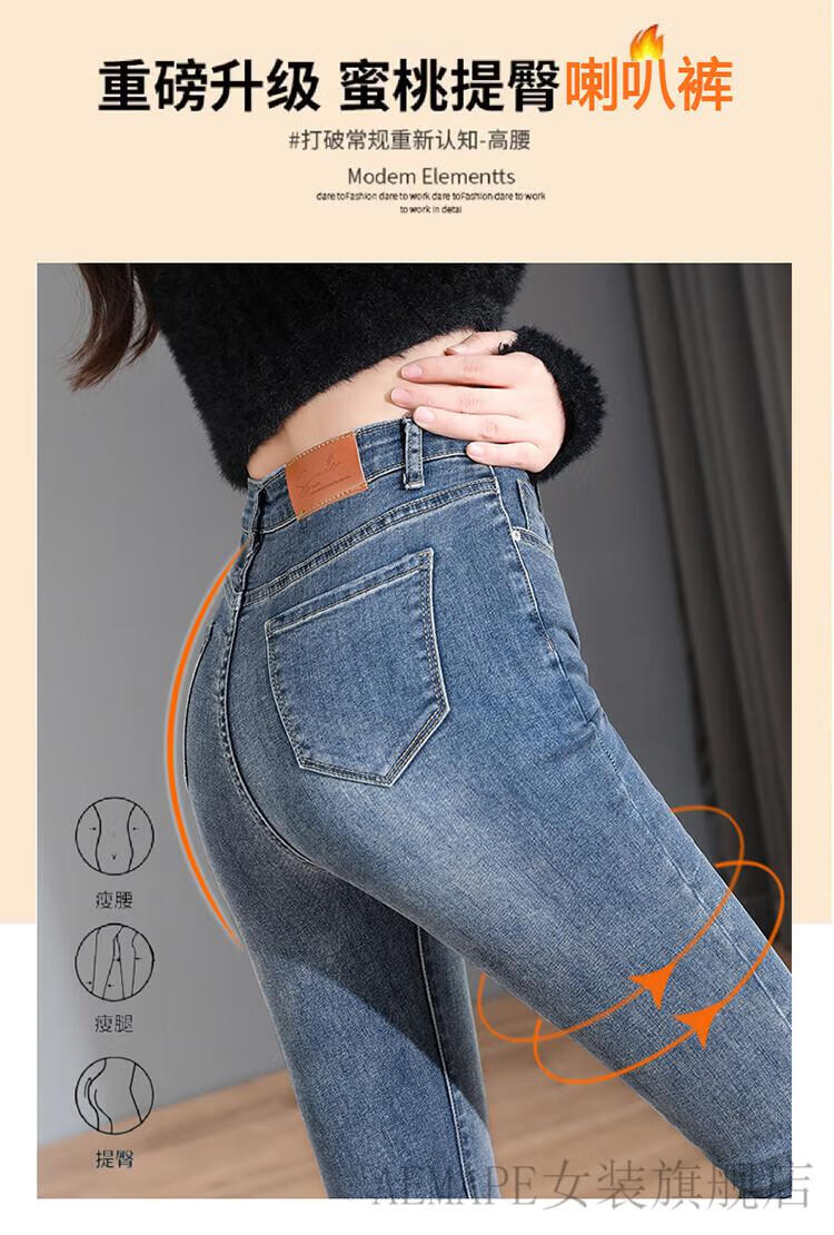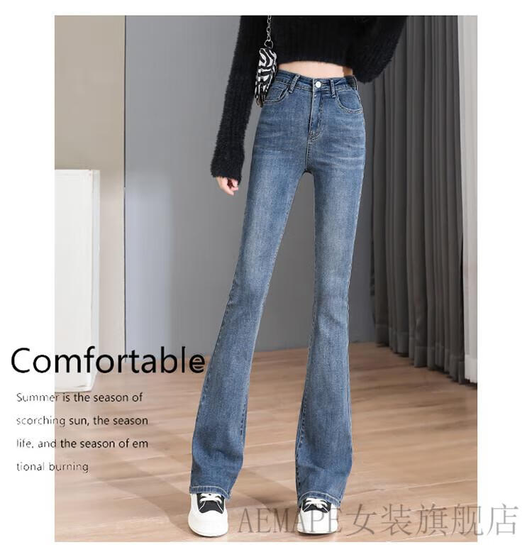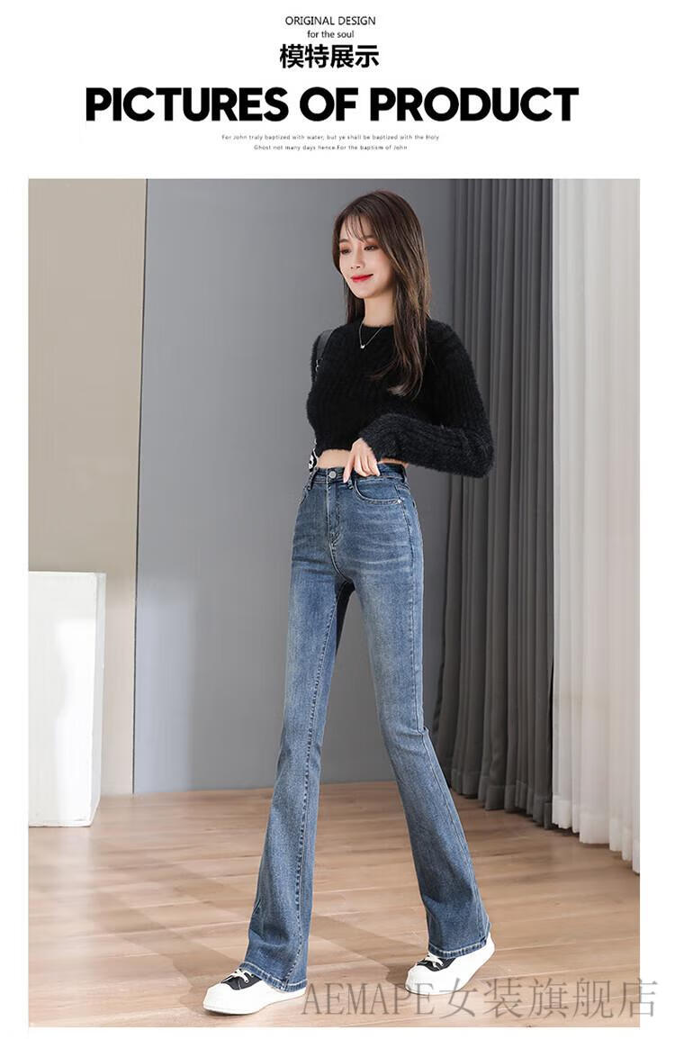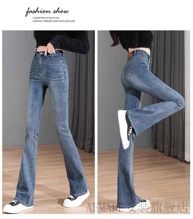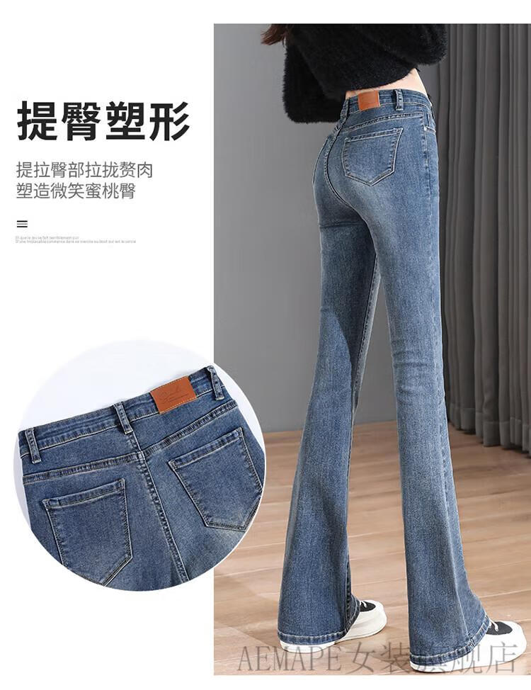 AEMAPE微喇叭牛仔裤女秋2025春秋冬装新款高腰显瘦小个子加绒裤子女 复古蓝(单裤九分裤) M (建议98—110斤)
