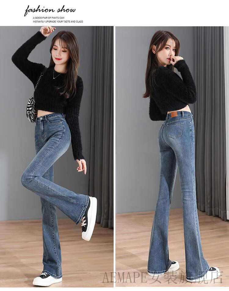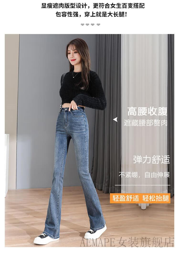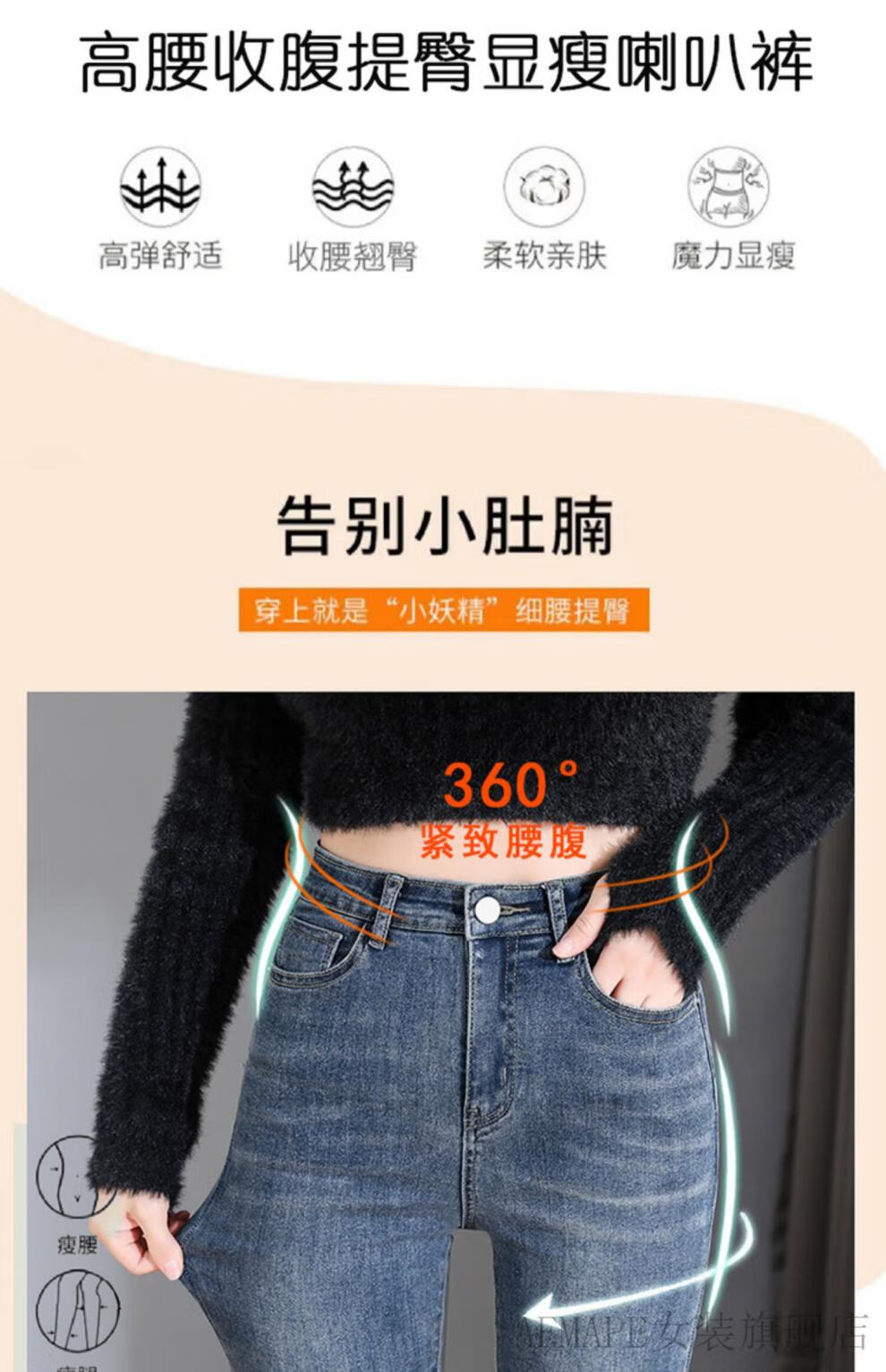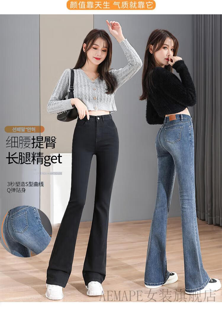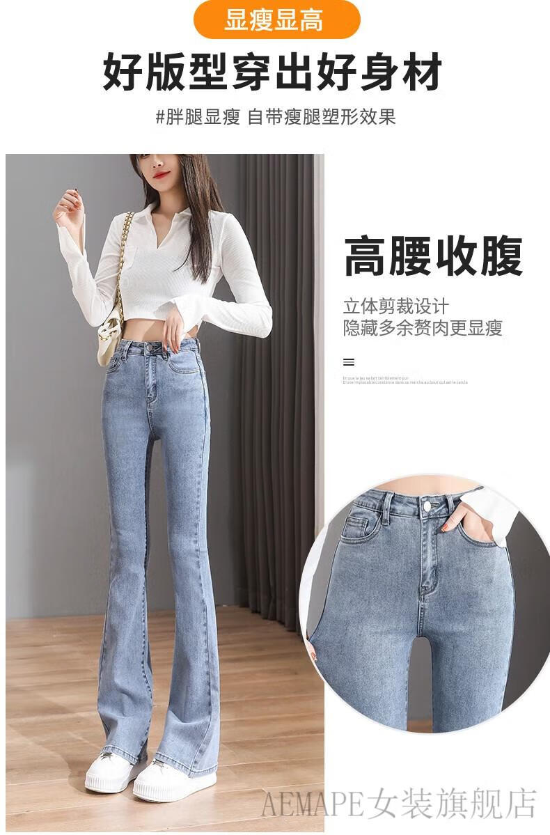 AEMAPE微喇叭牛仔裤女秋2025春秋冬装新款高腰显瘦小个子加绒裤子女 复古蓝(单裤九分裤) M (建议98—110斤)