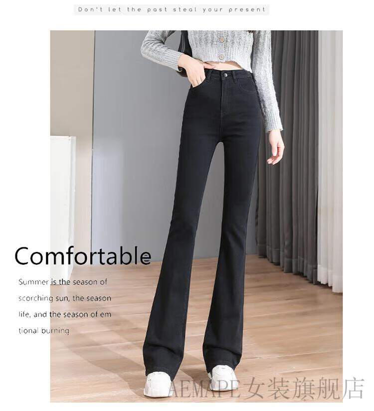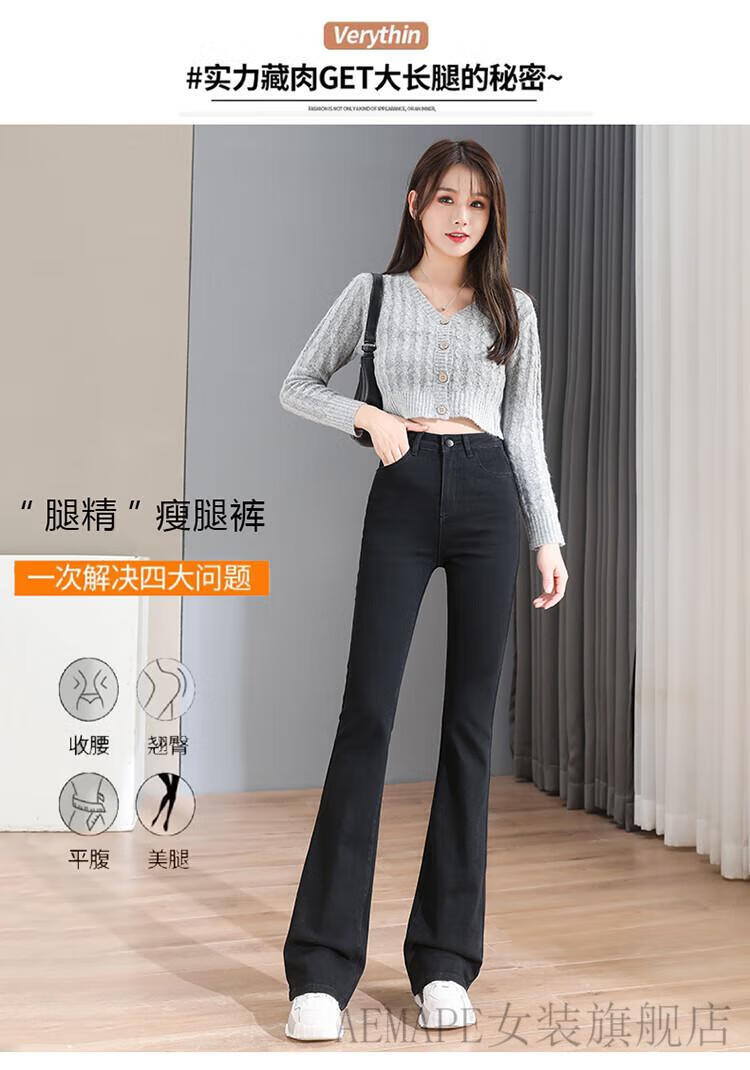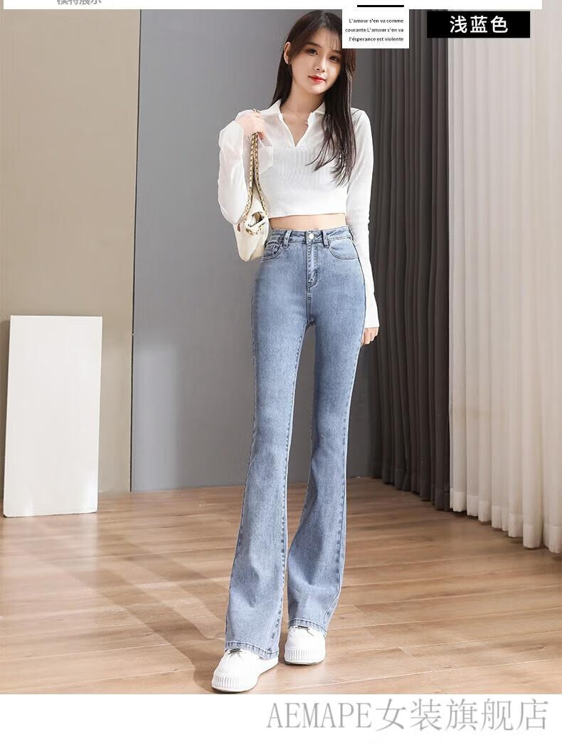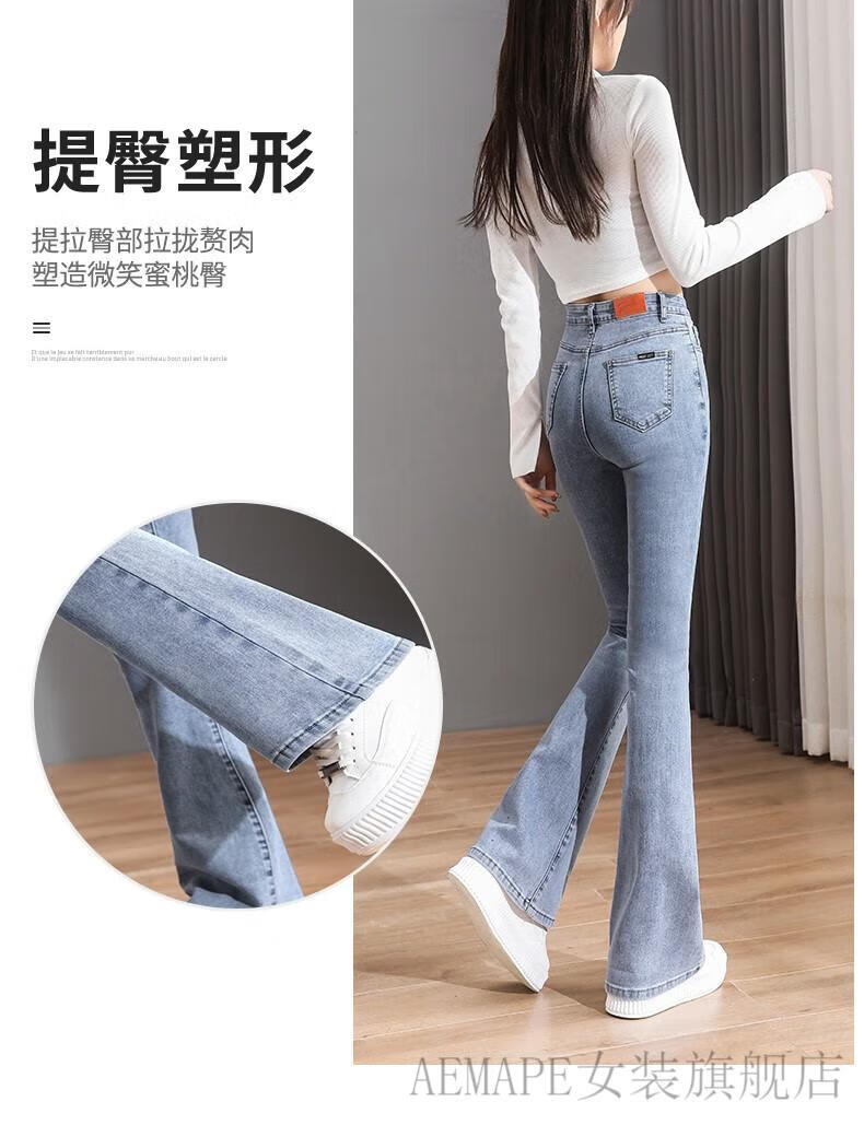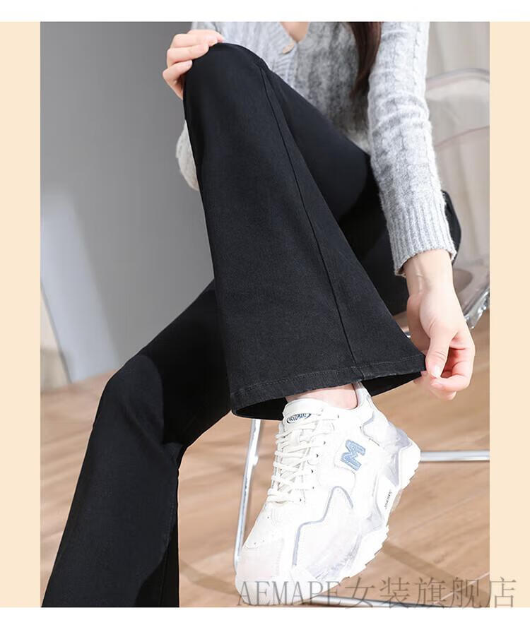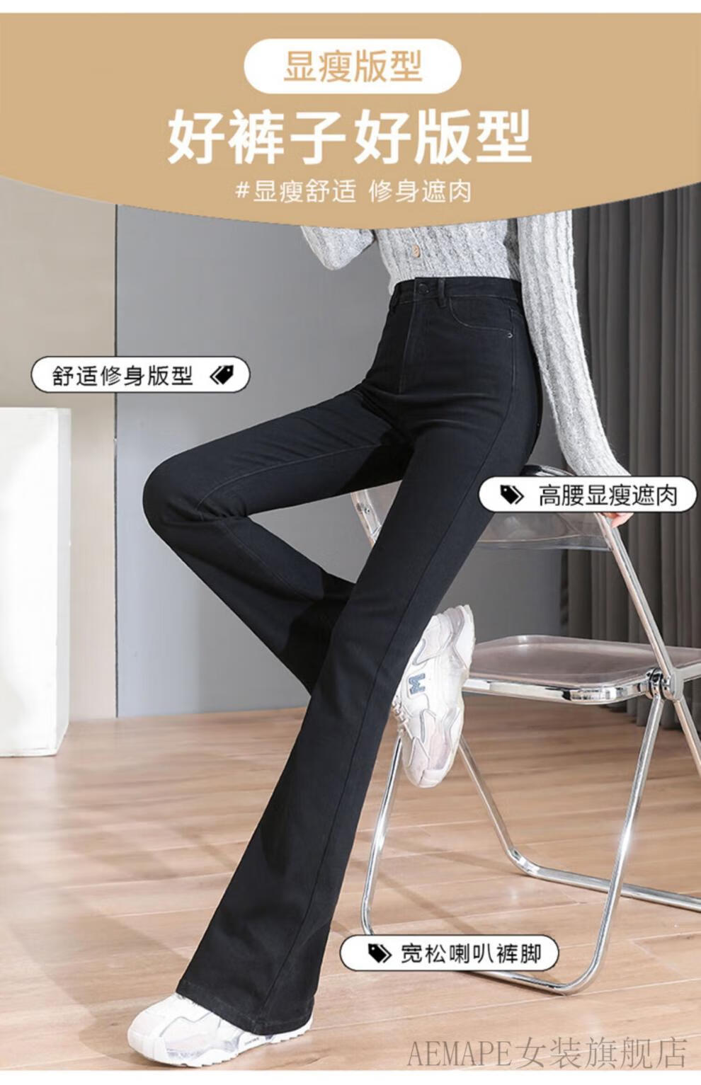 AEMAPE微喇叭牛仔裤女秋2025春秋冬装新款高腰显瘦小个子加绒裤子女 复古蓝(单裤九分裤) M (建议98—110斤)