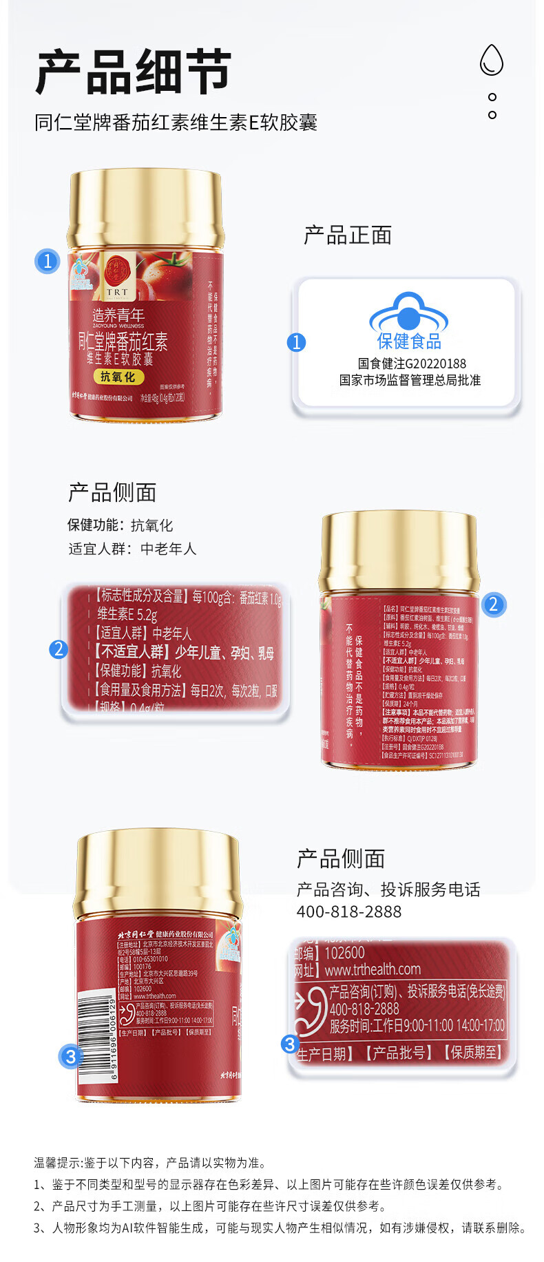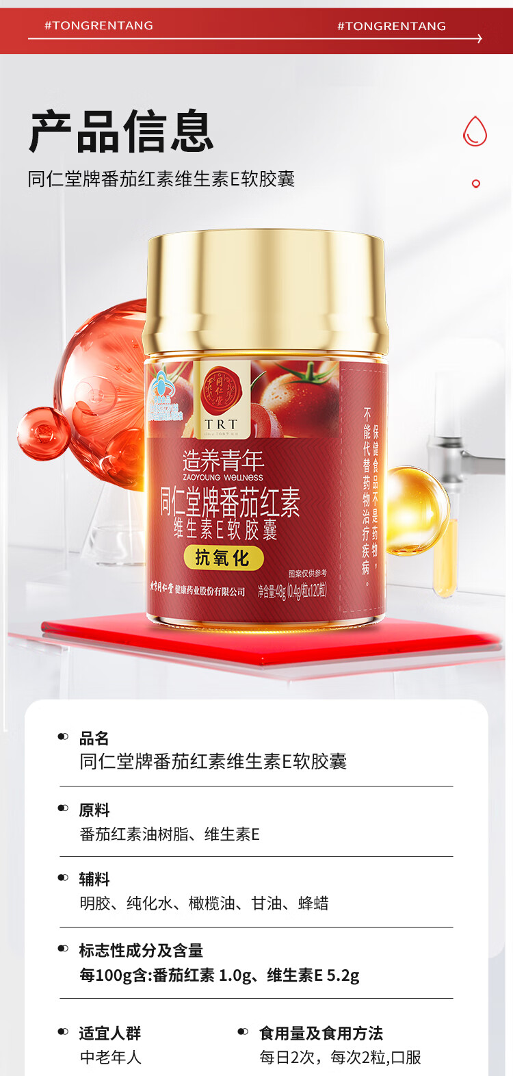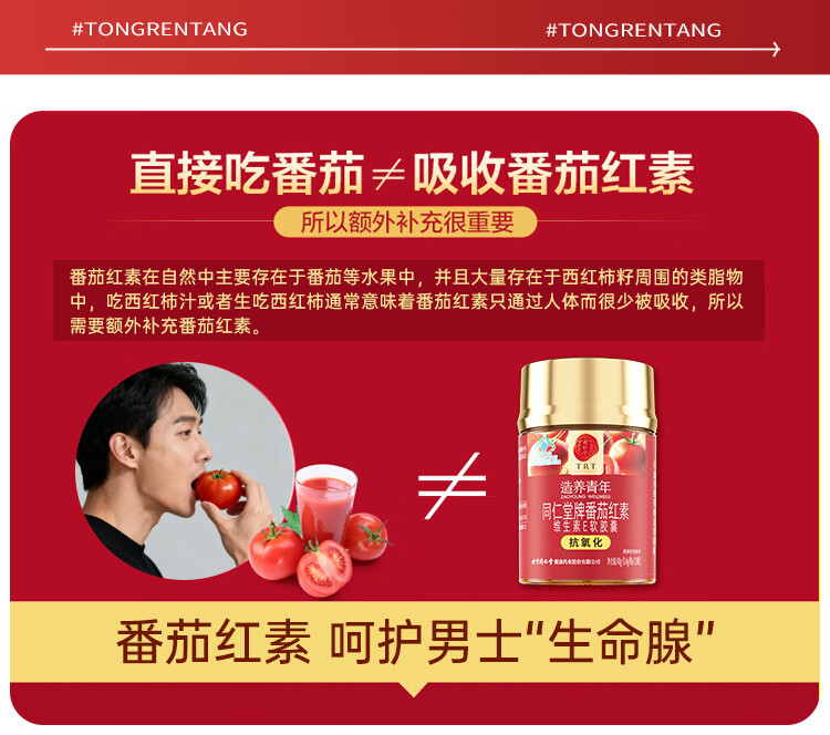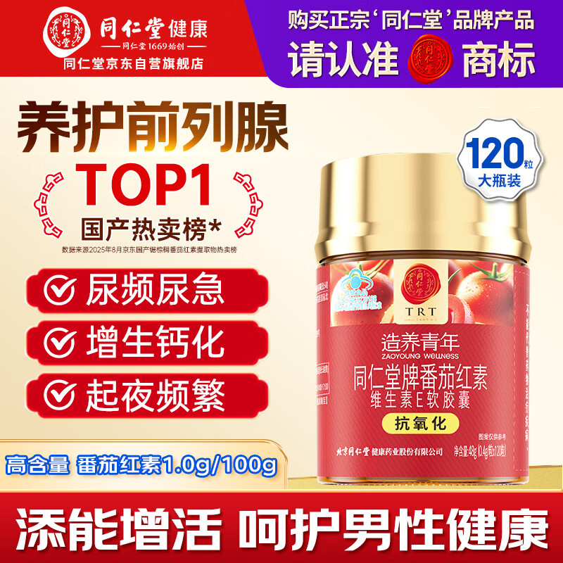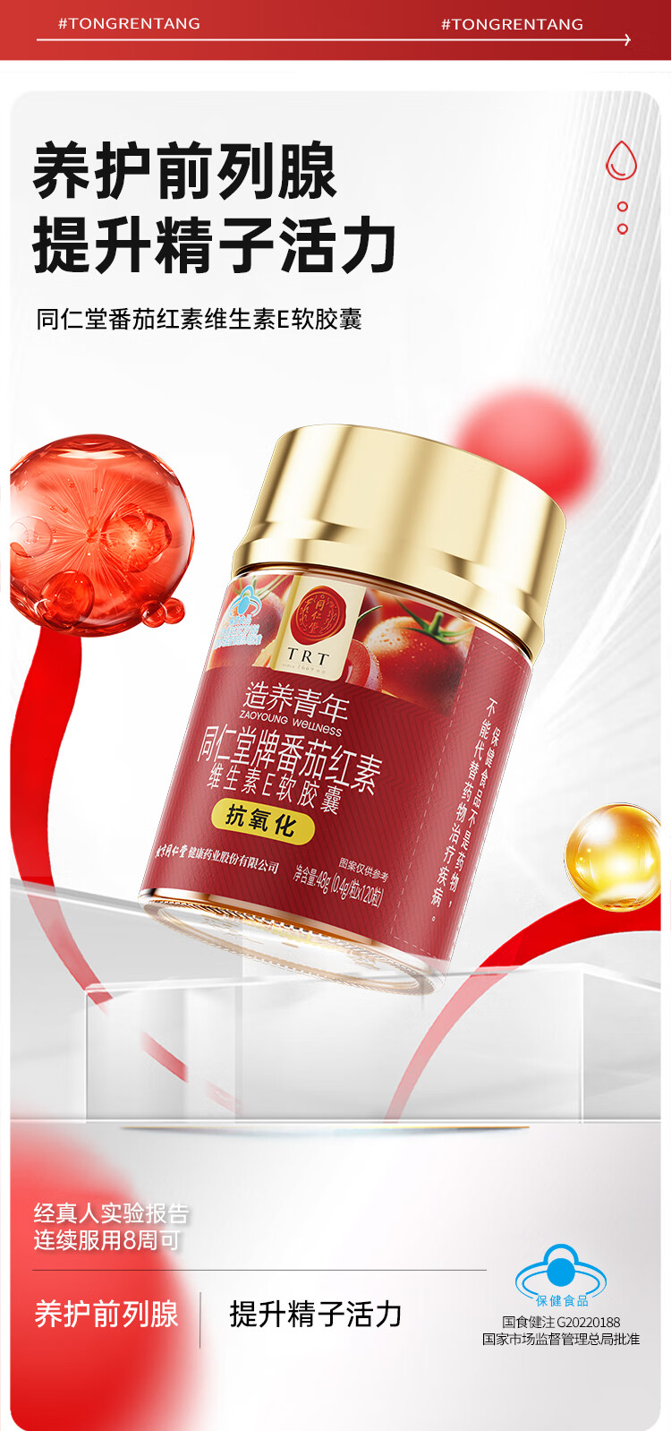 同仁堂(TRT)番茄红素男士备孕自营前列腺炎蕃茄红素番茄素软胶囊尿频急120粒