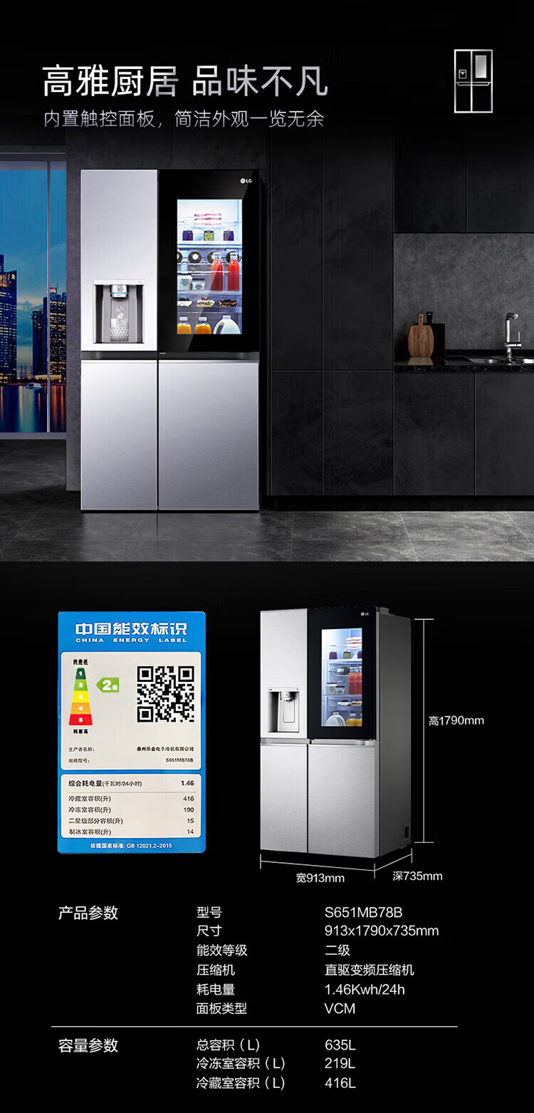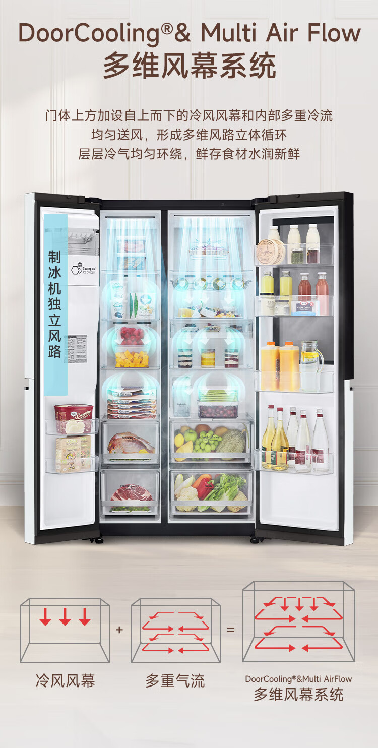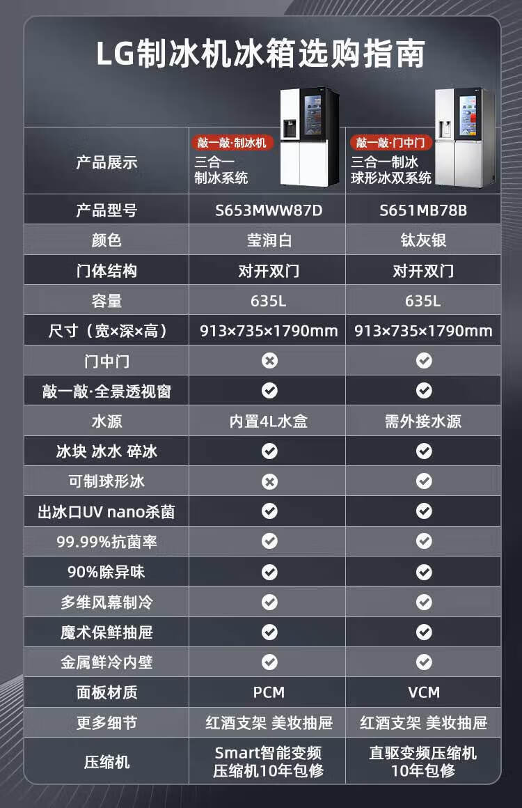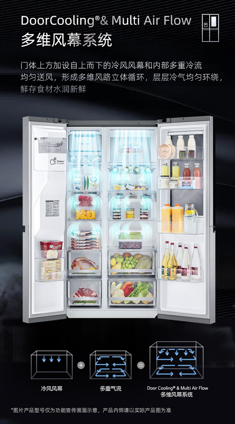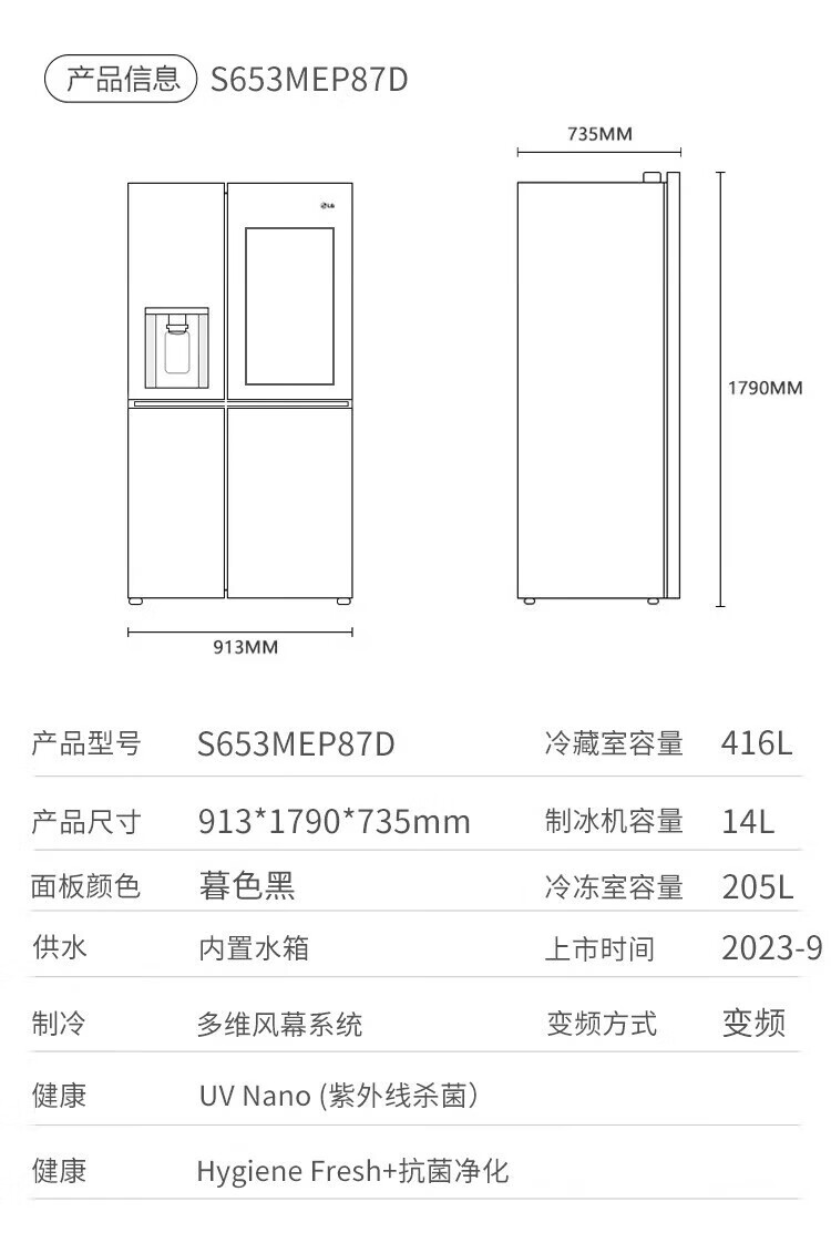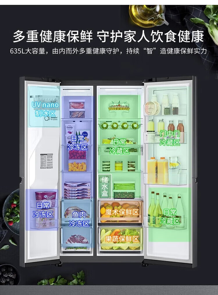 LG冰箱【线下同款】635L双对开门大容量家用 智能变频自动制冰机冰吧 风冷无霜银 S653MEP87D暮色黑