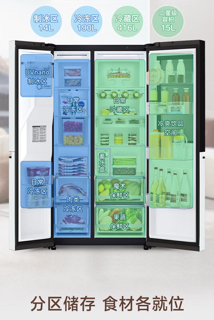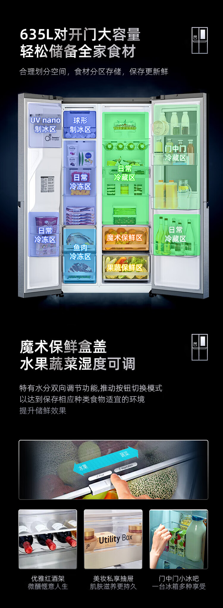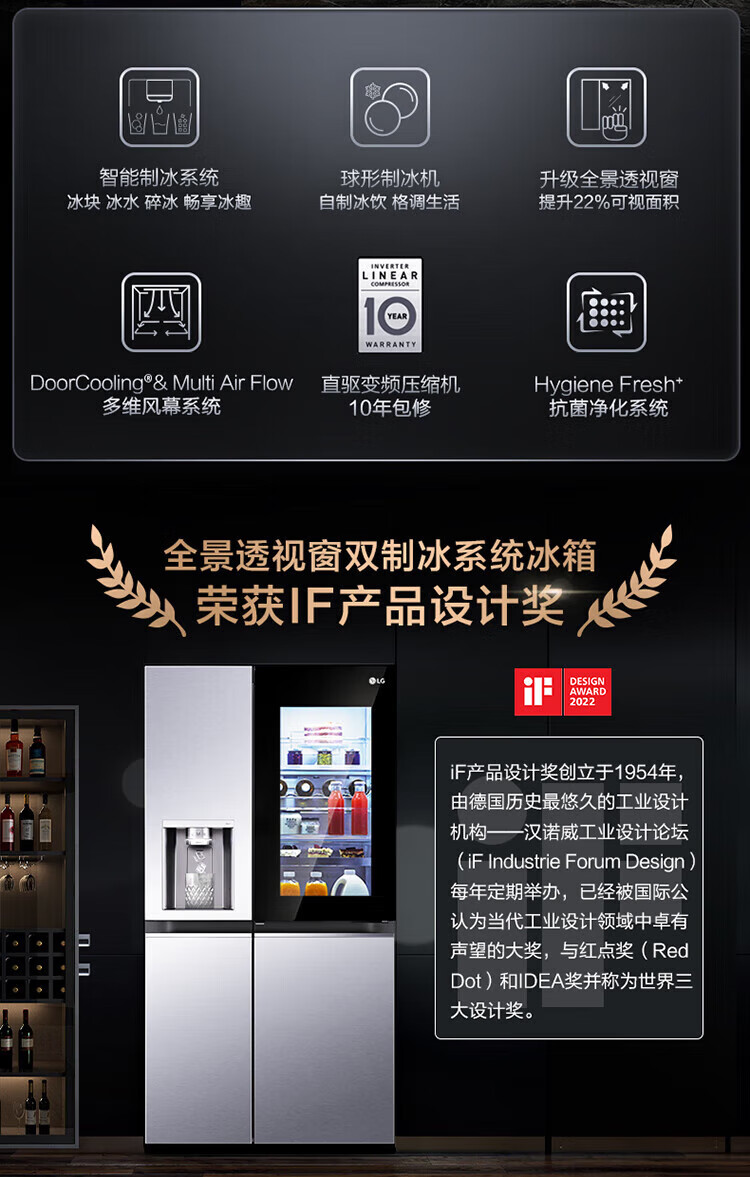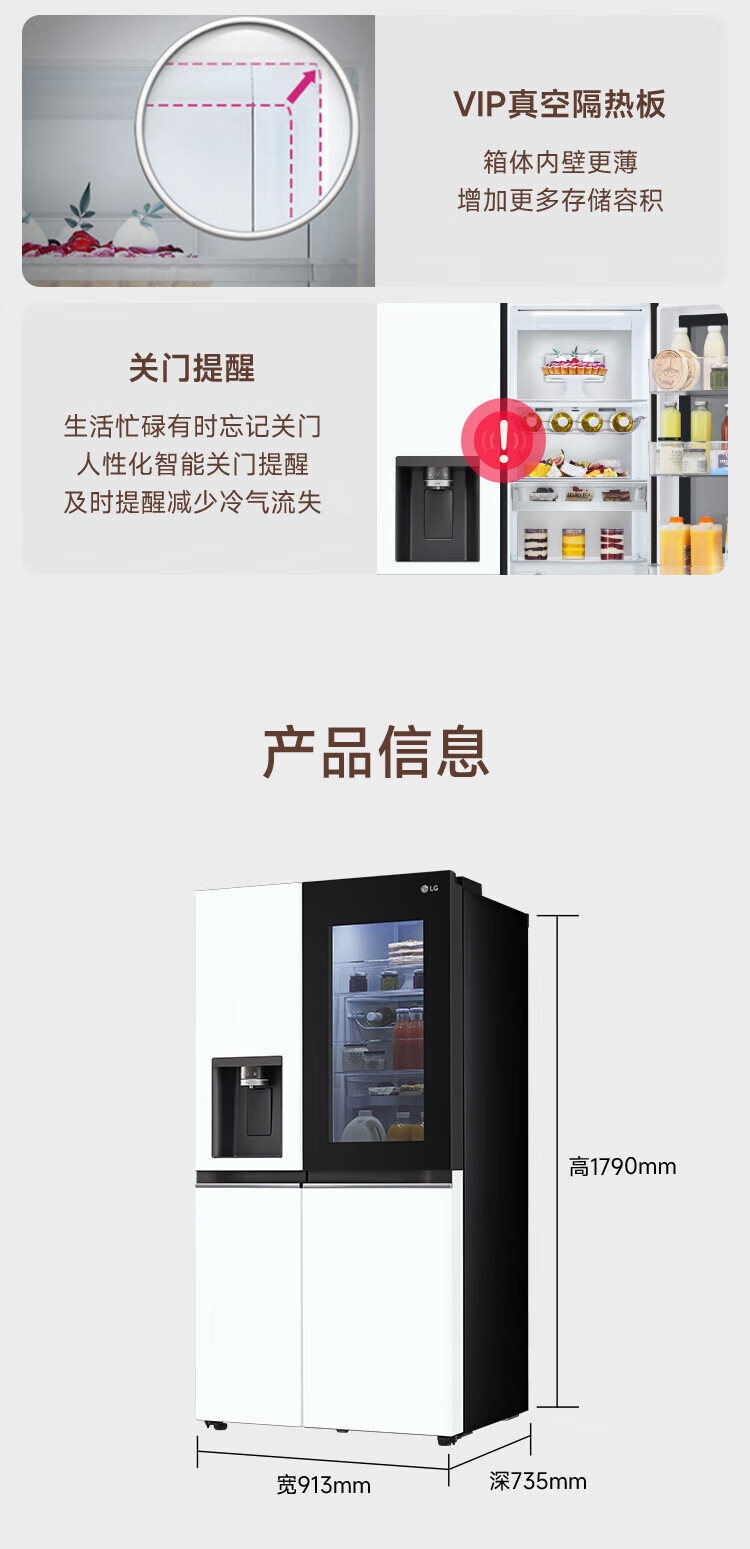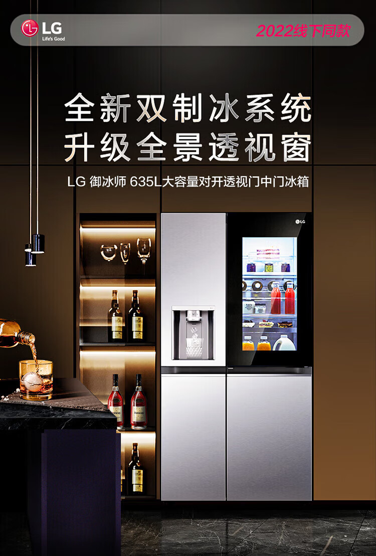 LG冰箱【线下同款】635L双对开门大容量家用 智能变频自动制冰机冰吧 风冷无霜银 S653MEP87D暮色黑