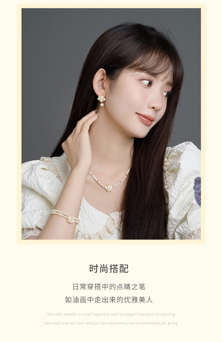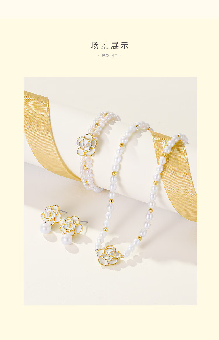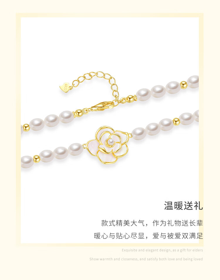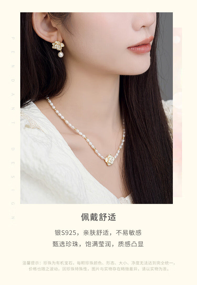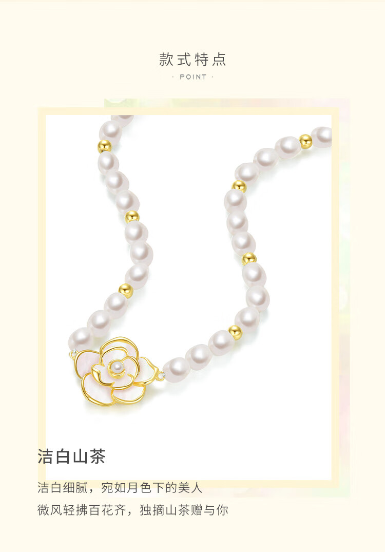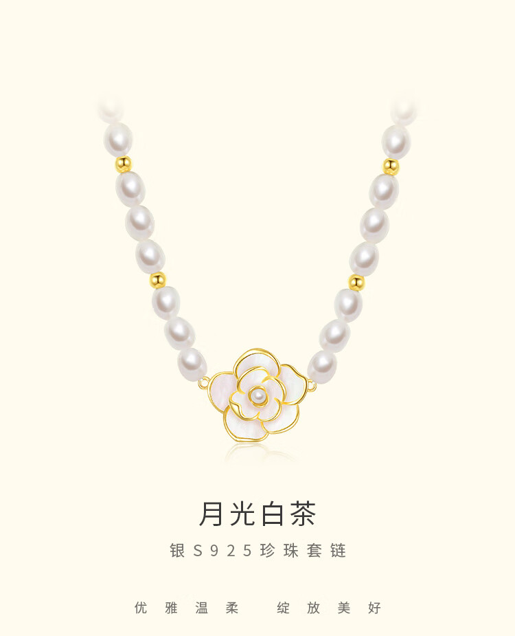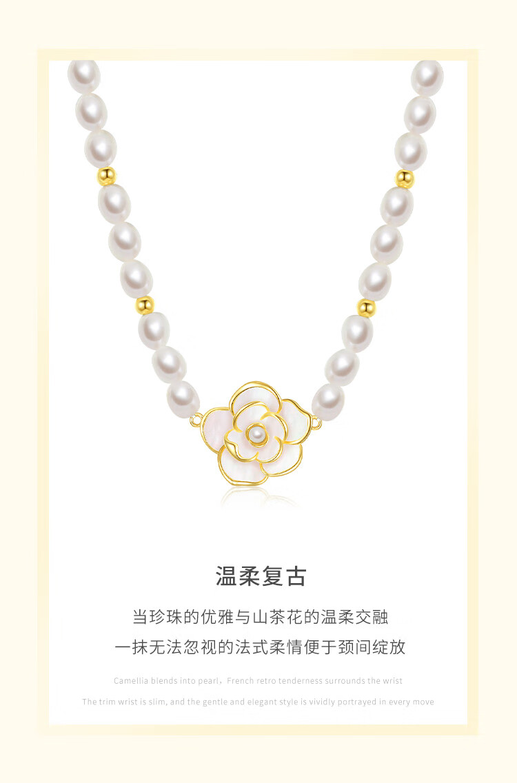 周大生【新年礼物】山茶花珍珠项链纯银女轻奢小众高级感锁骨链送女友