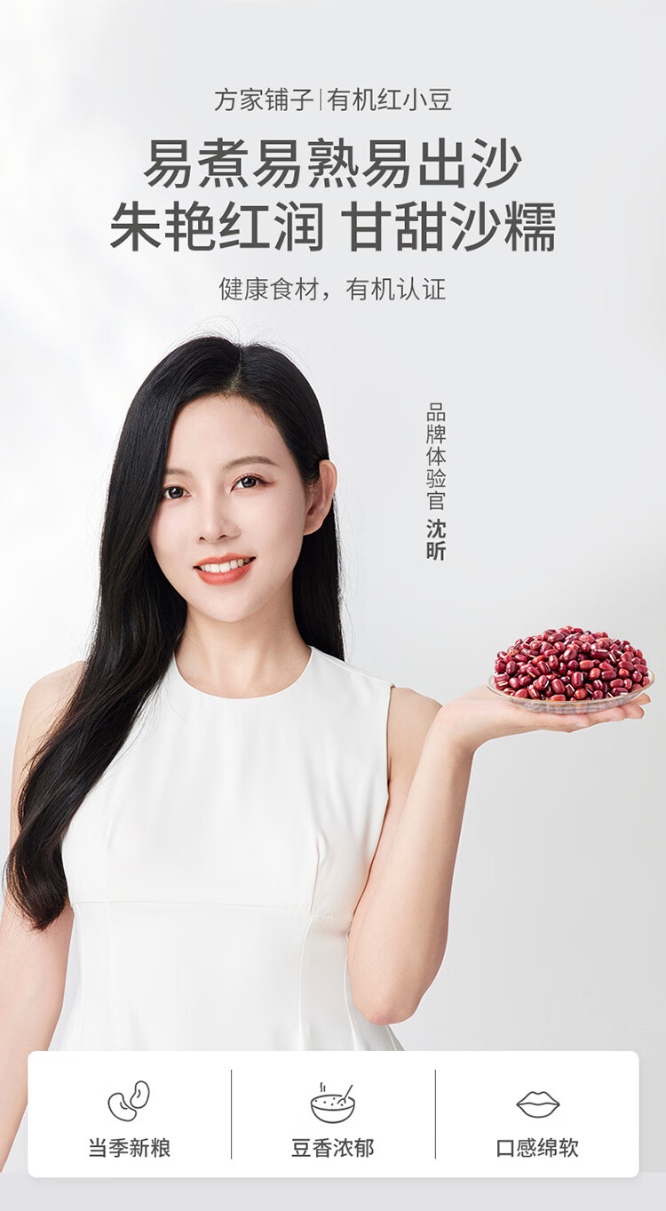 方家铺子中华老字号 有机红小豆1斤 红豆粥豆沙 大米伴侣 五谷杂粮粗粮