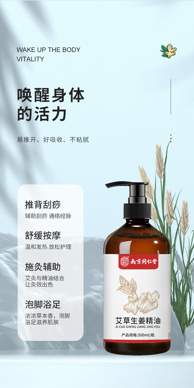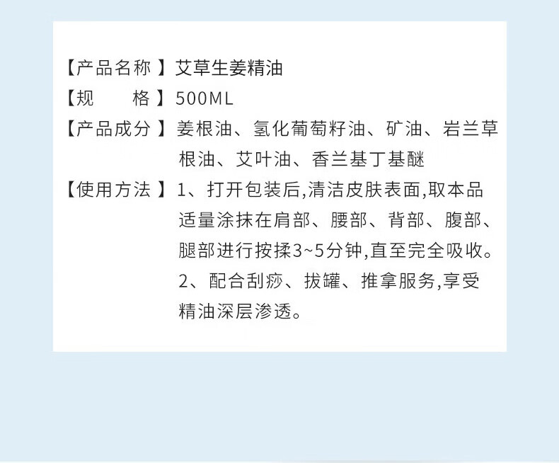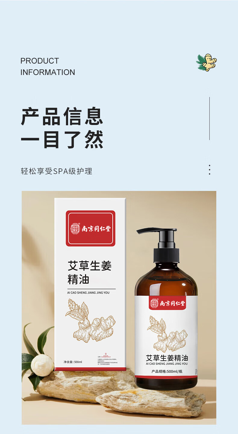 同仁堂艾草生姜精油按摩刮痧开背推拿spa通经络发热按摩油500ml