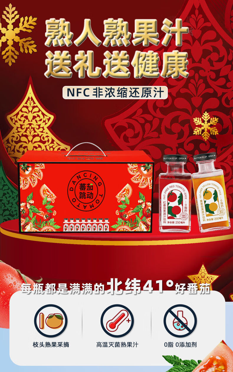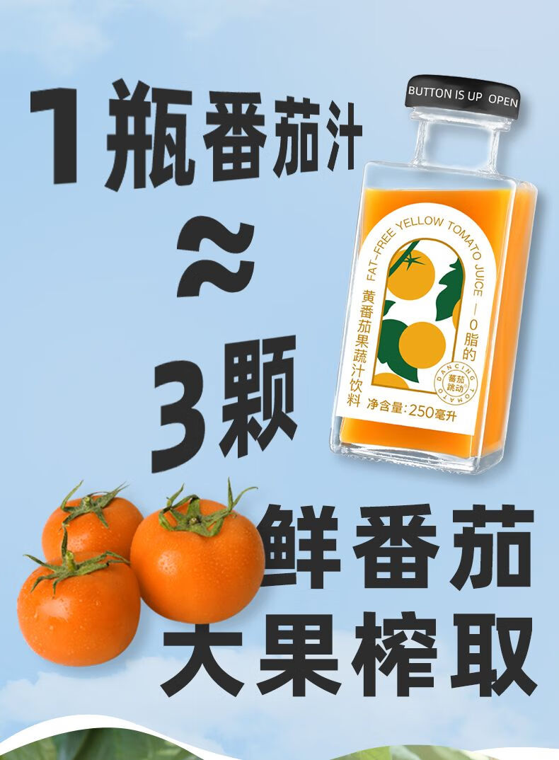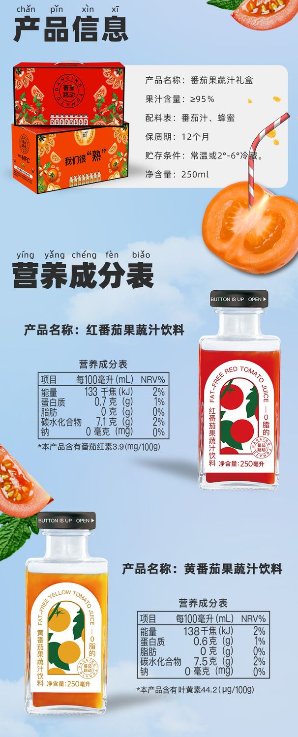 食芳溢8瓶装】蕃茄跳动番茄汁250ml*8红番茄果蔬汁礼盒装黄番茄汁玻璃瓶 红番茄汁4瓶+黄番茄汁4瓶
