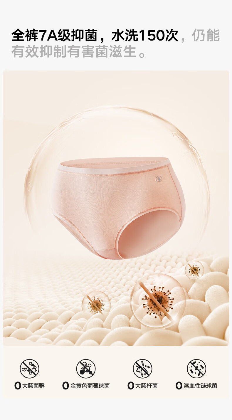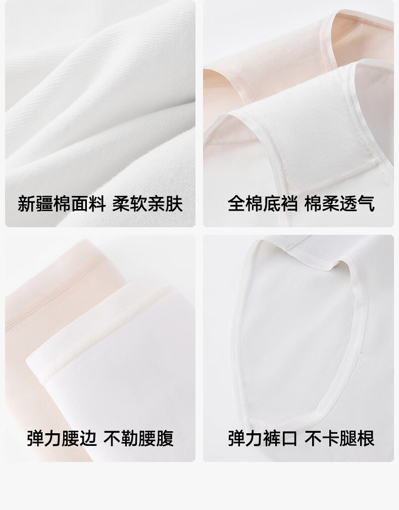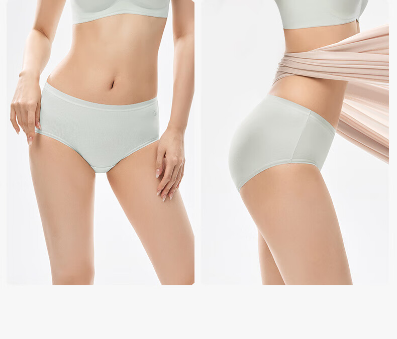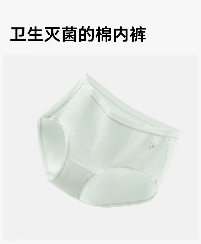 松山棉店【首次免洗即穿】新疆棉女士内裤7A抑菌无痕透气医护级亲肤独立装 浅绿+肤色+浅灰 3条 L 推荐:110-125斤
