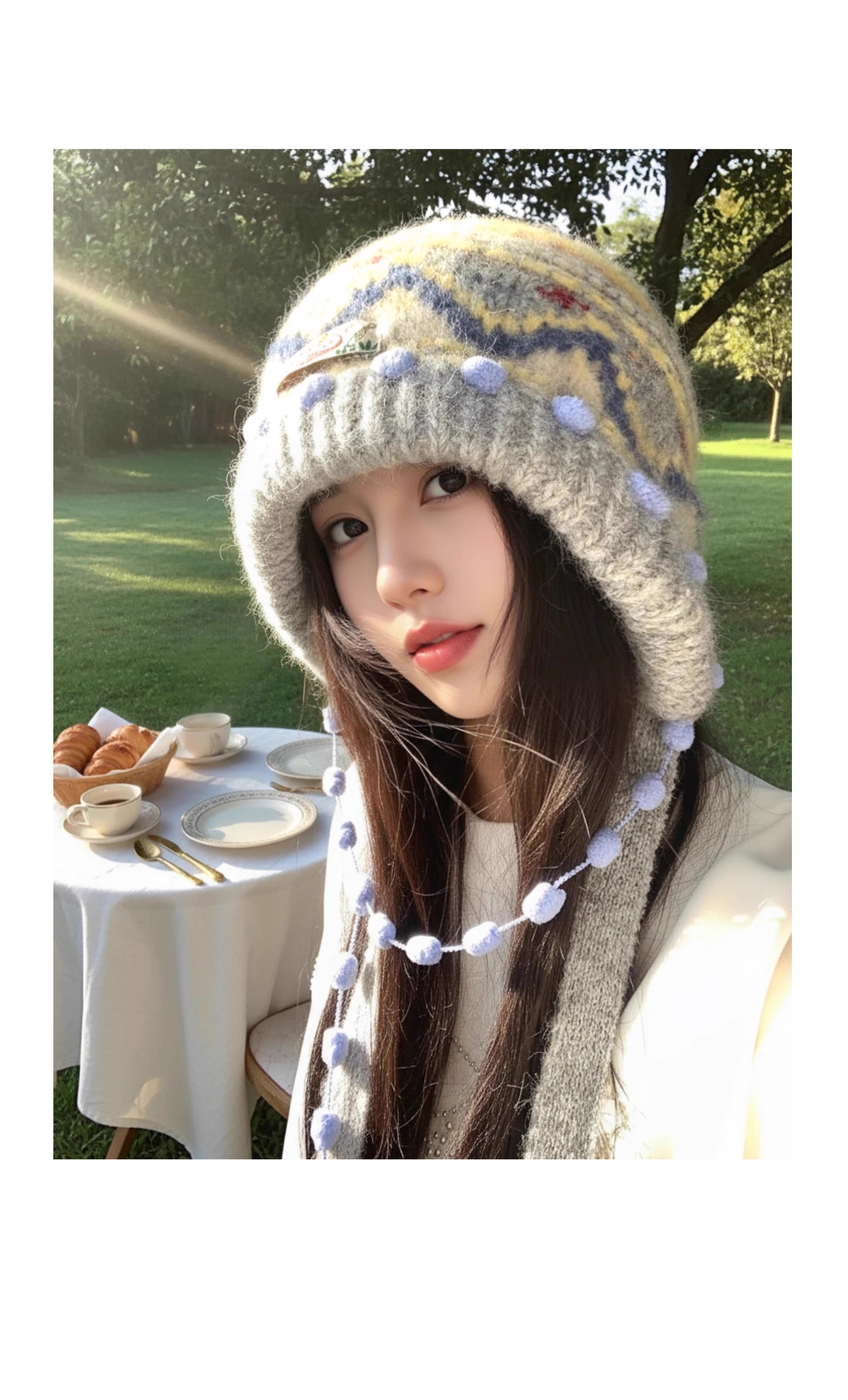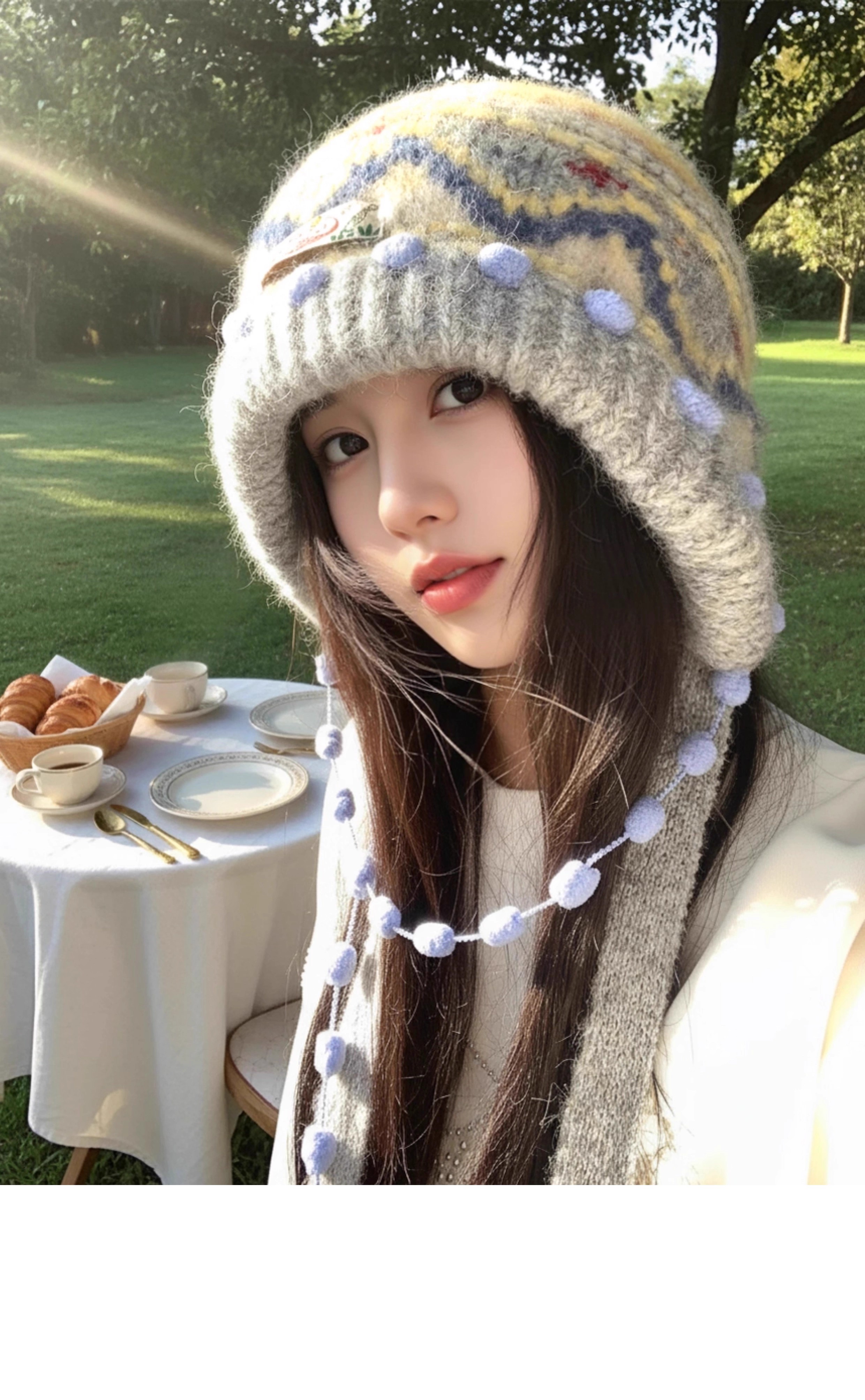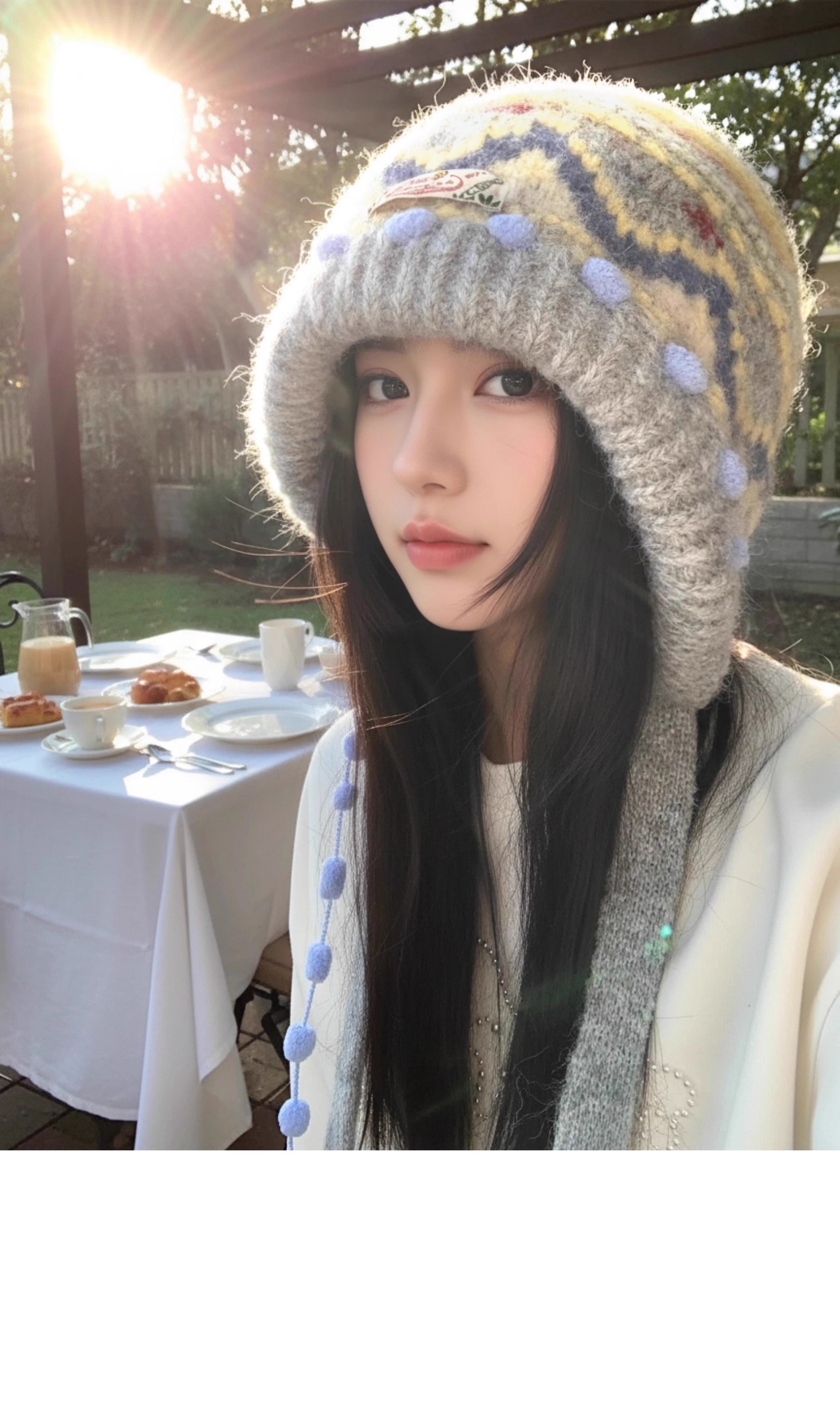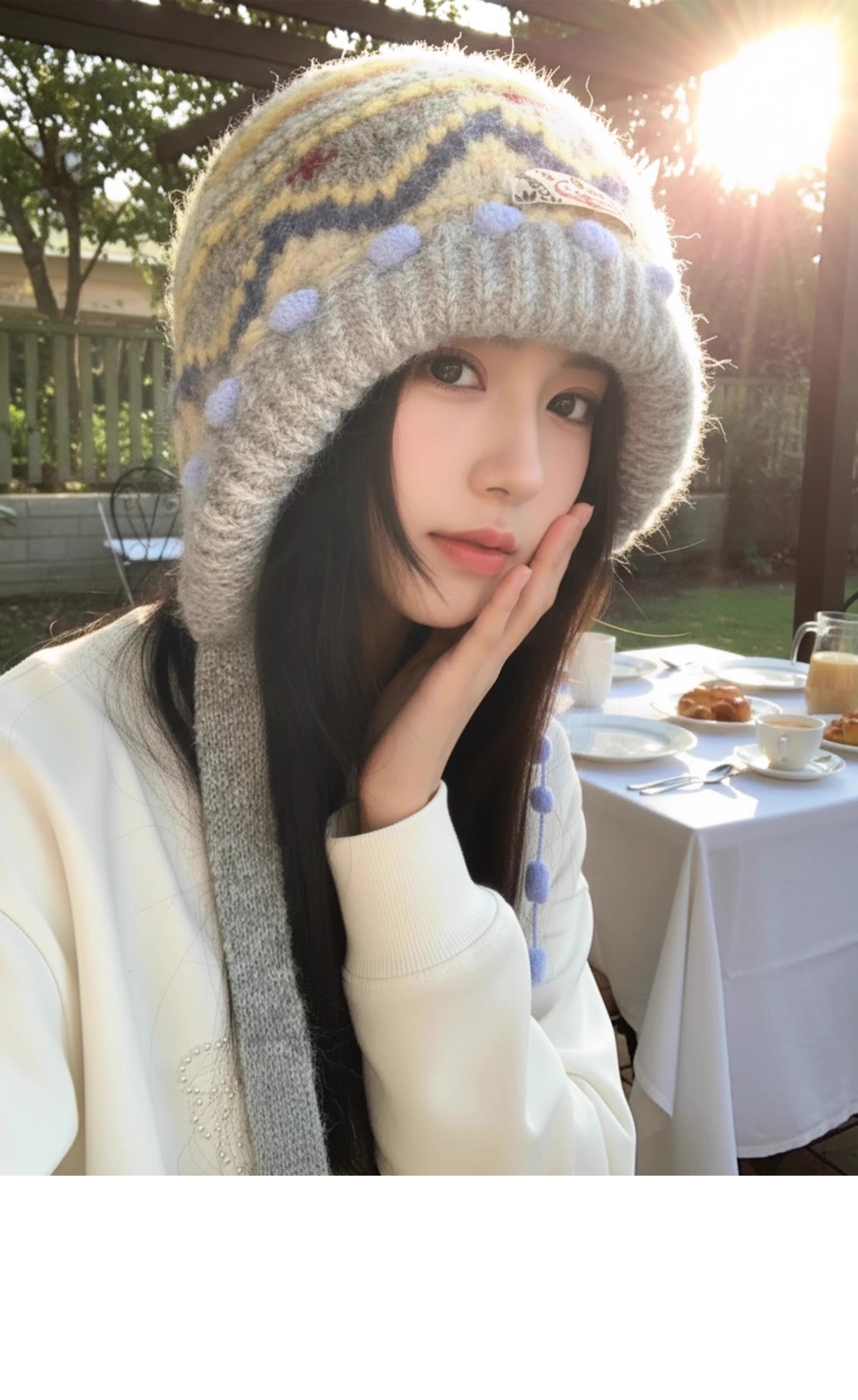 目丸复古费尔岛针织毛线帽女秋冬季保暖巴拉克拉法帽加厚护耳冬季帽子 灰色【主图款】