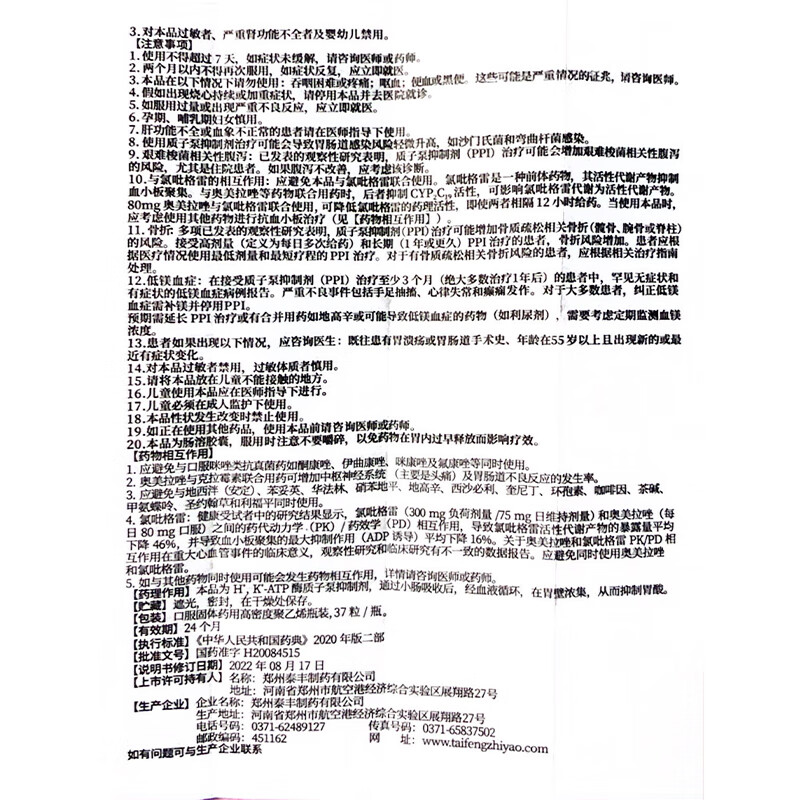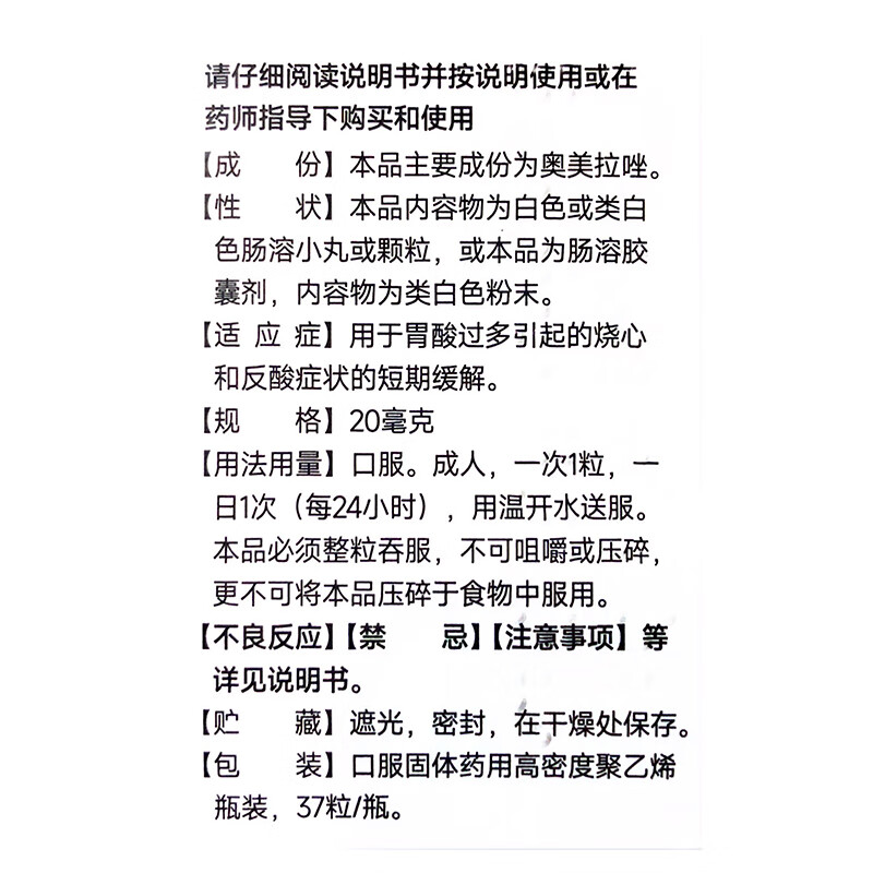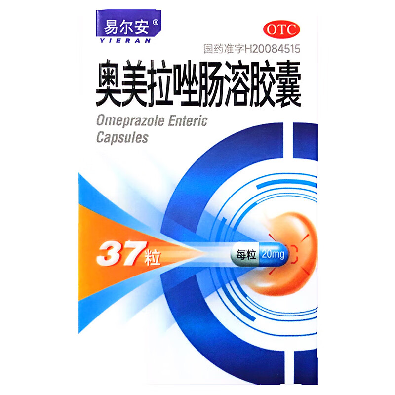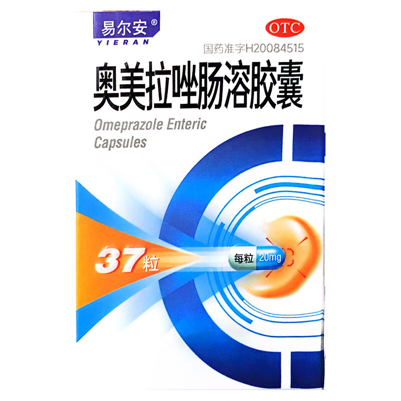 易尔安 奥美拉唑肠溶胶囊20mg*37粒奥美拉挫胶囊幽门螺旋杆菌四联药治疗胃反酸烧心抑制胃酸胃胀胃痛