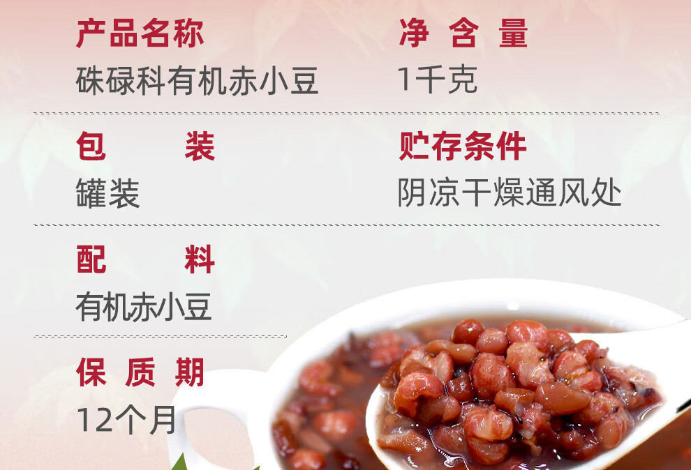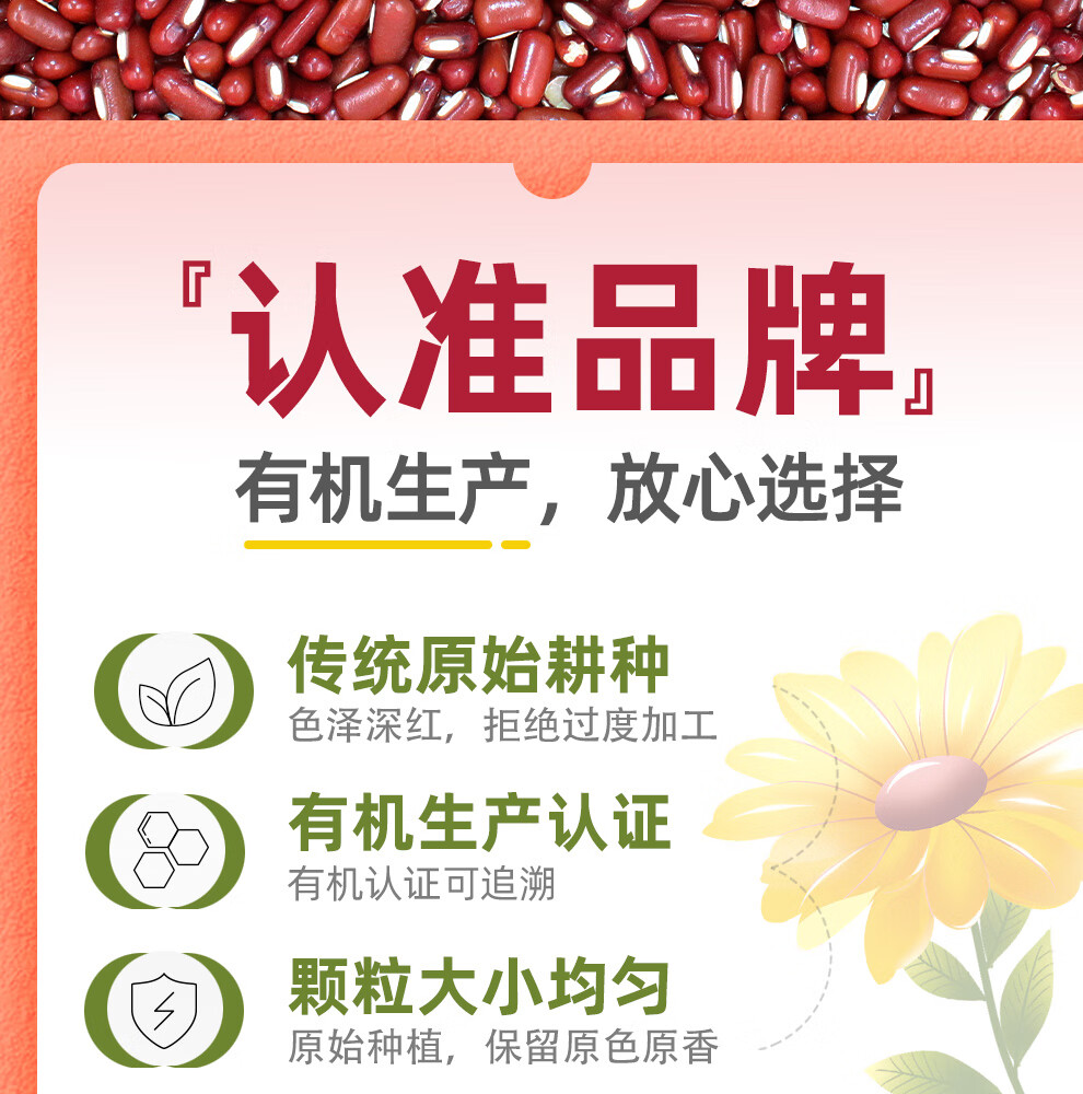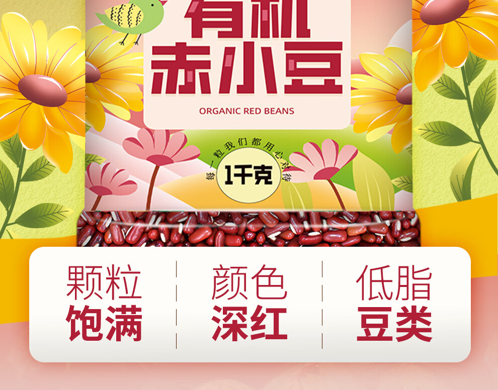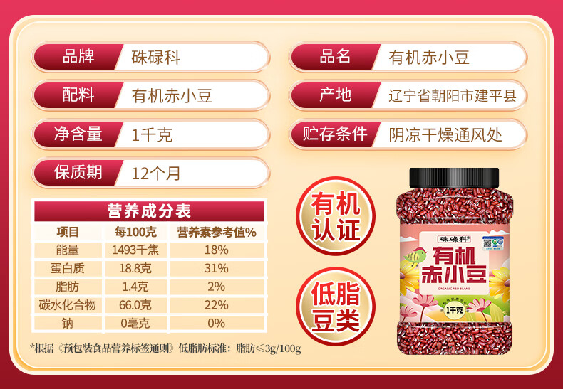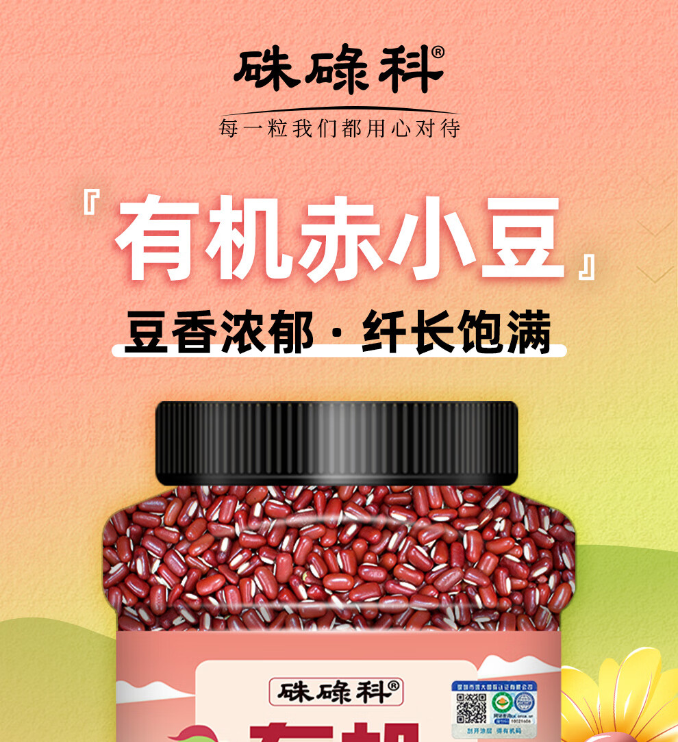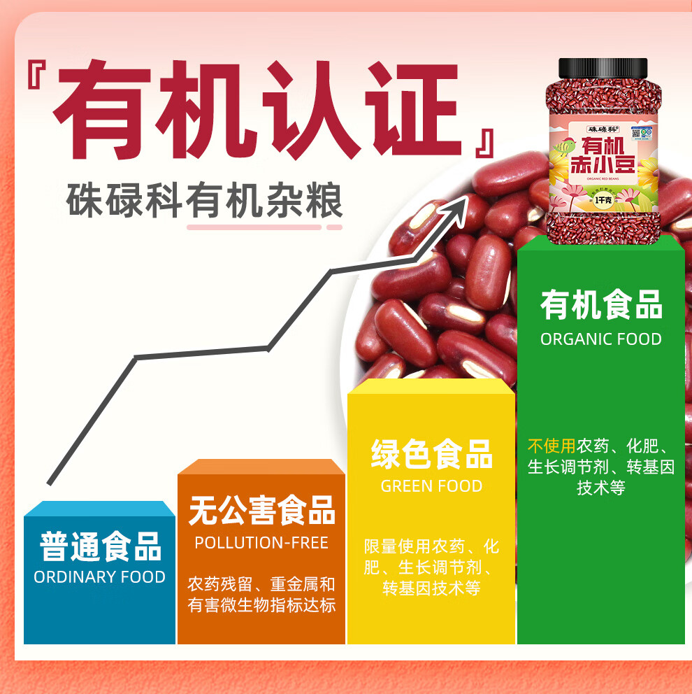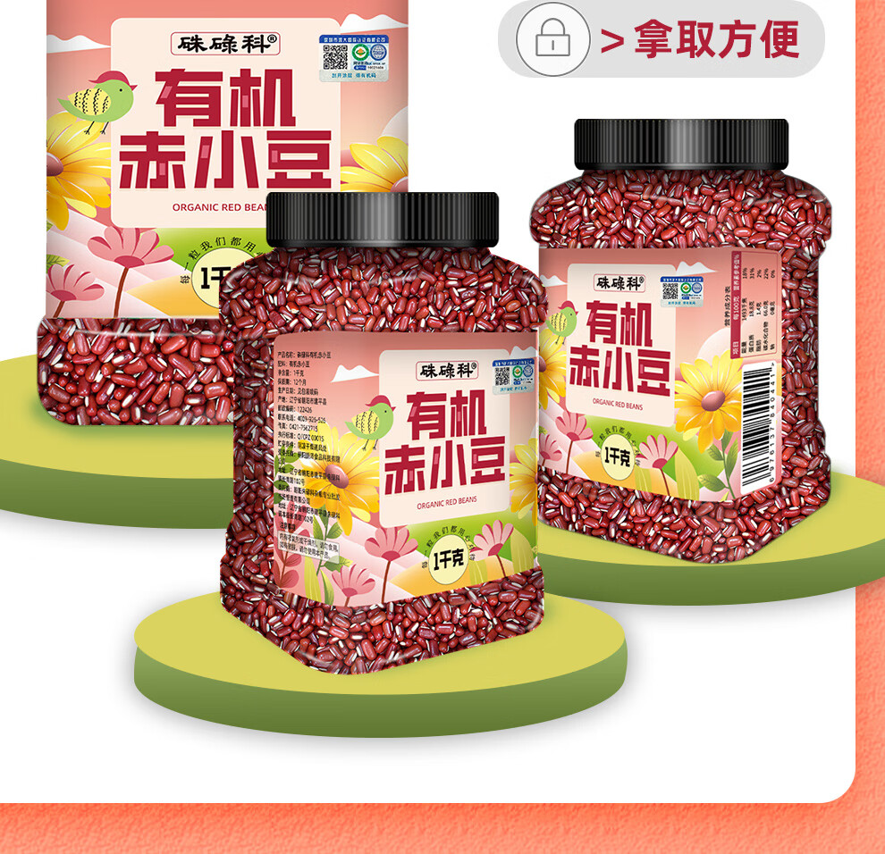硃碌科 有机赤小豆2斤罐装 长粒红小豆可做红豆沙豆馅粥料薏米搭档