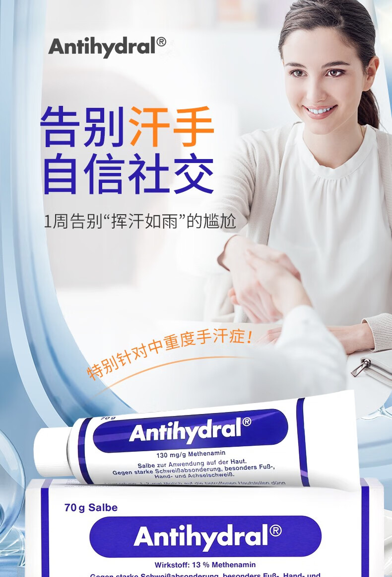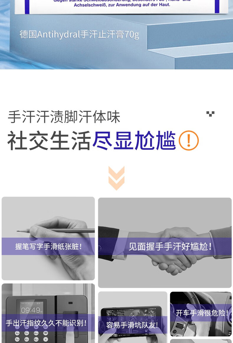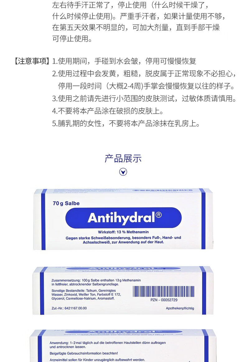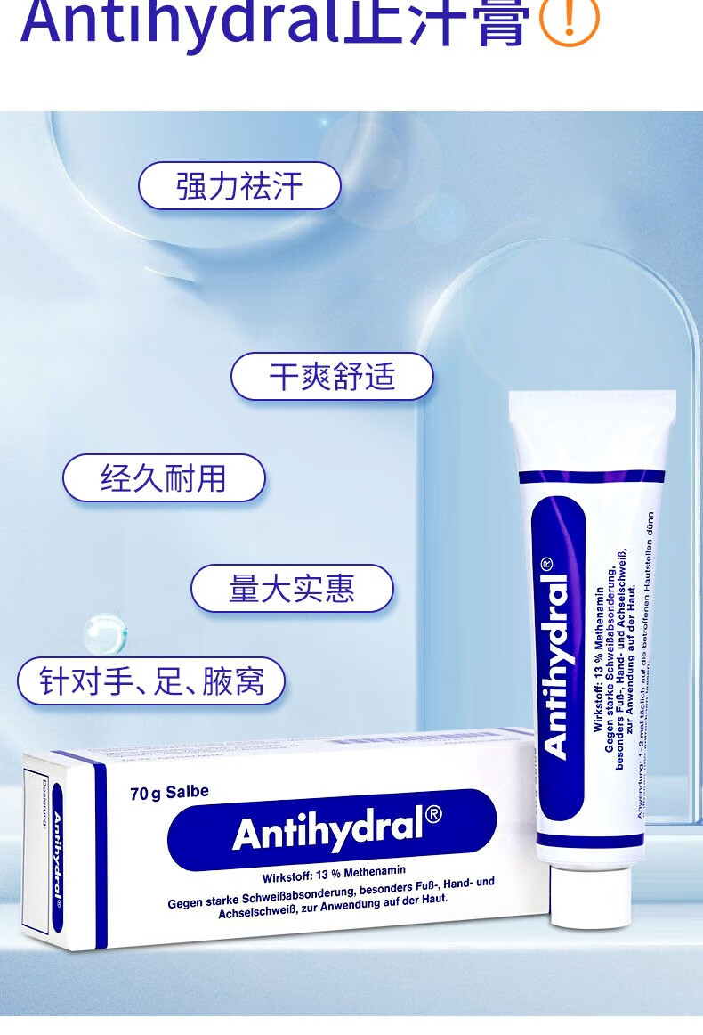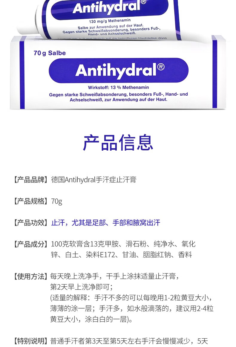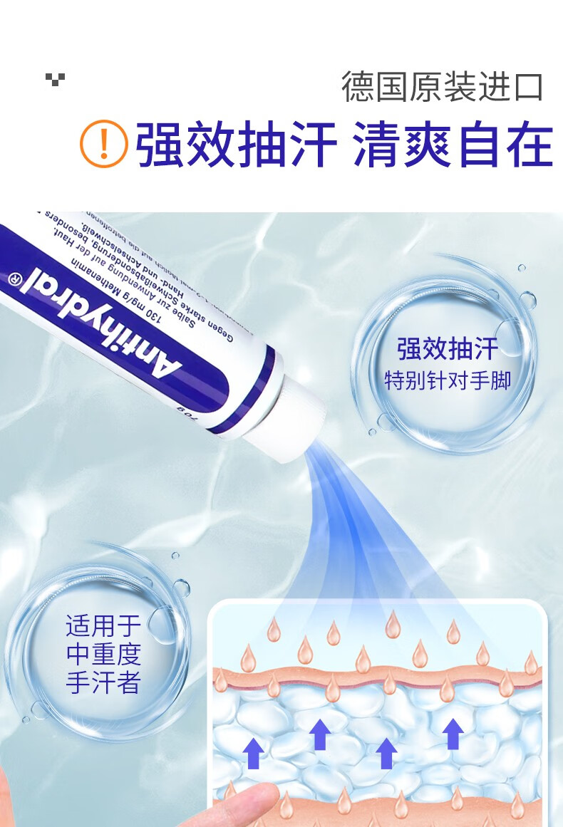 Antihydral德国进口antihydral止汗膏手出汗手汗症脚出汗脚汗止汗神器多汗症 70g