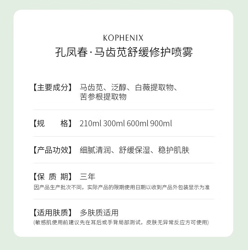 孔凤春爽肤水210ml马齿苋修护补水喷雾保湿舒缓柔肤水送男女友新年礼物