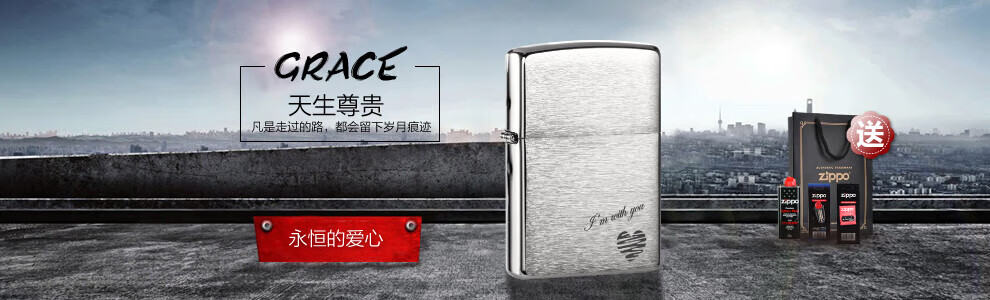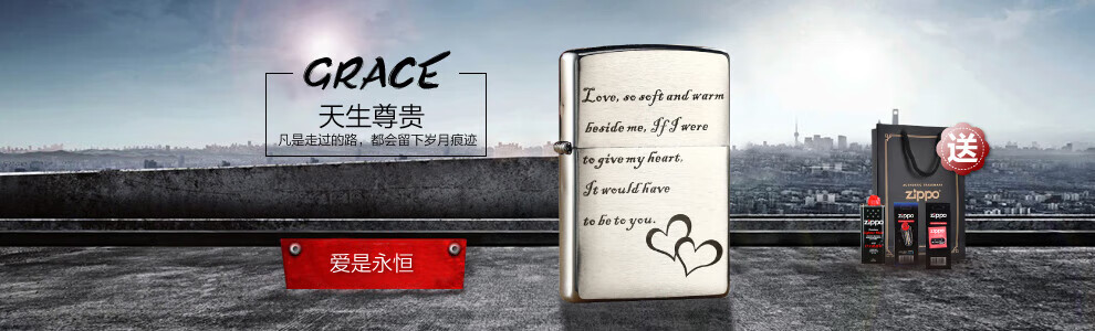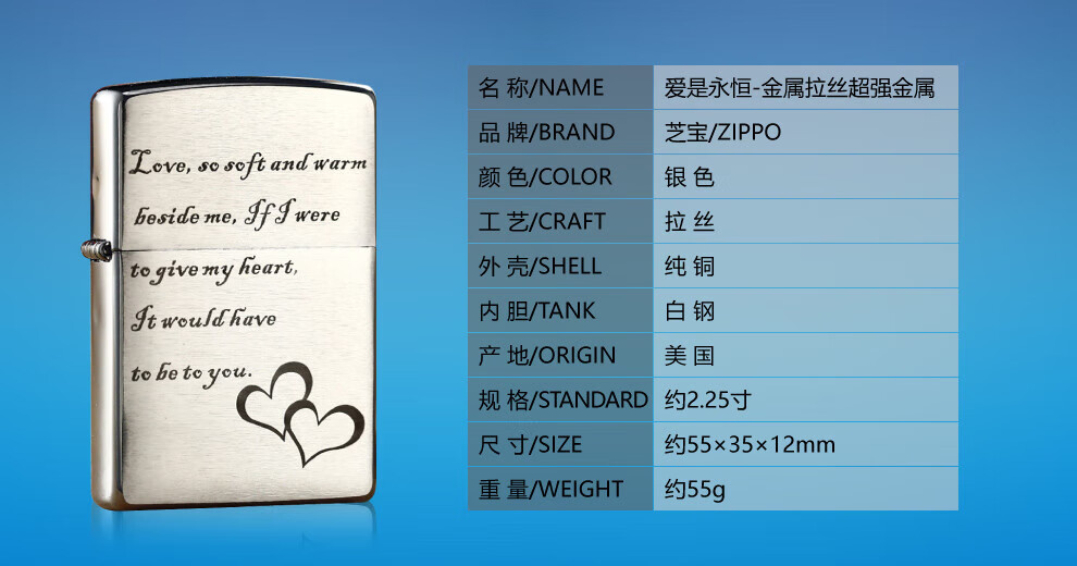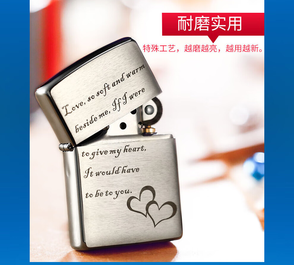 ZIPPO之宝打火机拉丝定制铜防风煤油芝宝打火机生日礼物男 200永恒的爱礼盒套装