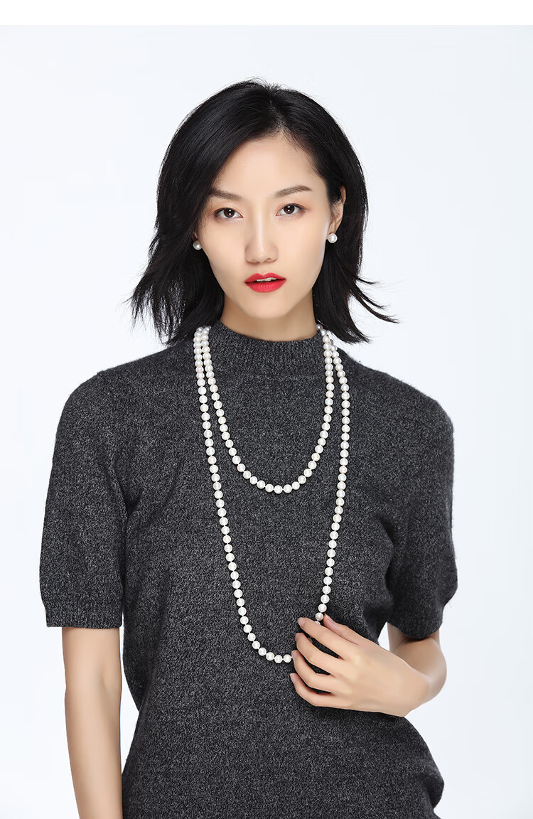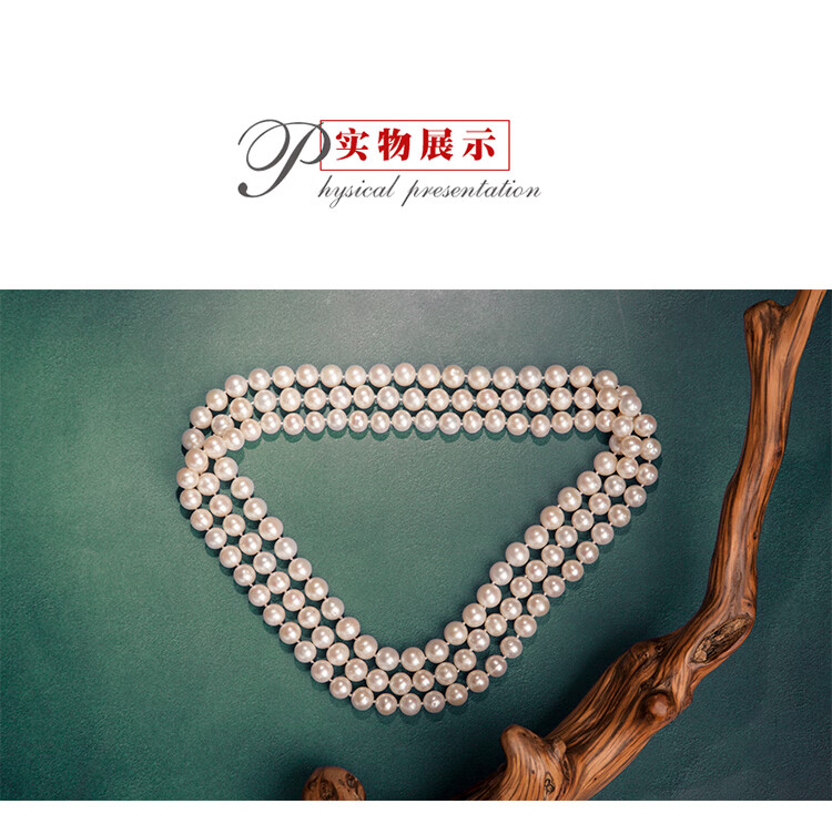 DL 1998胖东来品质妈妈珍珠项链珍珠项链长款毛衣链中老年人婆婆送妈妈款 近正圆亮光细微i瑕 7-8mm x 96cm