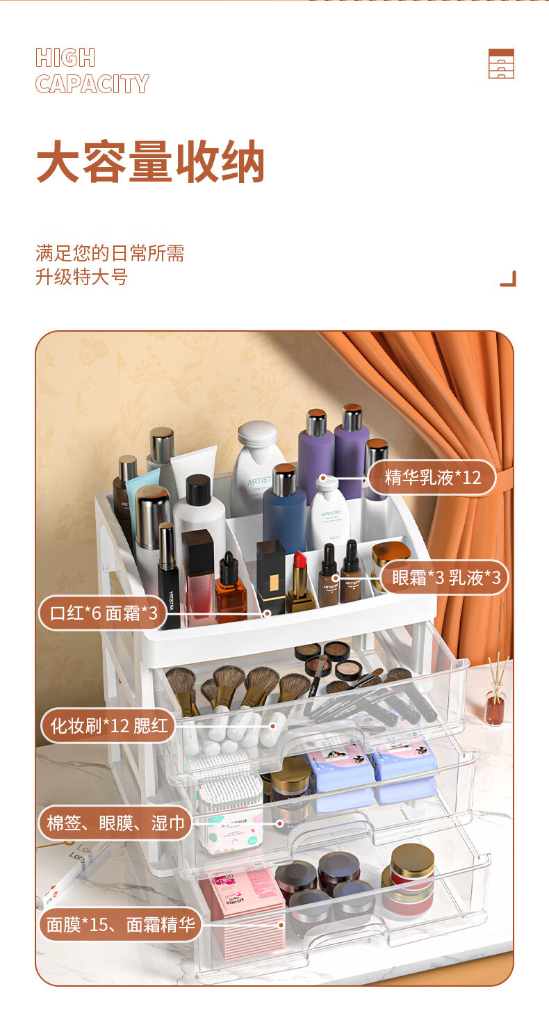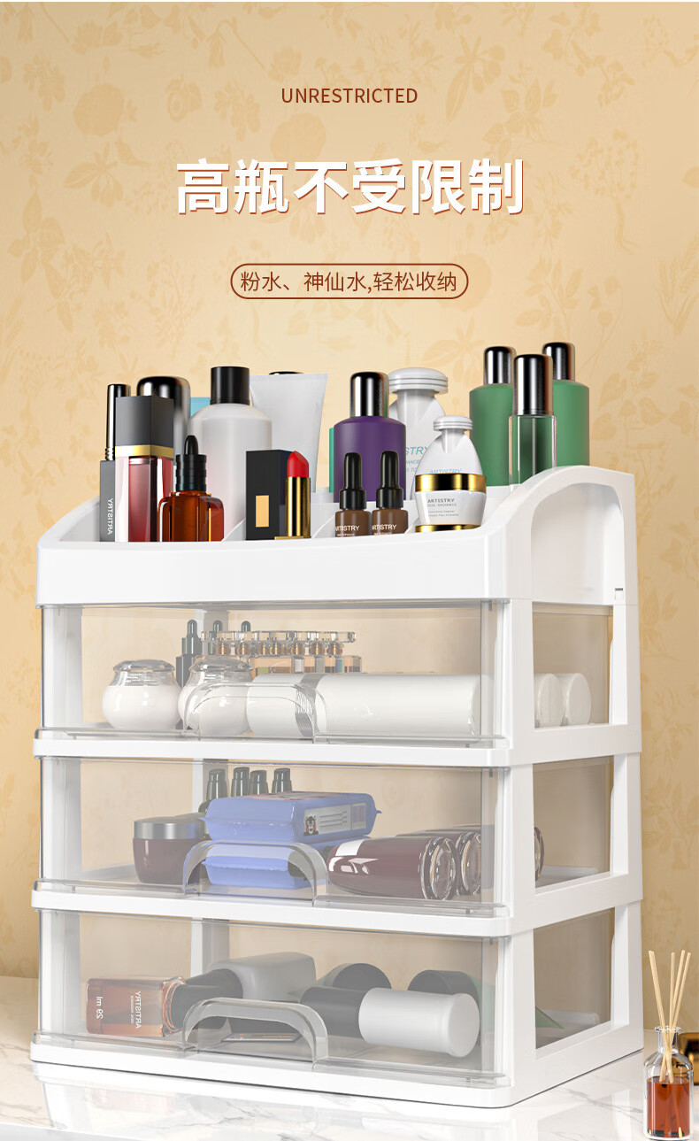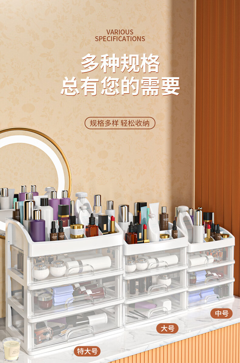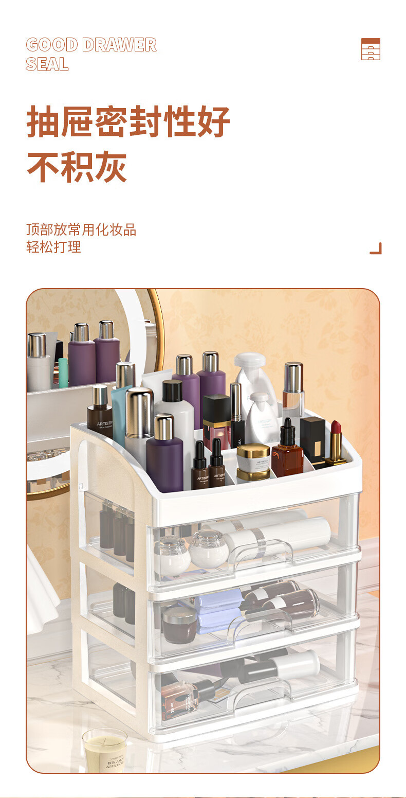 桌面收纳盒首饰化妆品收纳架美甲工具口红盒抽屉式杂物面膜置物架 四层化妆品收纳盒1个