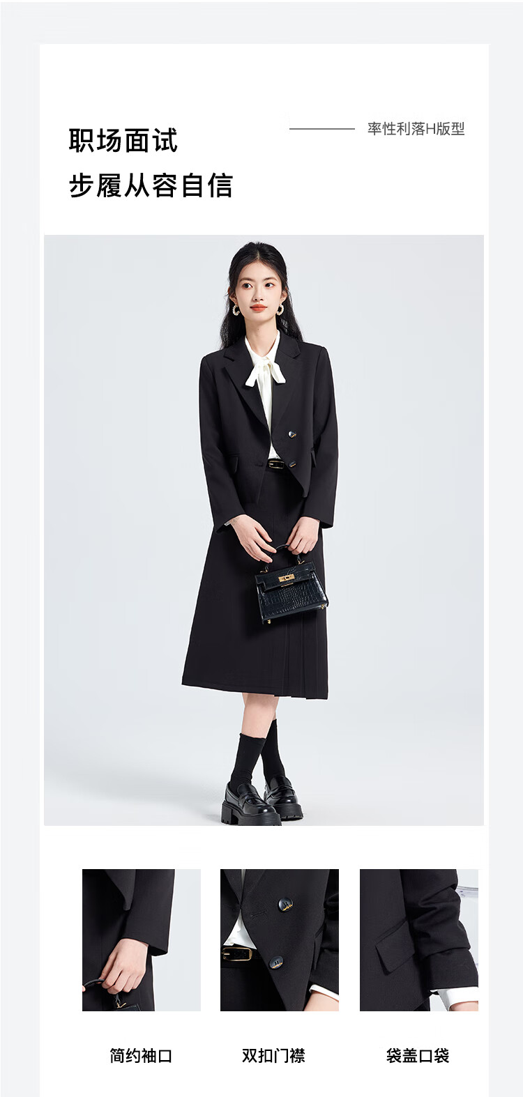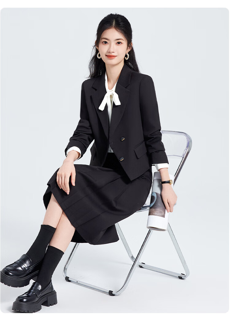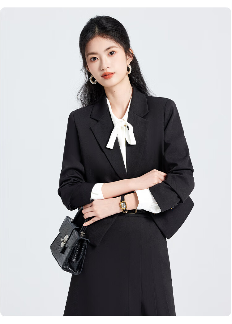 正装女套装教资面试职场穿搭春秋小个子职业装气质西装外套工作服 黑色(单件外套) S