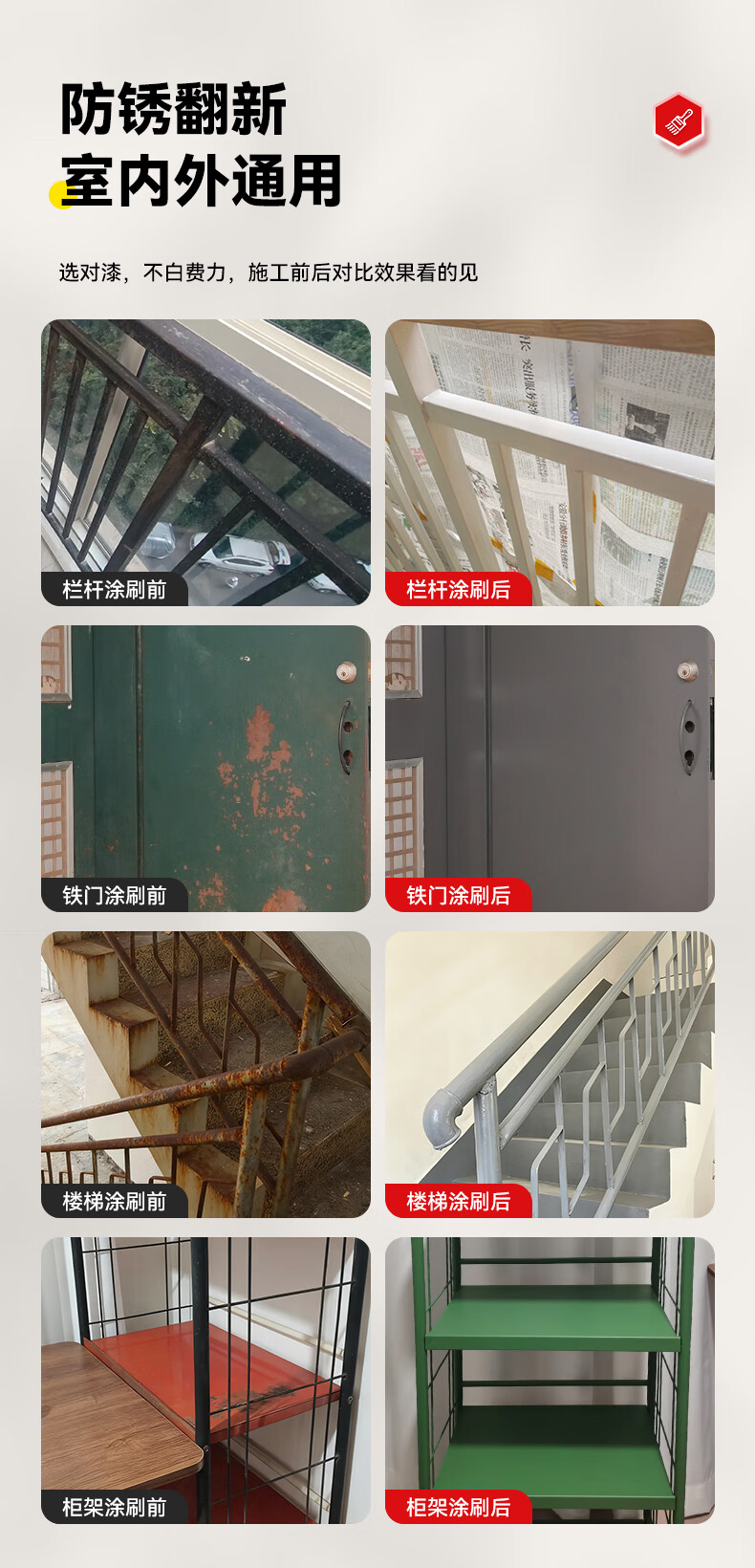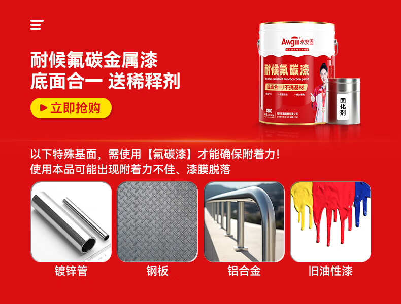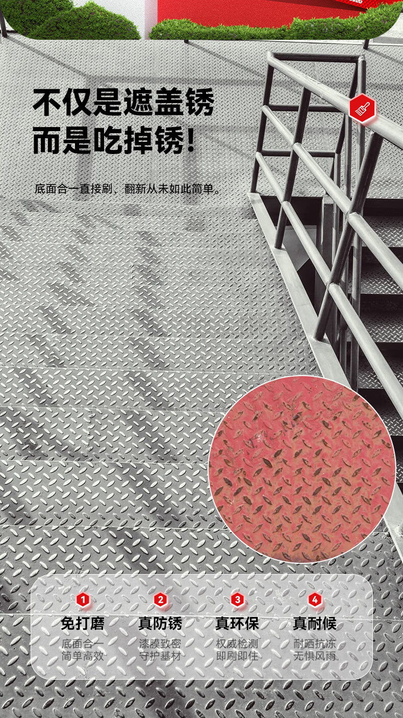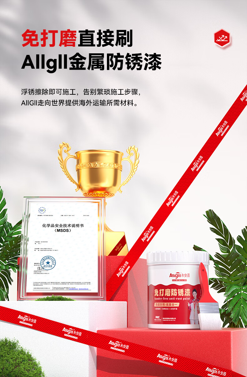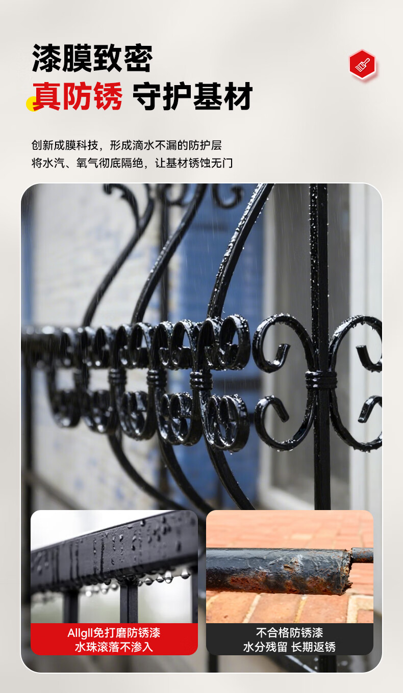 Allgll防锈漆金属油漆免除锈水性改色免打磨栏杆翻新专用铁锈转化漆防腐