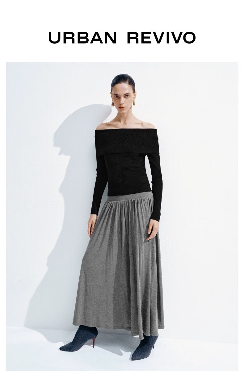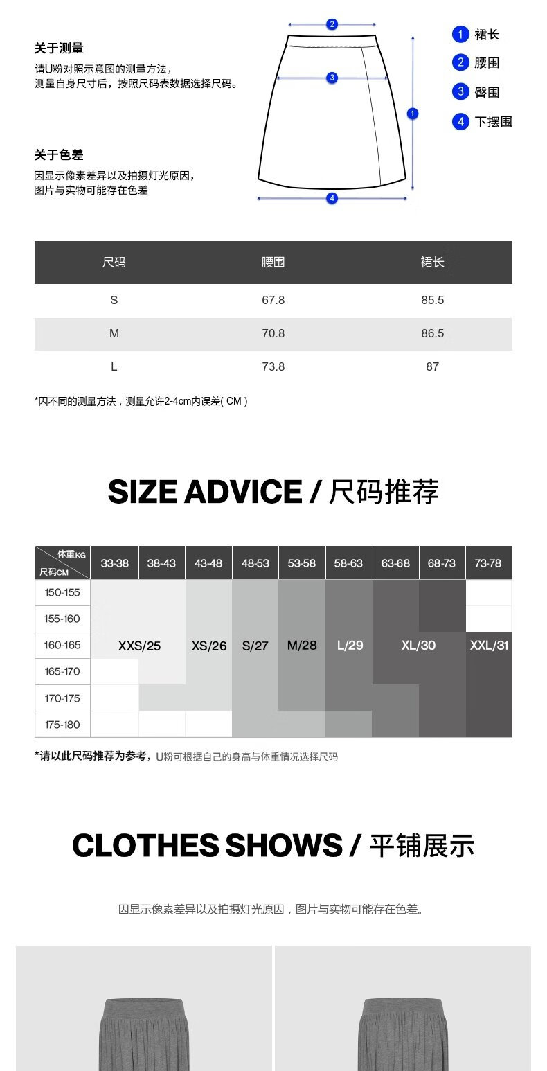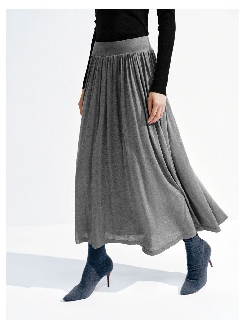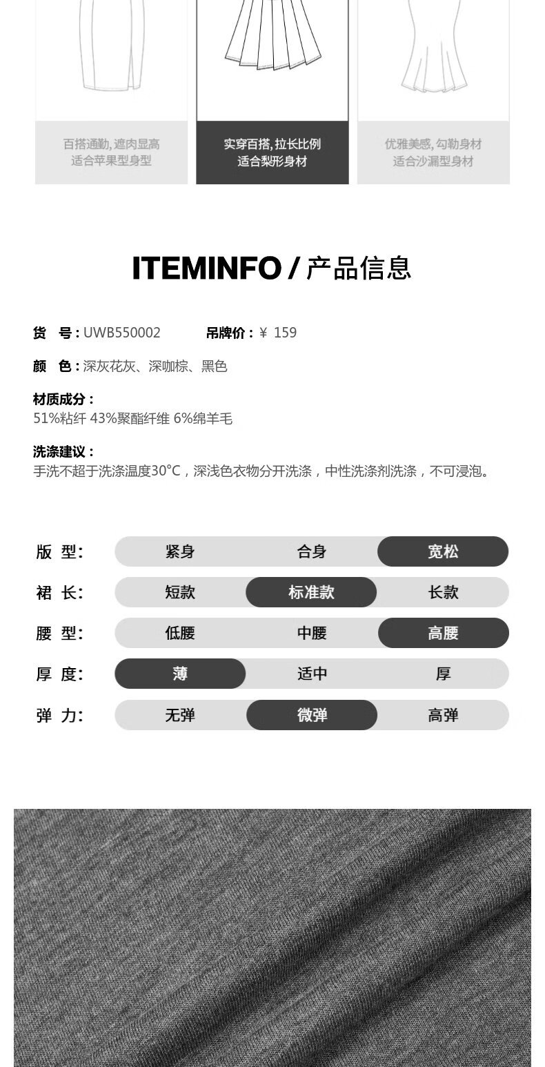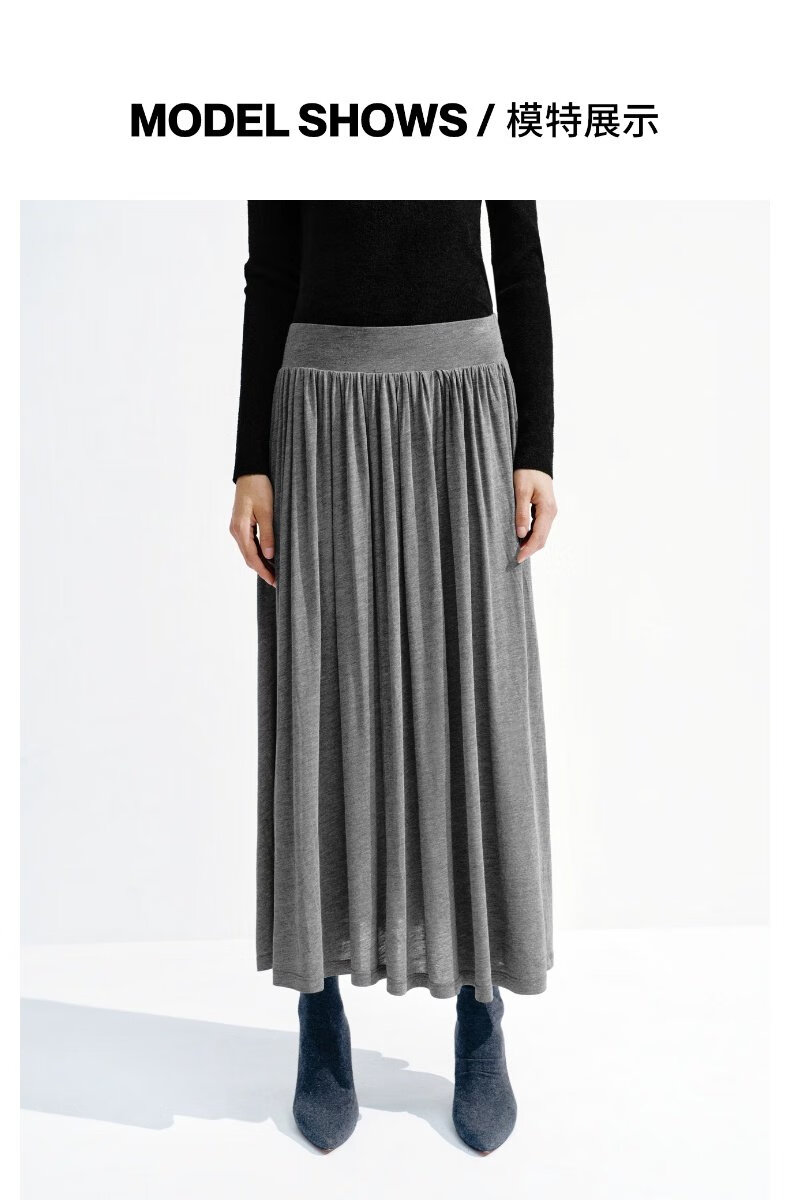 UR2026春季新款女装简约气质休闲垂坠感百褶半裙UWB550002 深灰花灰 S (XS-S)