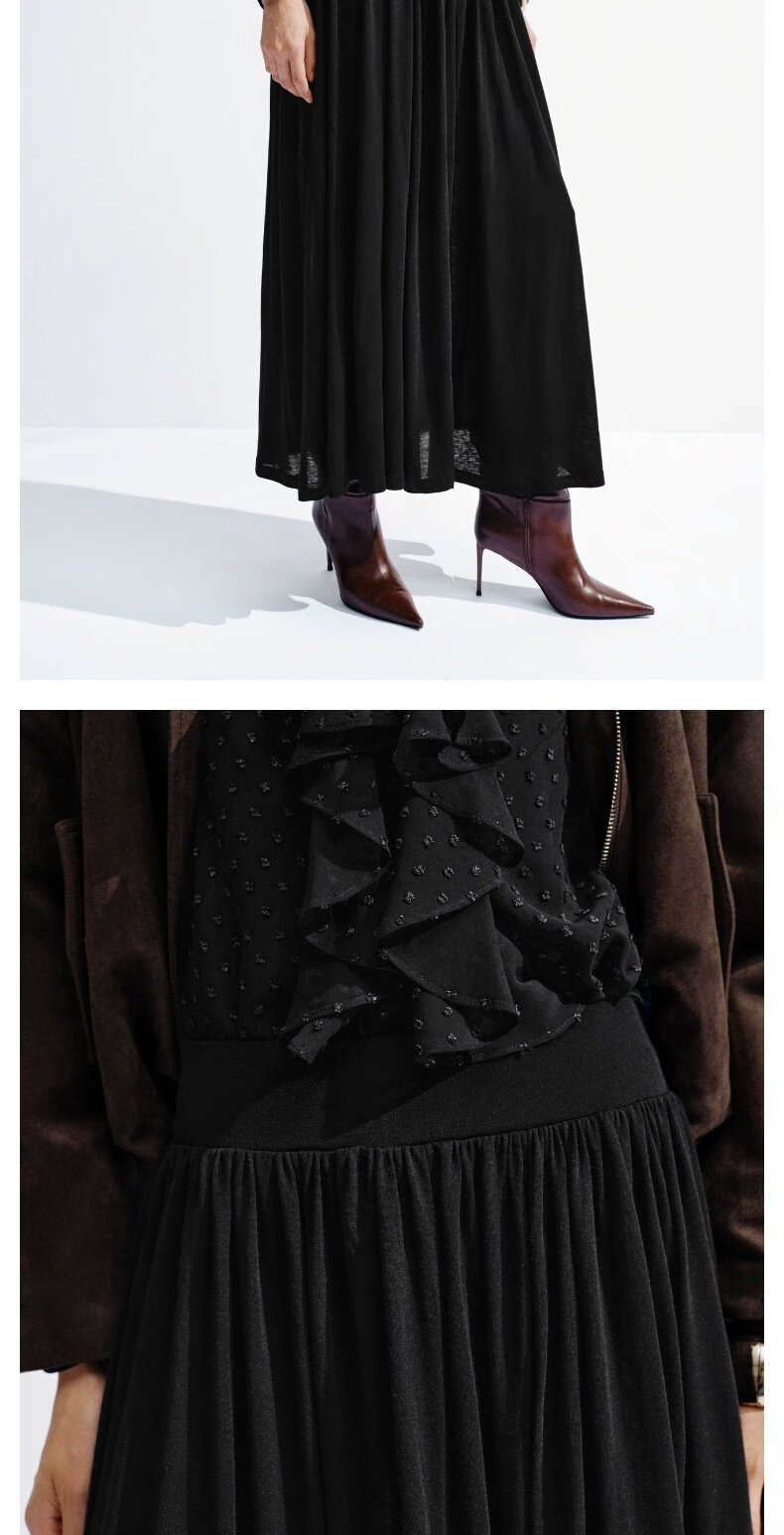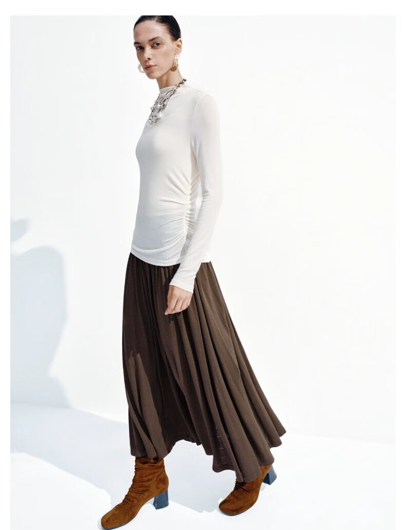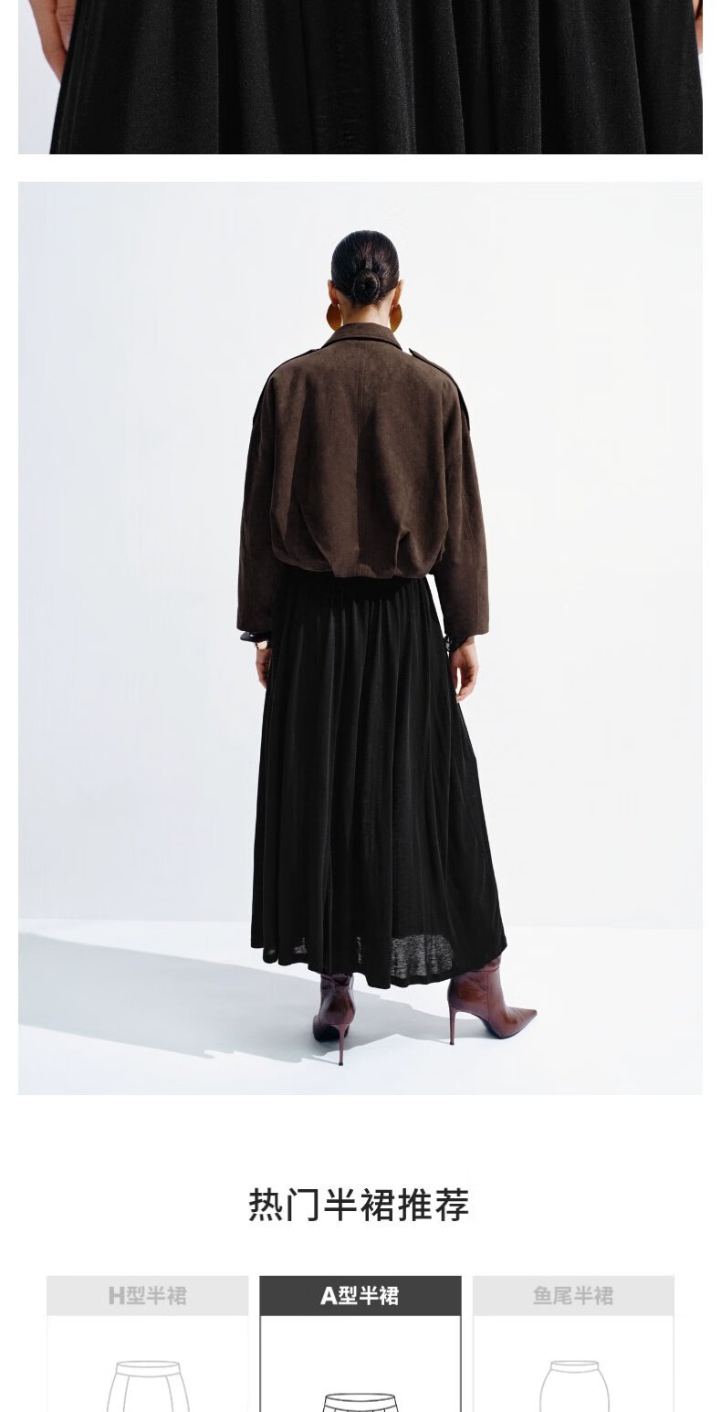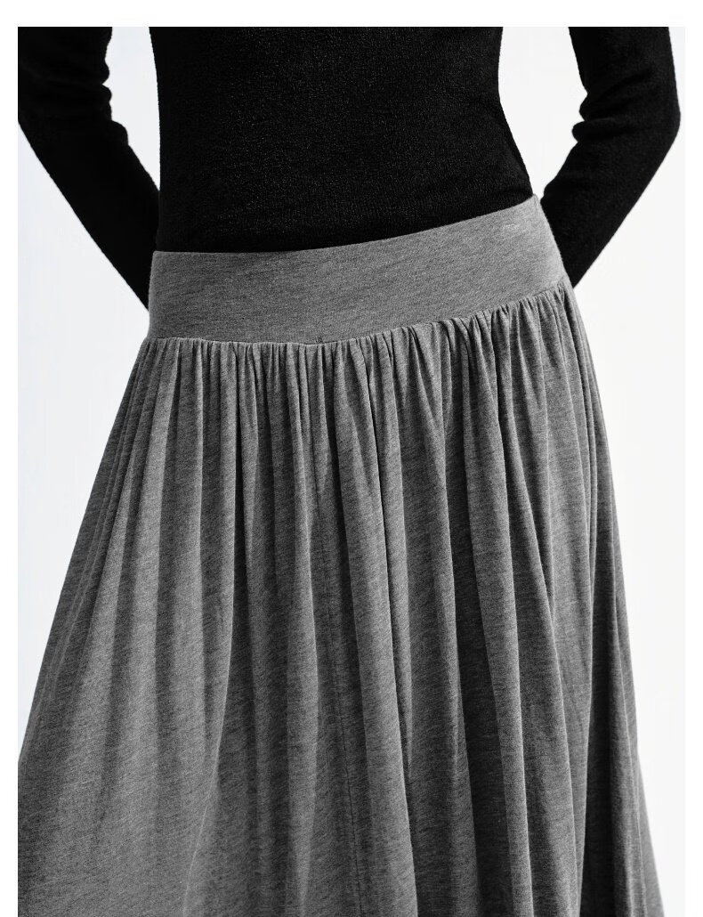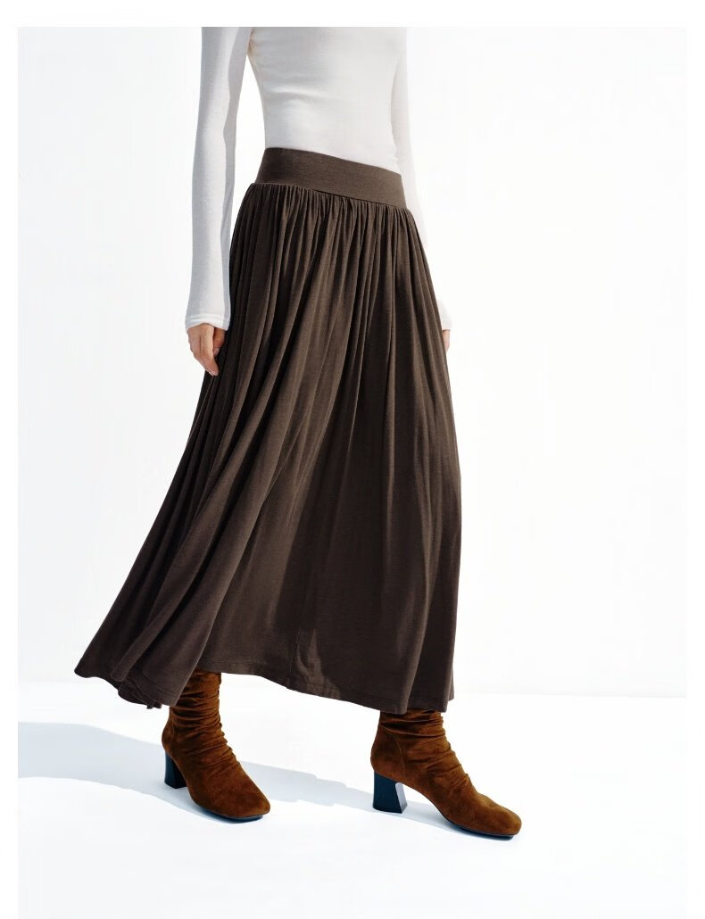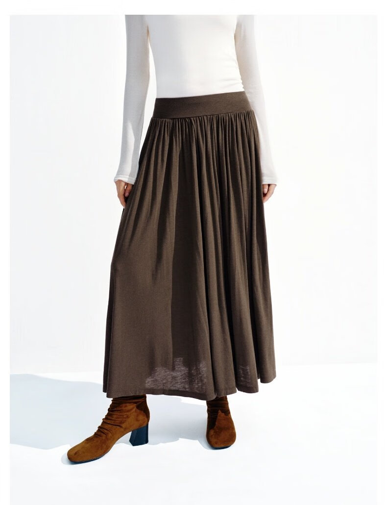 UR2026春季新款女装简约气质休闲垂坠感百褶半裙UWB550002 深灰花灰 S (XS-S)