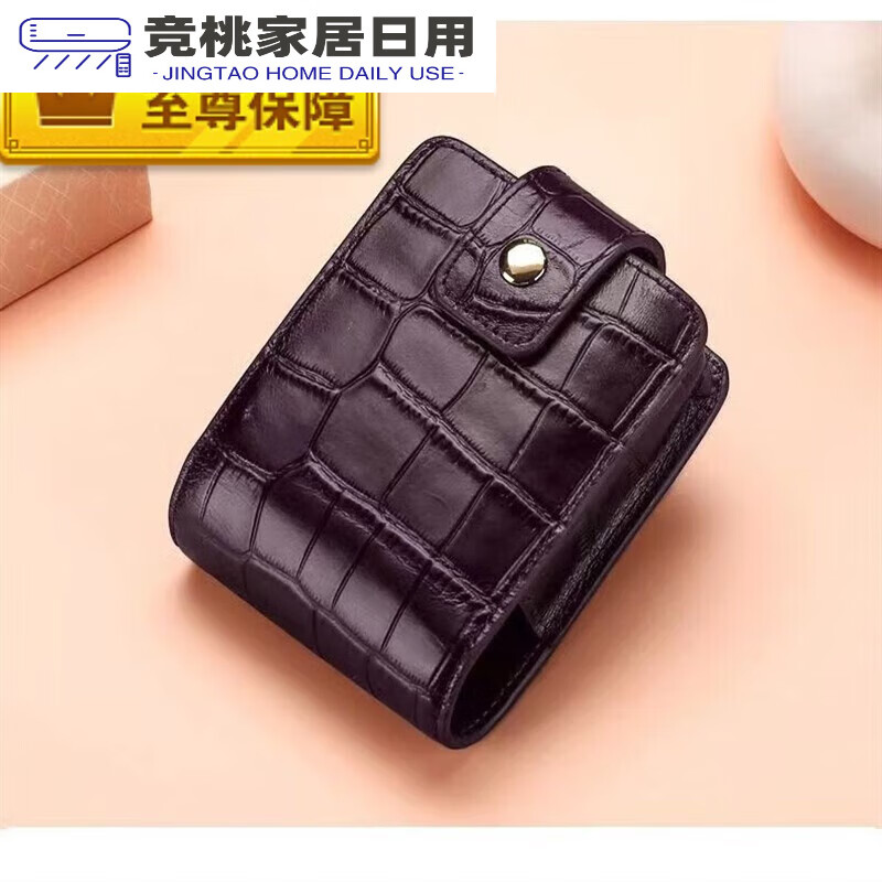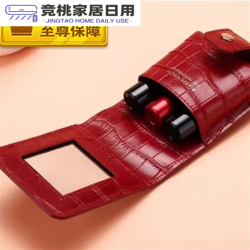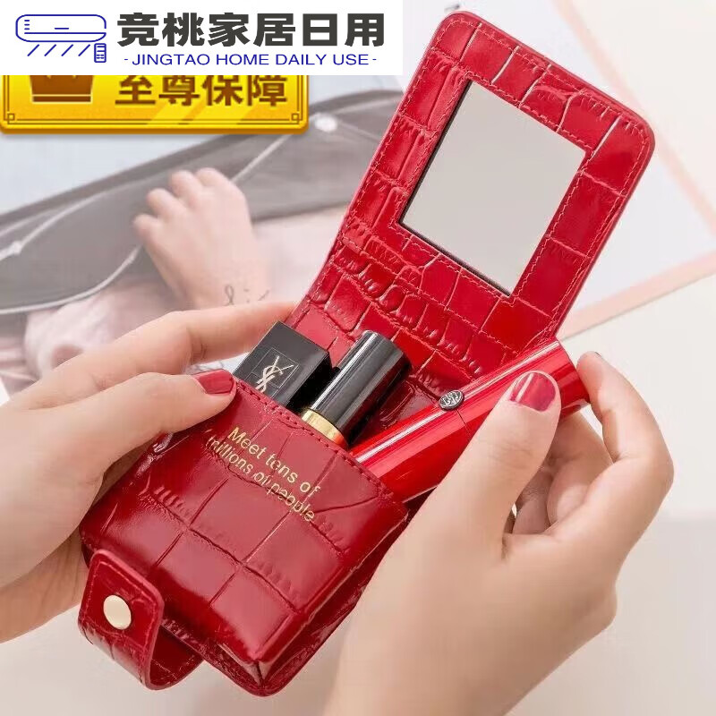 口红收纳盒随身口红包真牛皮鳄鱼纹小镜子随身带网红便 实用款睿智黑