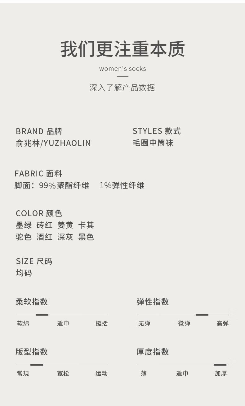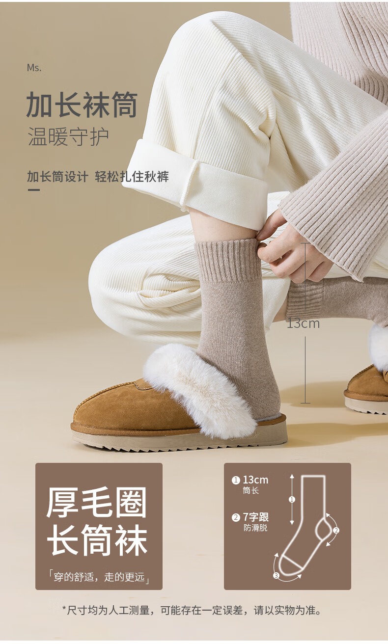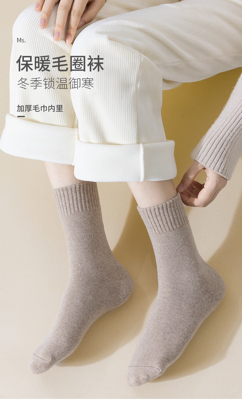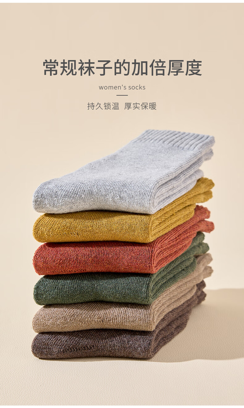 俞兆林6双装袜子女秋冬加绒加厚保暖棉袜女中筒袜毛巾长袜毛圈袜地板袜