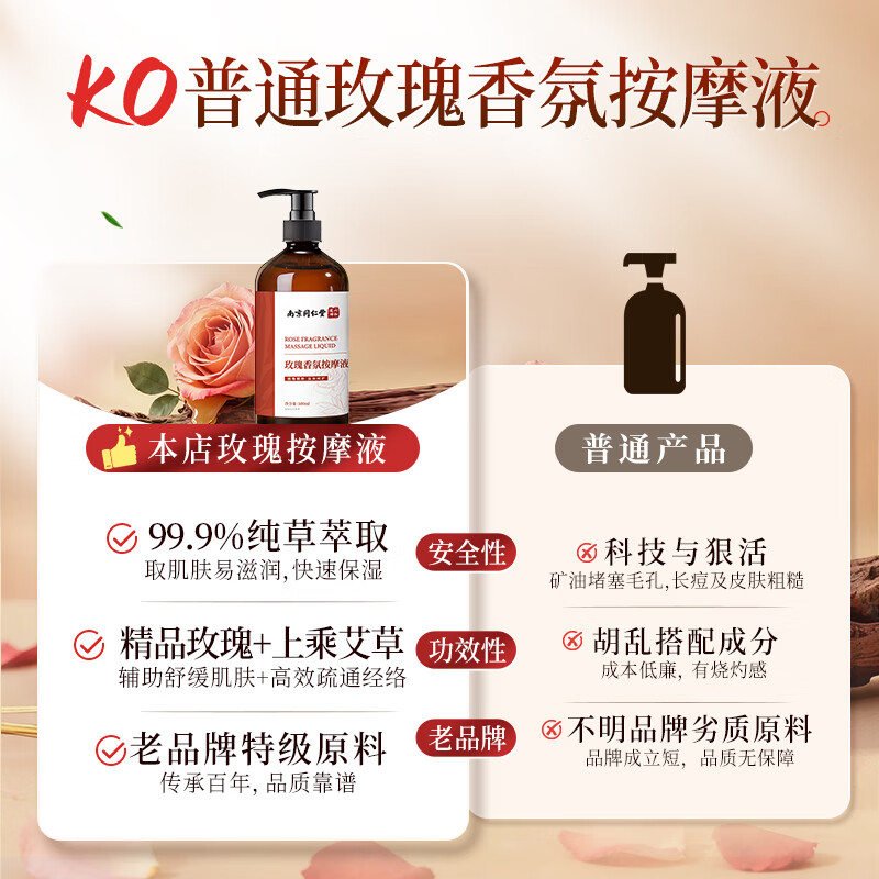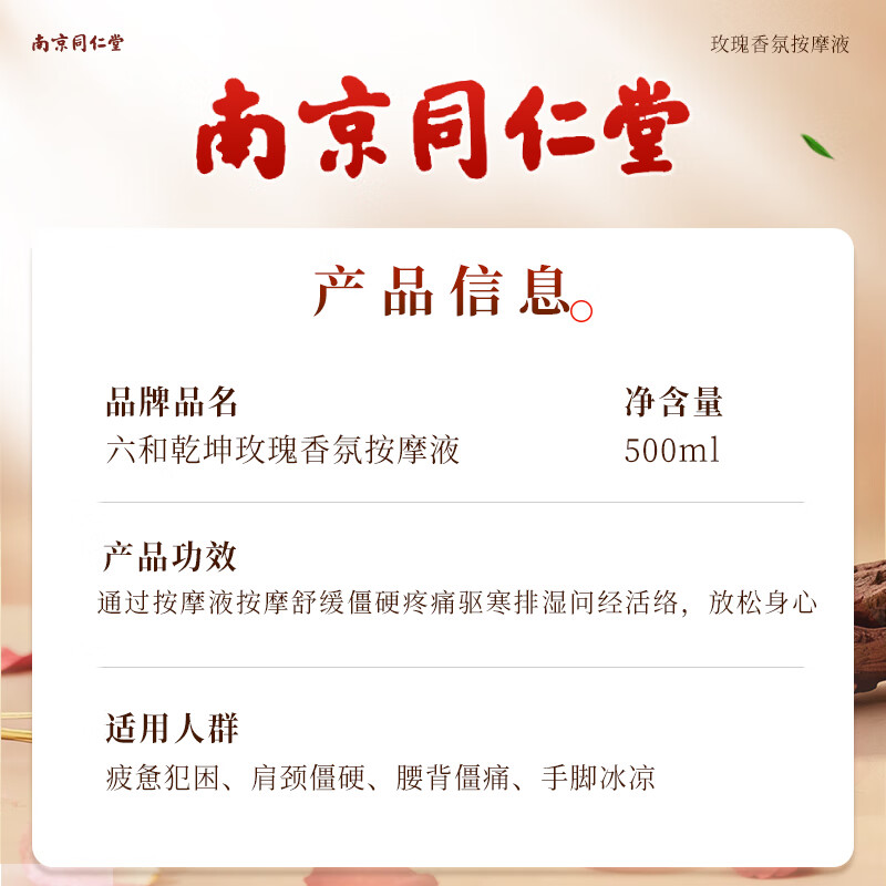 南京同仁堂艾草玫瑰按摩精油500ml全身刮痧通经络发热推拿油疏通排毒spa开背