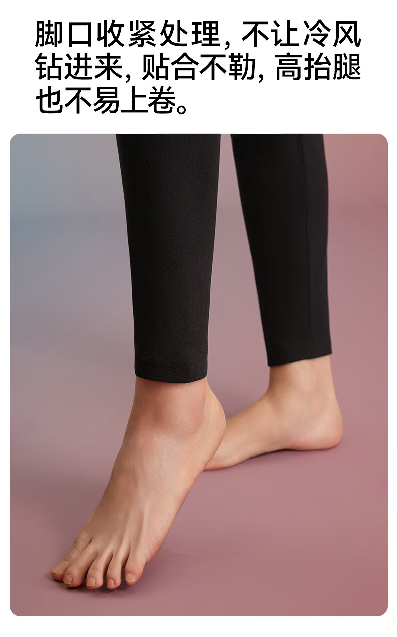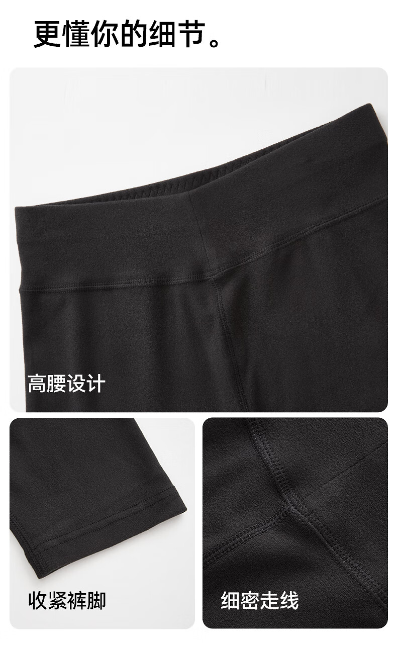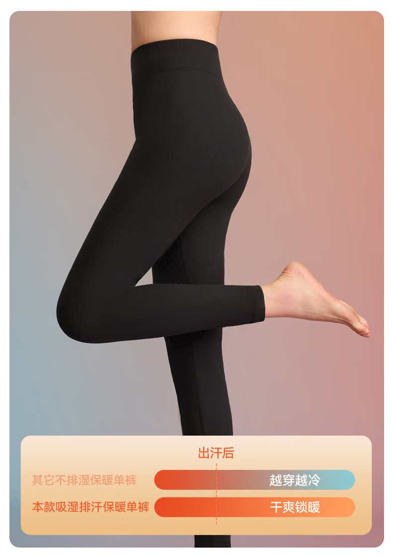 三福(SANFU)女冬季阳离子单裤 简约修身保暖打底九分裤内衣女846362 黑色 L