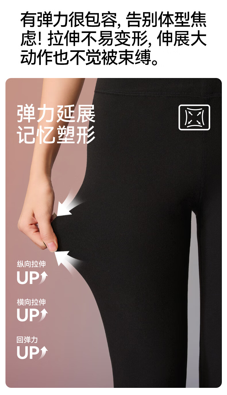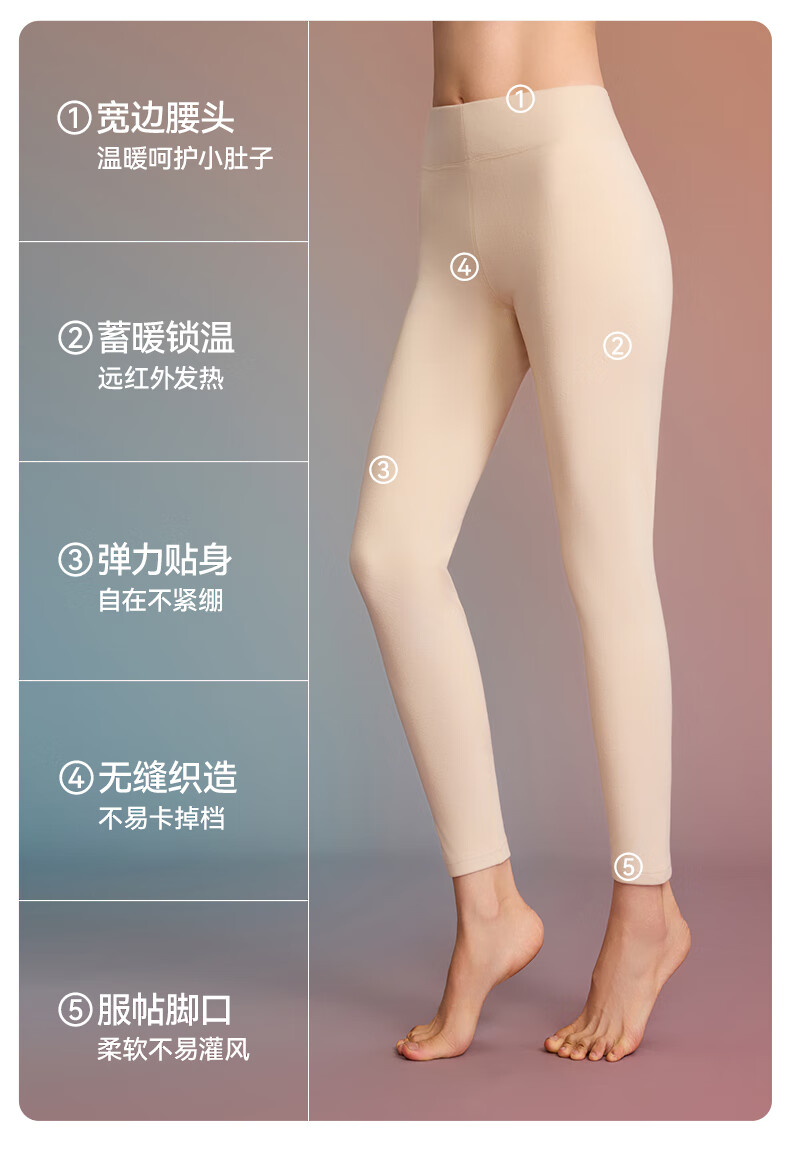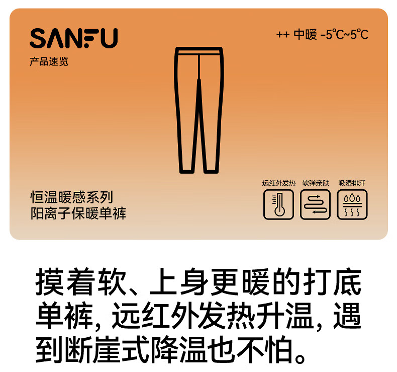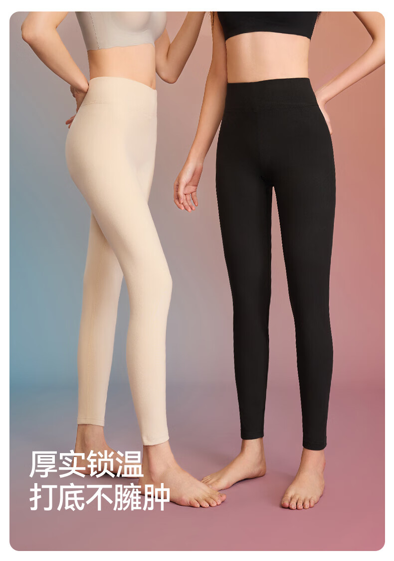三福(SANFU)女冬季阳离子单裤 简约修身保暖打底九分裤内衣女846362 黑色 L