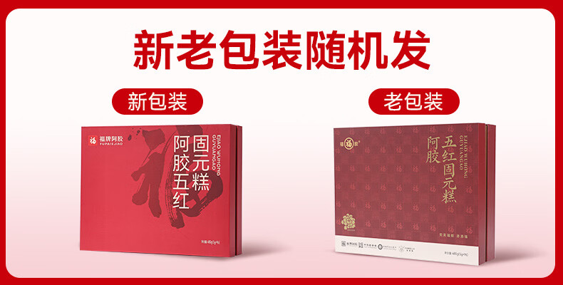 福牌阿胶480g阿胶固元糕五红五黑礼盒装气血送长辈年货节礼物中华老字号 480g*1盒 女性推荐-新旧包装随机发货