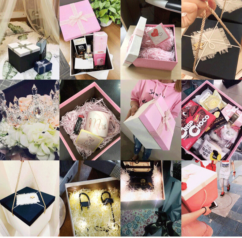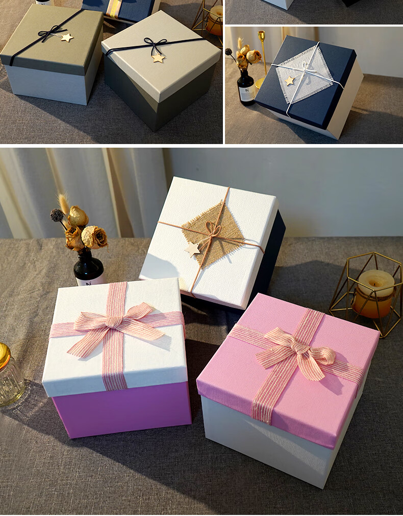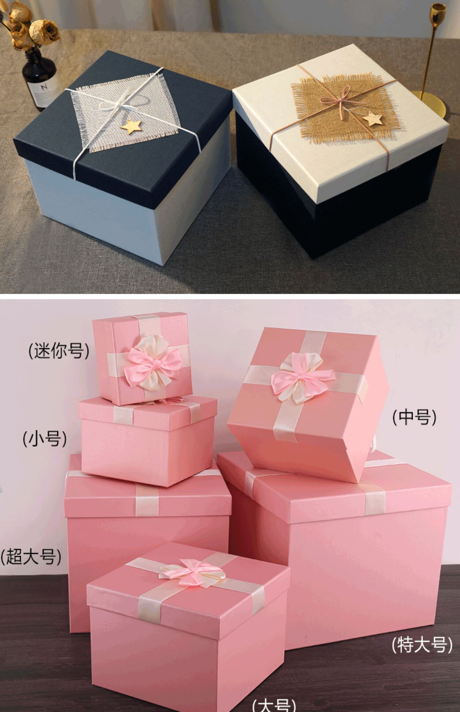 名桥礼品盒礼盒空盒子仪式超大号礼物盒生日礼物包装盒高级感伴手礼盒 蓝盖白底 正方形大号24*24*18cm