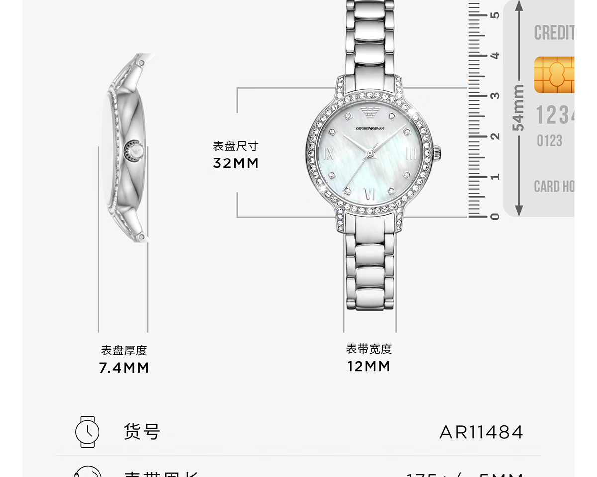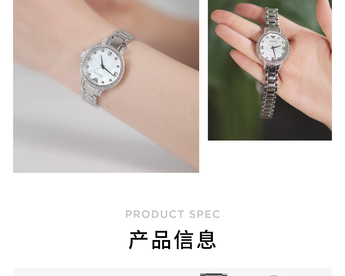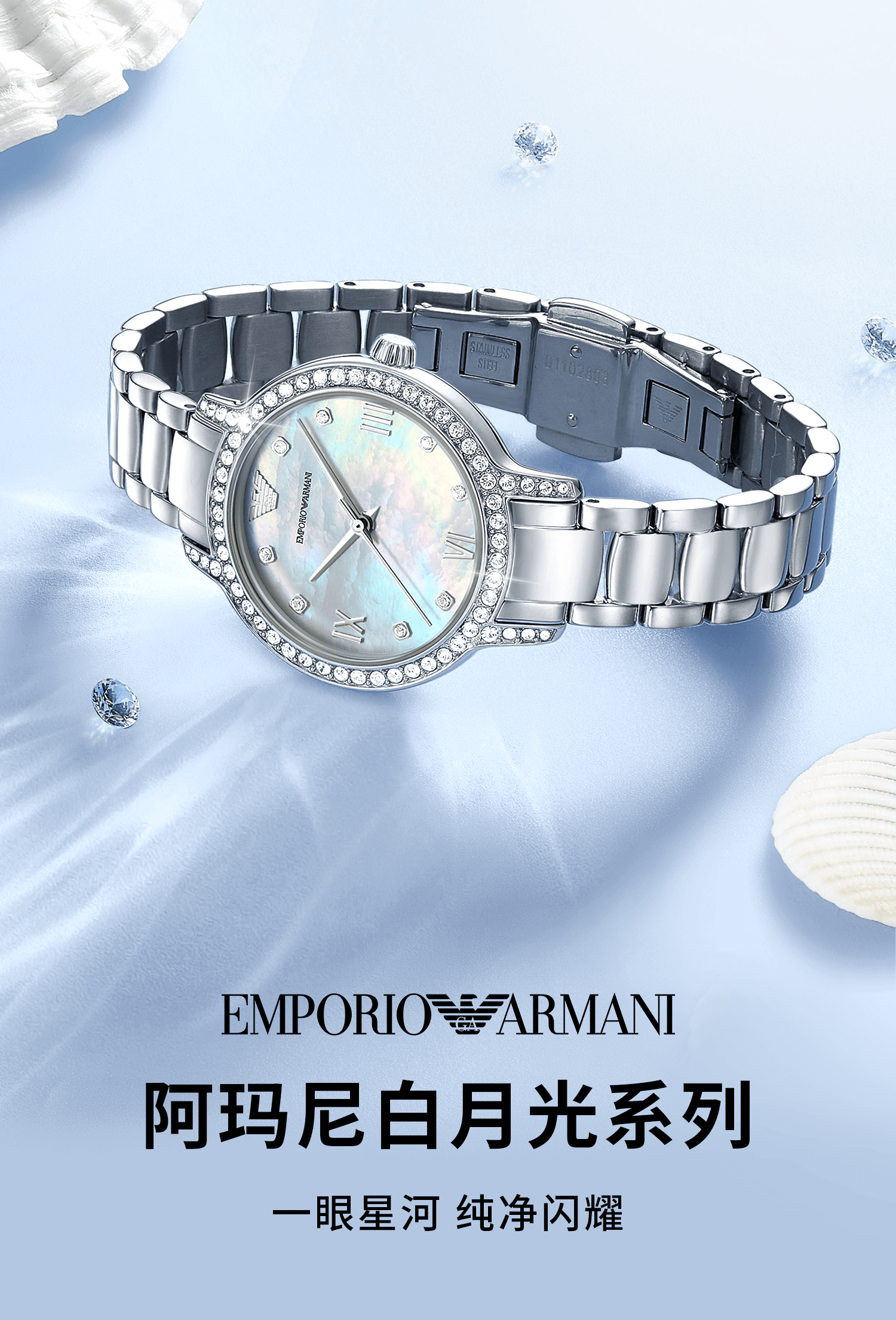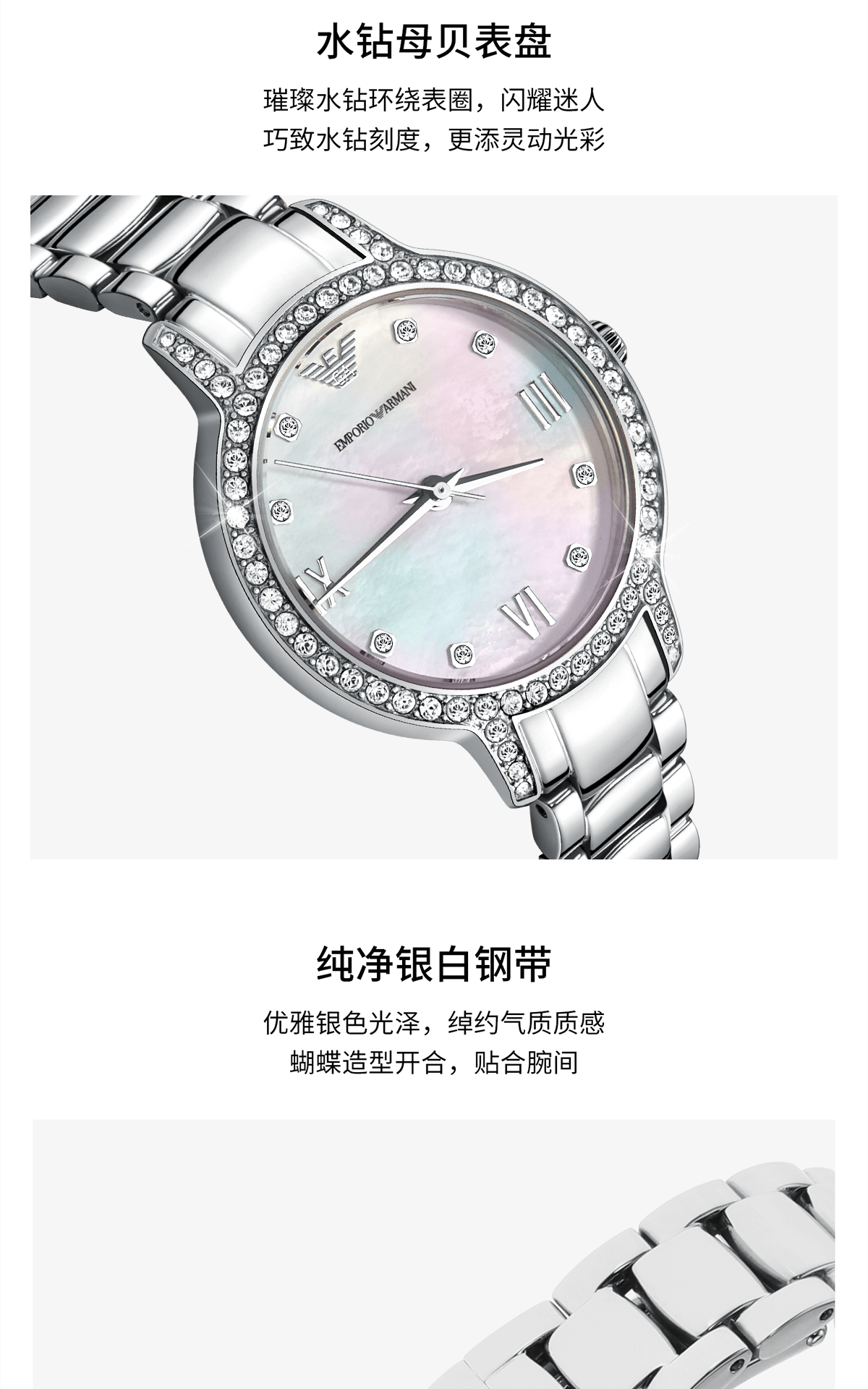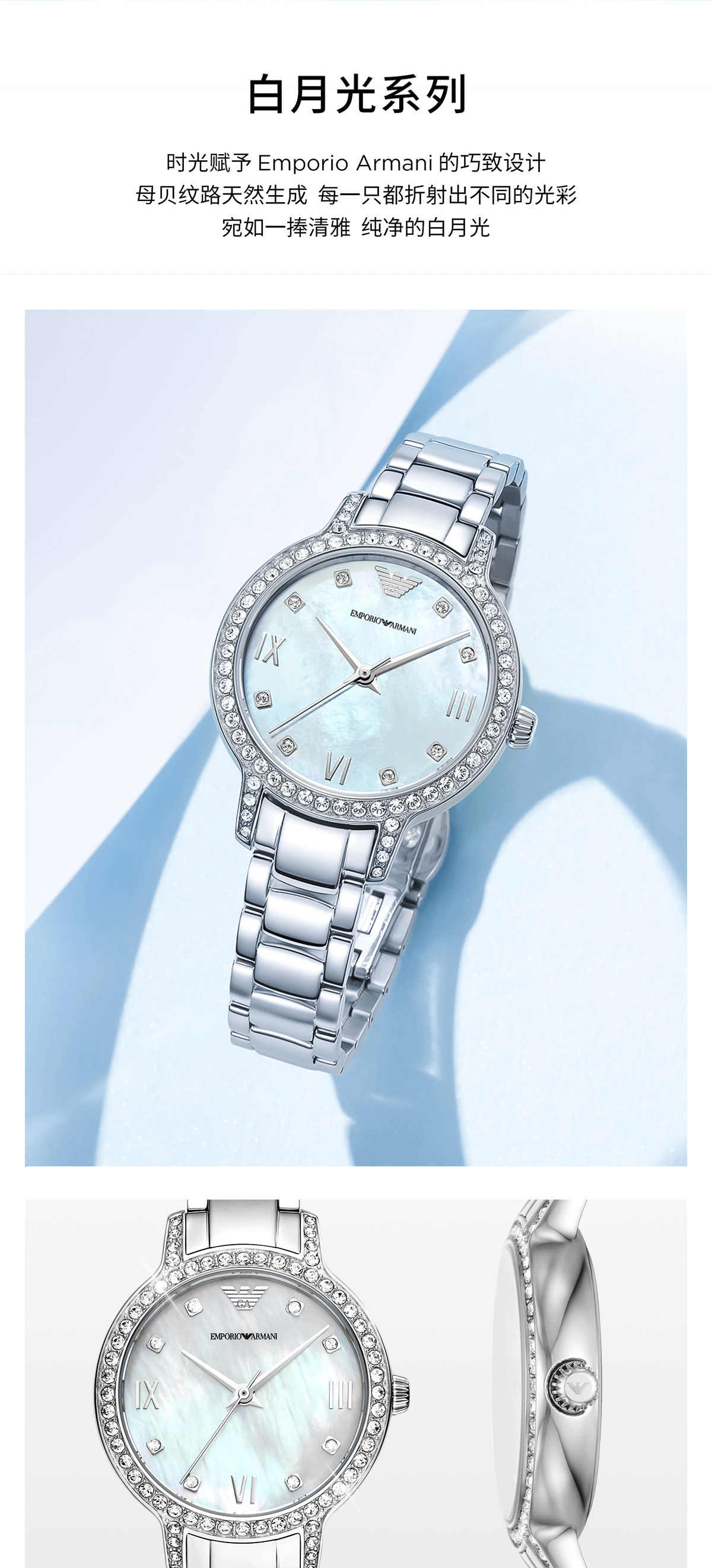 EMPORIO ARMANI阿玛尼手表女士 白月光系列镶钻贝母石英女表生日送女友AR11484