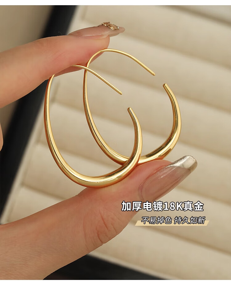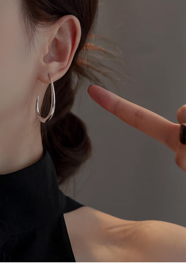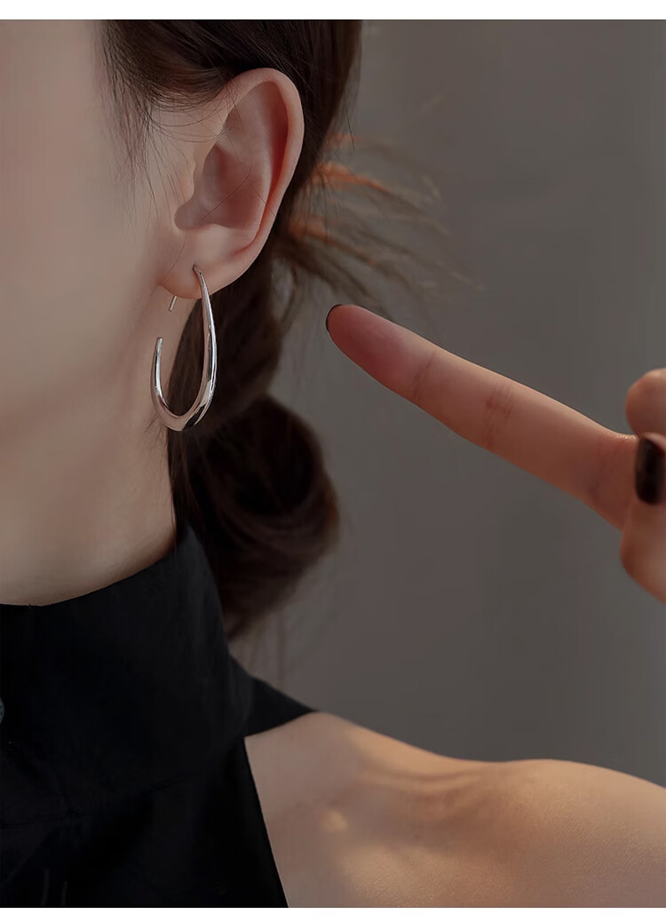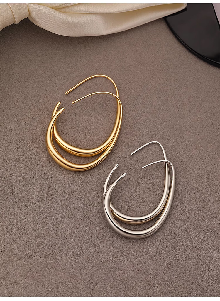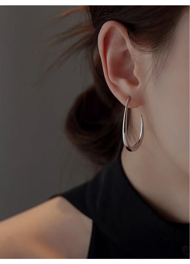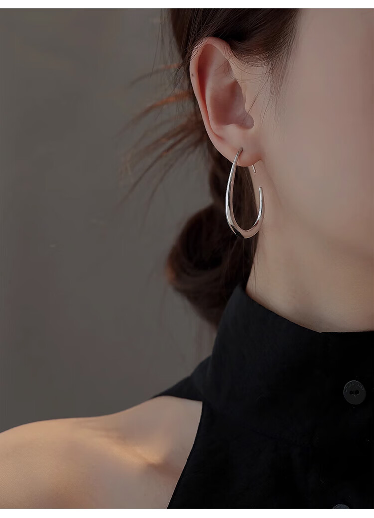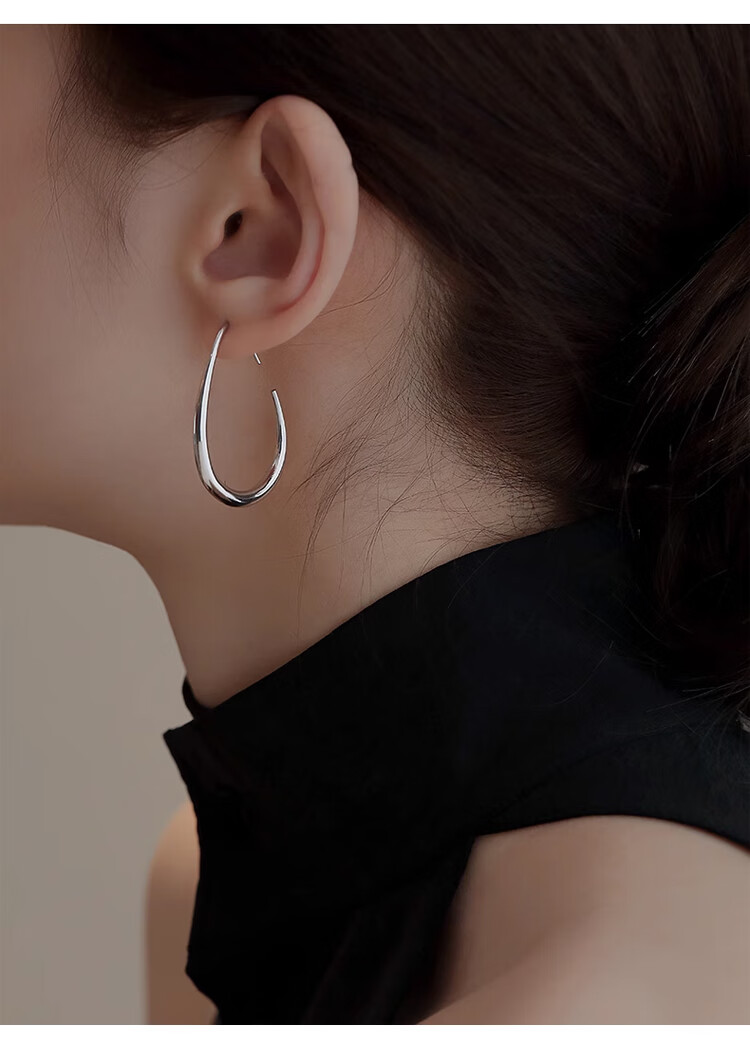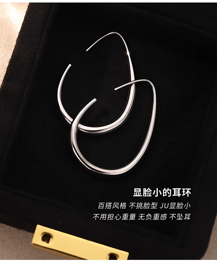 Lnieer高级感水滴耳环女素圈耳圈椭圆圈圈2025新款爆款复古适合圆脸耳饰 水滴形圆圈耳环银色