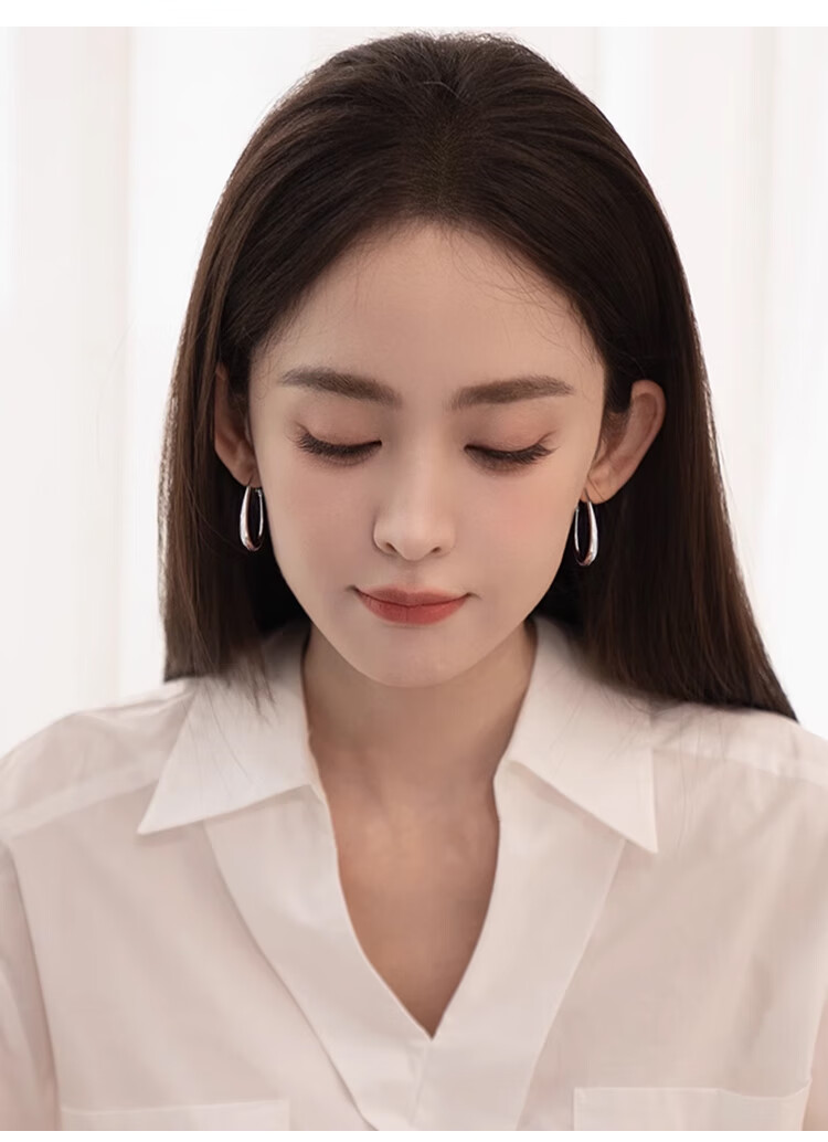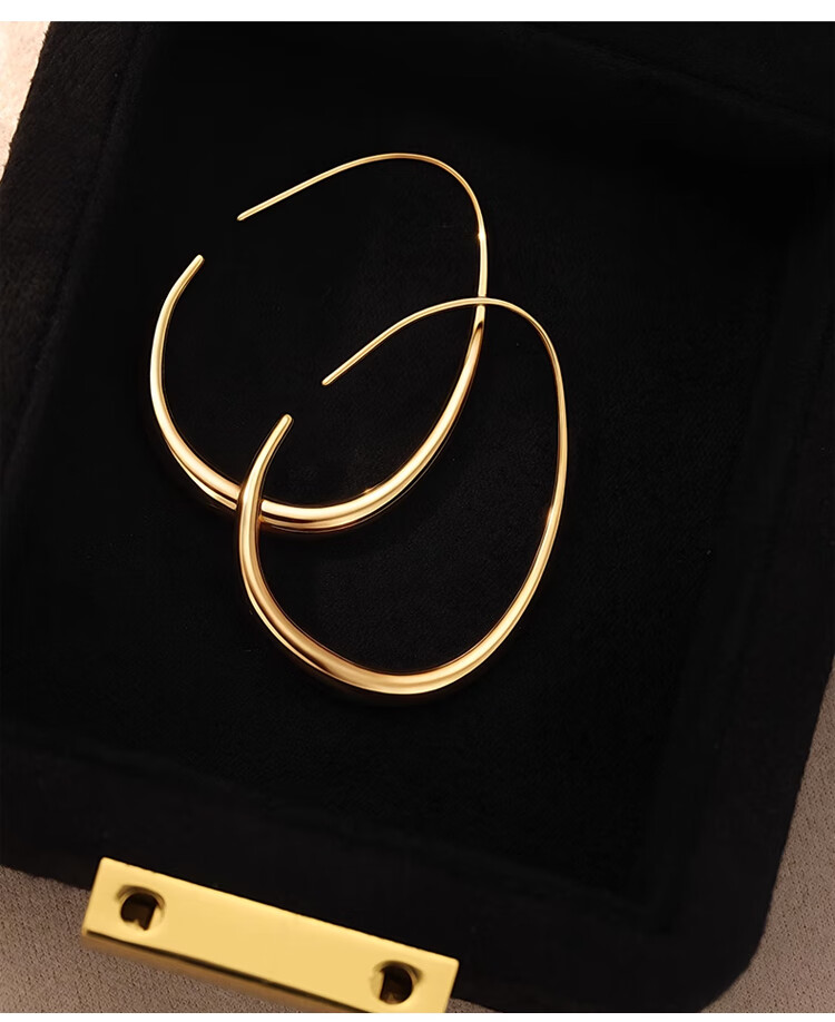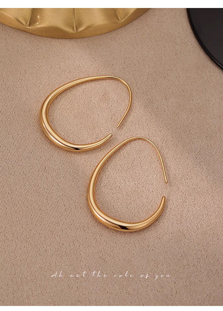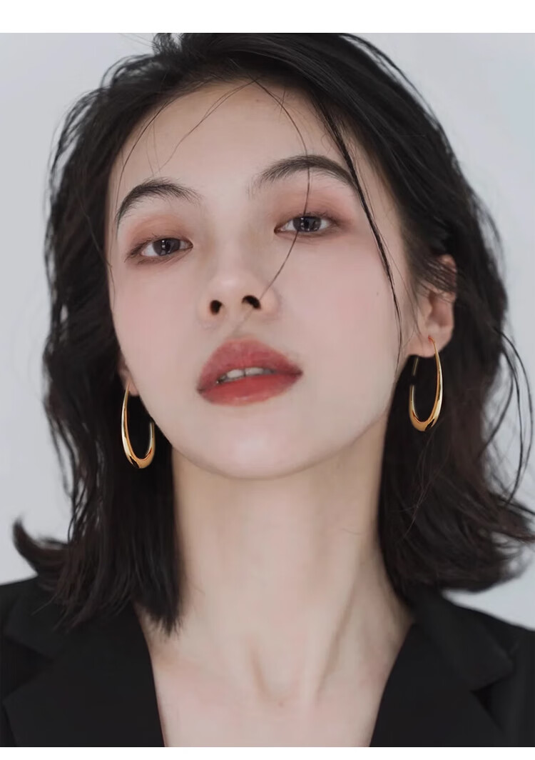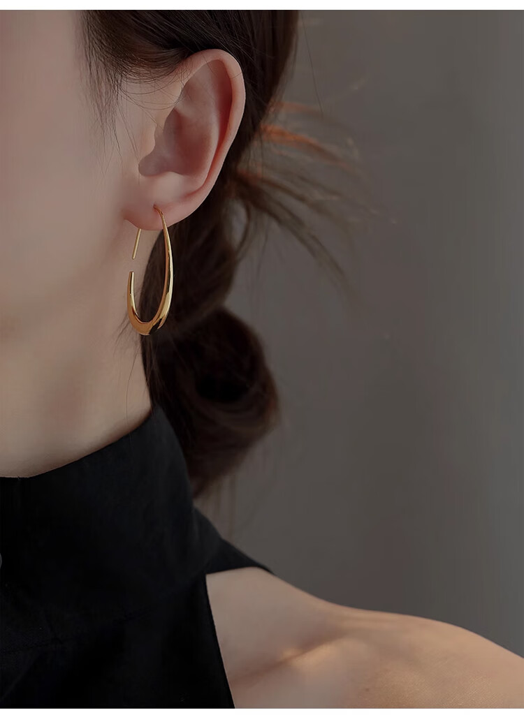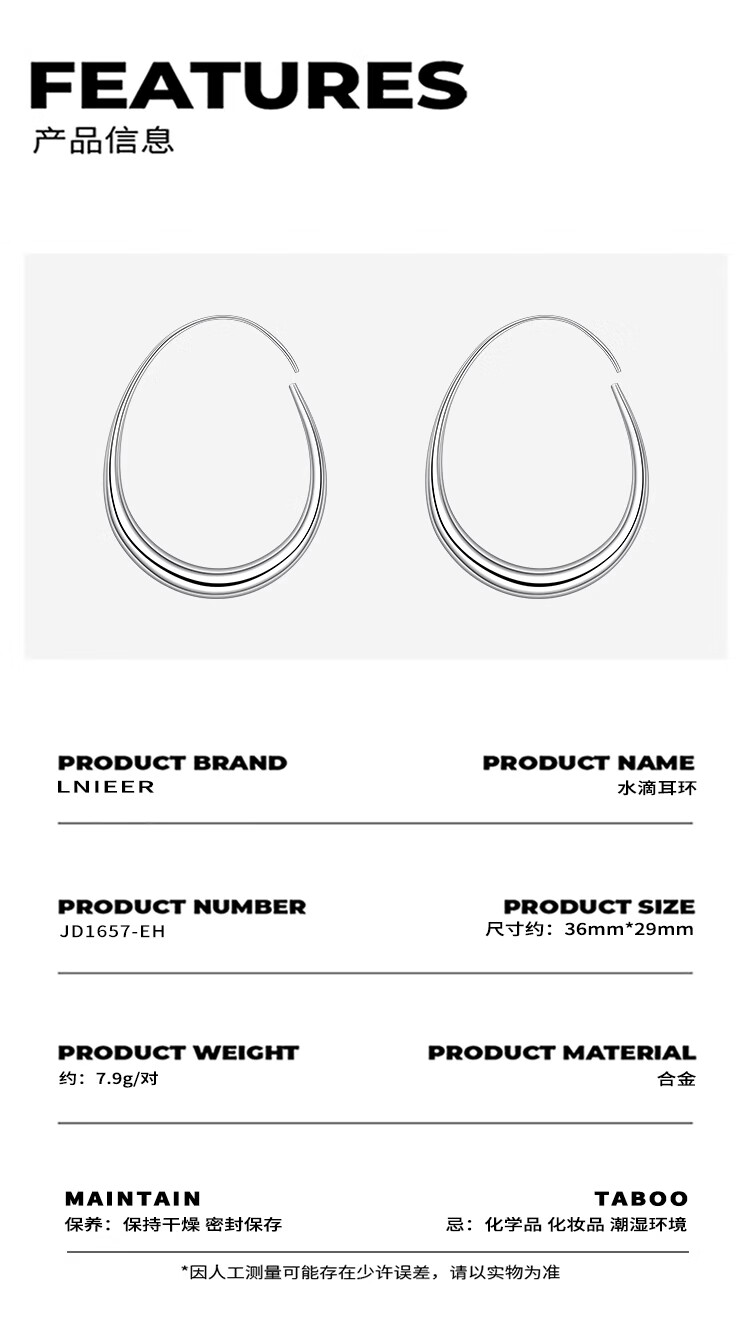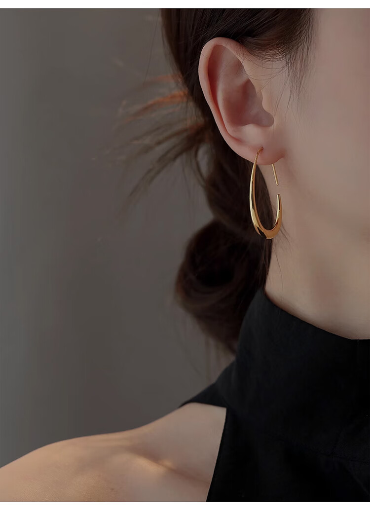 Lnieer高级感水滴耳环女素圈耳圈椭圆圈圈2025新款爆款复古适合圆脸耳饰 水滴形圆圈耳环银色