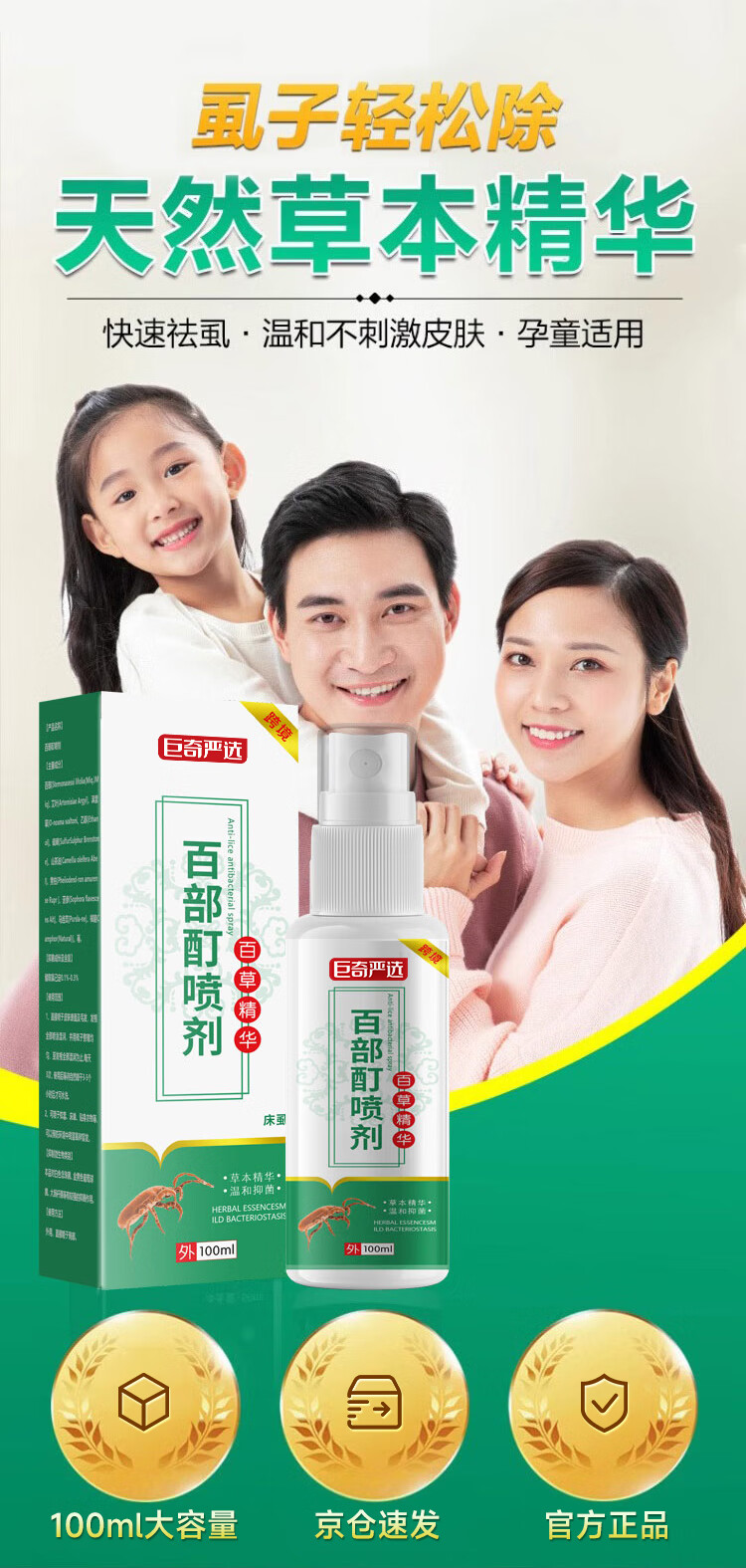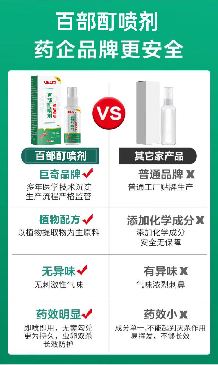 巨奇祥医堂百部酊虱子药头虱去除虱卵阴虱男女私处立净抑菌喷剂100ml