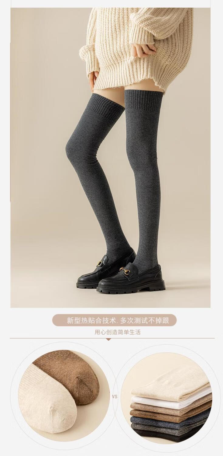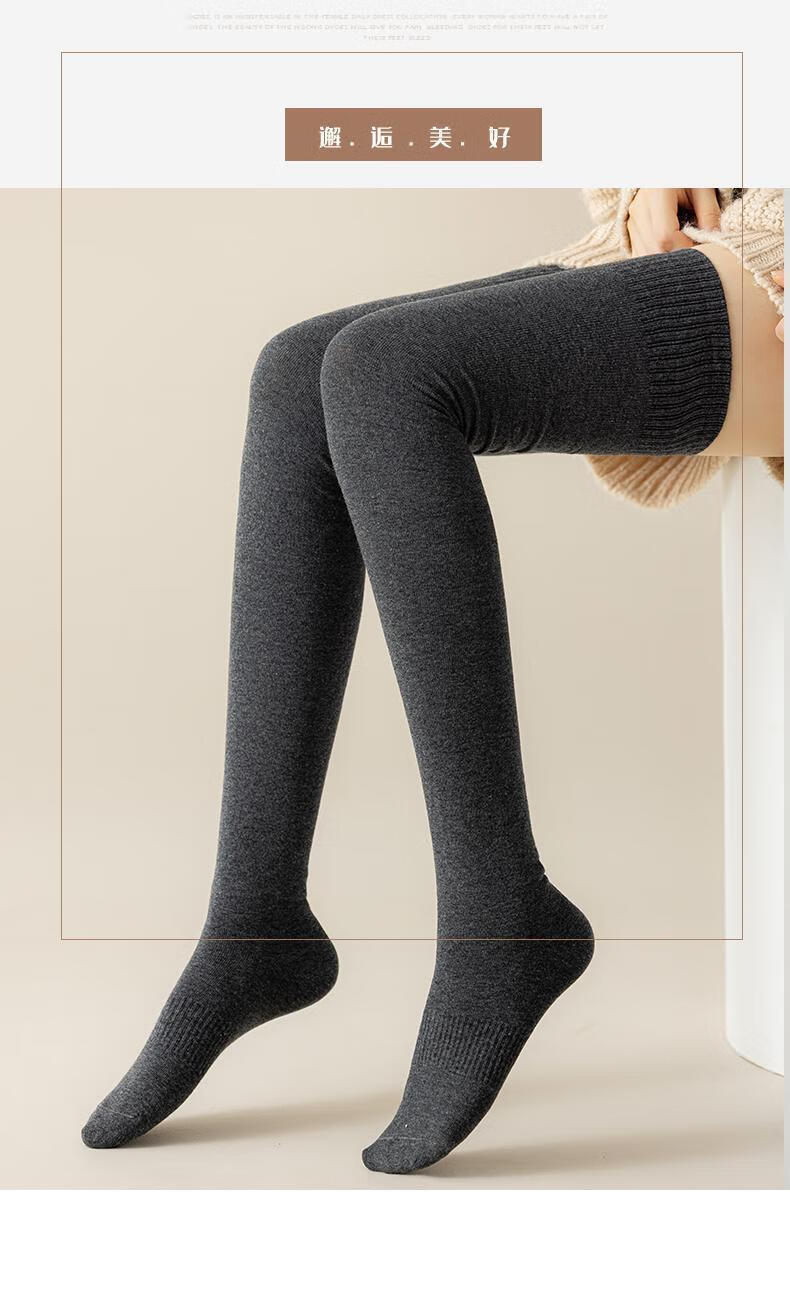 【微压大腿袜】加长到大腿根长筒袜女秋冬款过膝防滑微压软长袜L 保暖腿袜4双【黑色+深灰色 各2双】 均码 微压显瘦