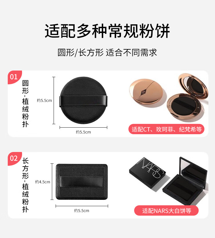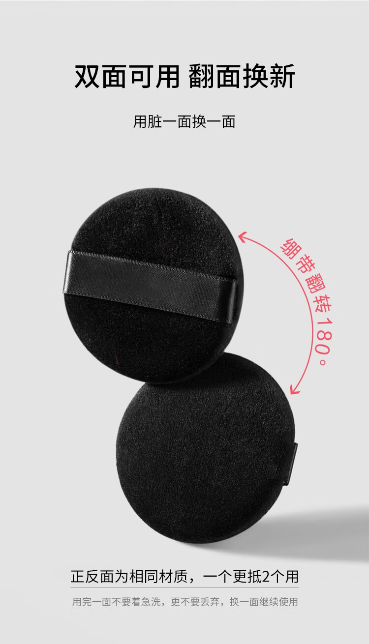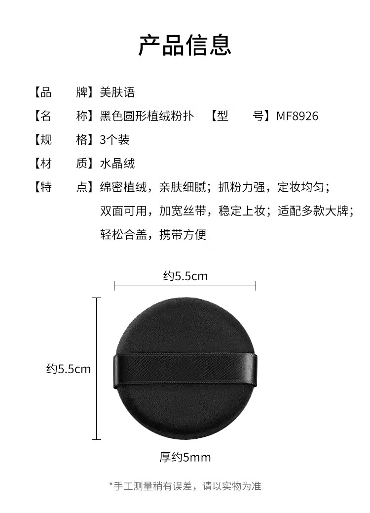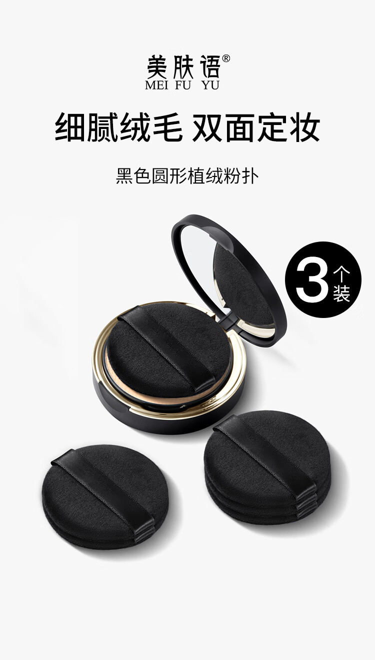 美肤语双面植绒散粉扑粉饼(黑色圆形)3个替换定妆化妆蜜粉扑MF8926