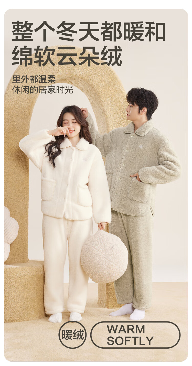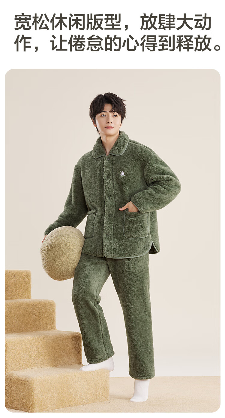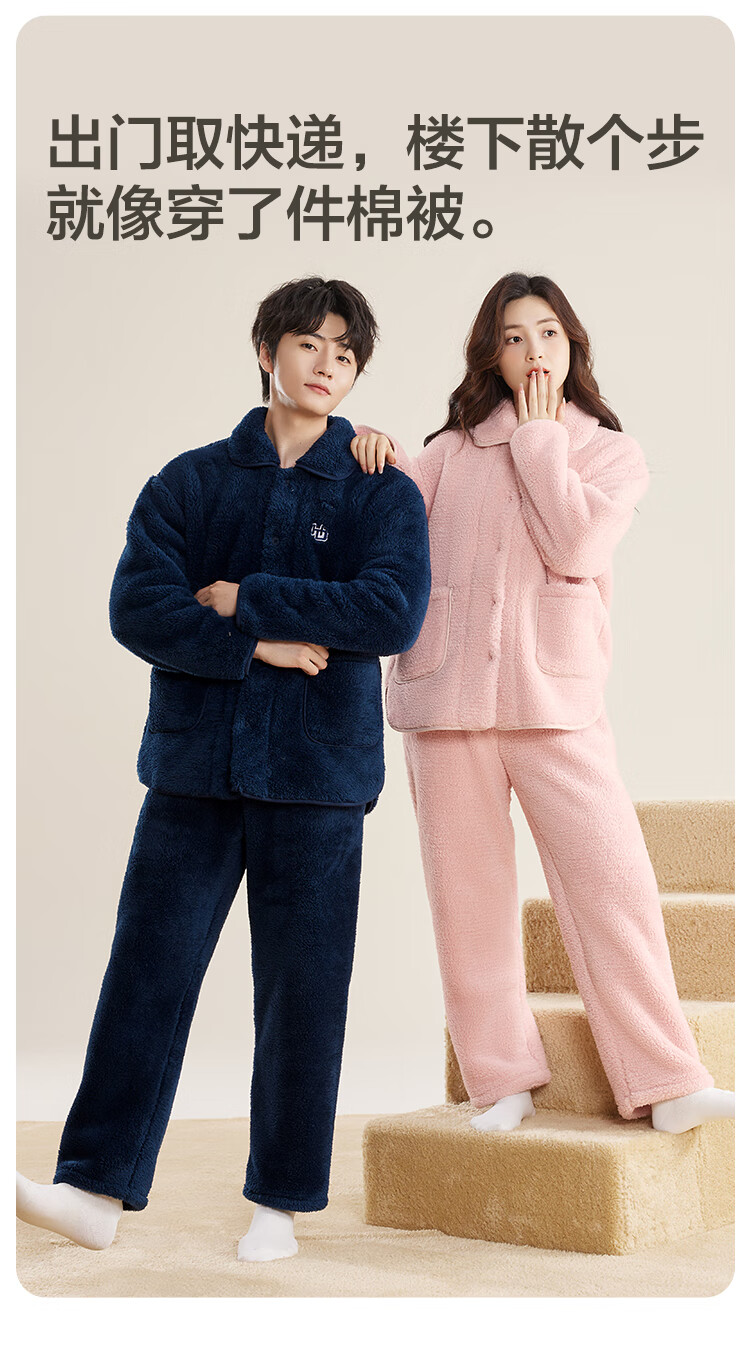 红豆居家男士加绒加厚秋冬睡衣男可外穿保暖家居服 湛蓝 XL