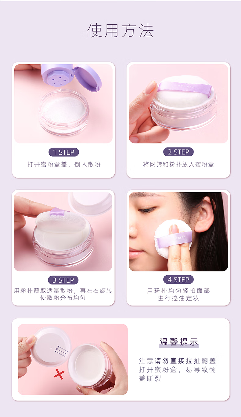 everbab新品/胡椒粉散粉分装盒子空盒带粉扑收纳便携补妆蜜粉女 粉盒 1件