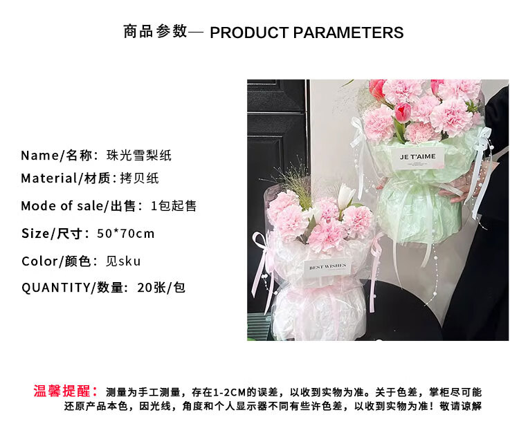 艺良 38g珠光雪梨纸鲜花花束内衬褶皱纸水果礼盒填充纸鲜花包装纸 珠光白(38g珠光雪梨纸)20张