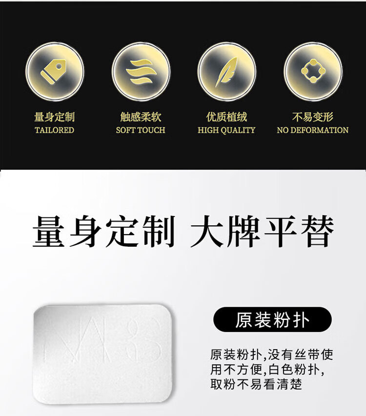 黎倾黑色植绒粉扑散粉扑【带盒】nars大白饼替换干粉定妆ct薄粉饼粉扑