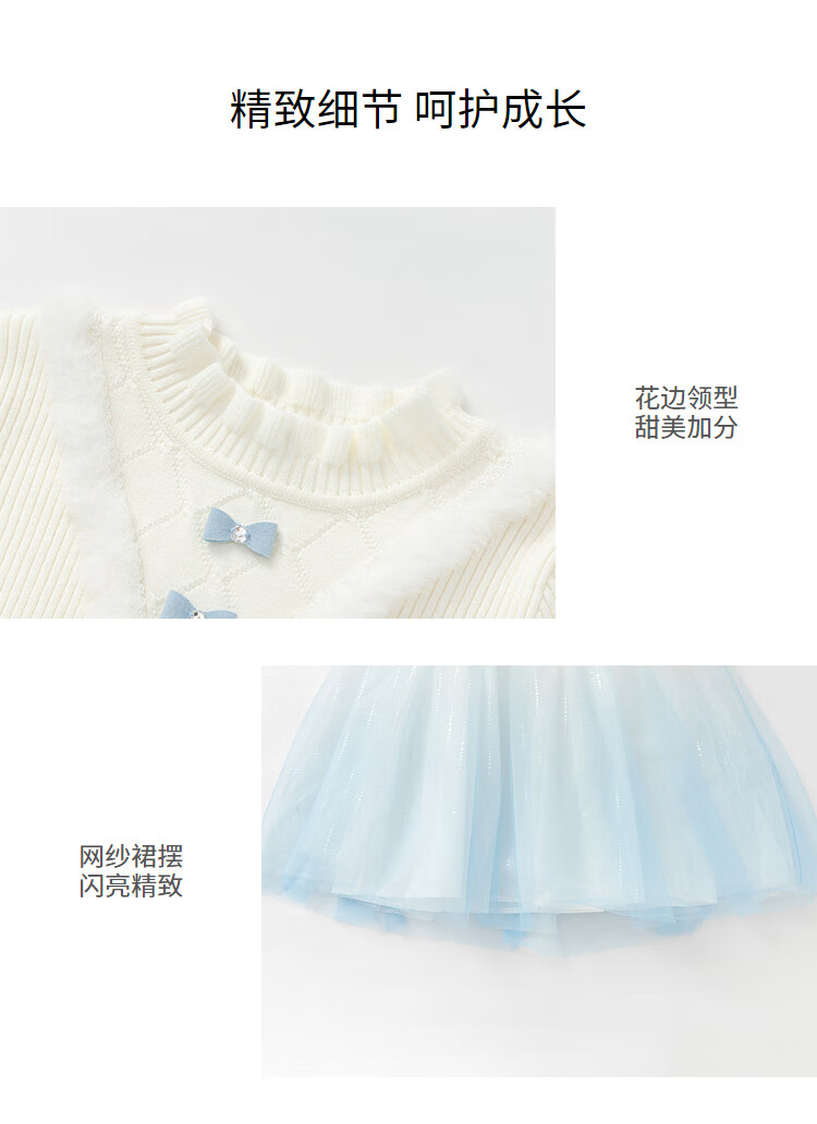 巴拉巴拉童装儿童连衣裙女童秋冬装公主裙渐变网纱裙针织拼接洋气 白蓝色调00318 110