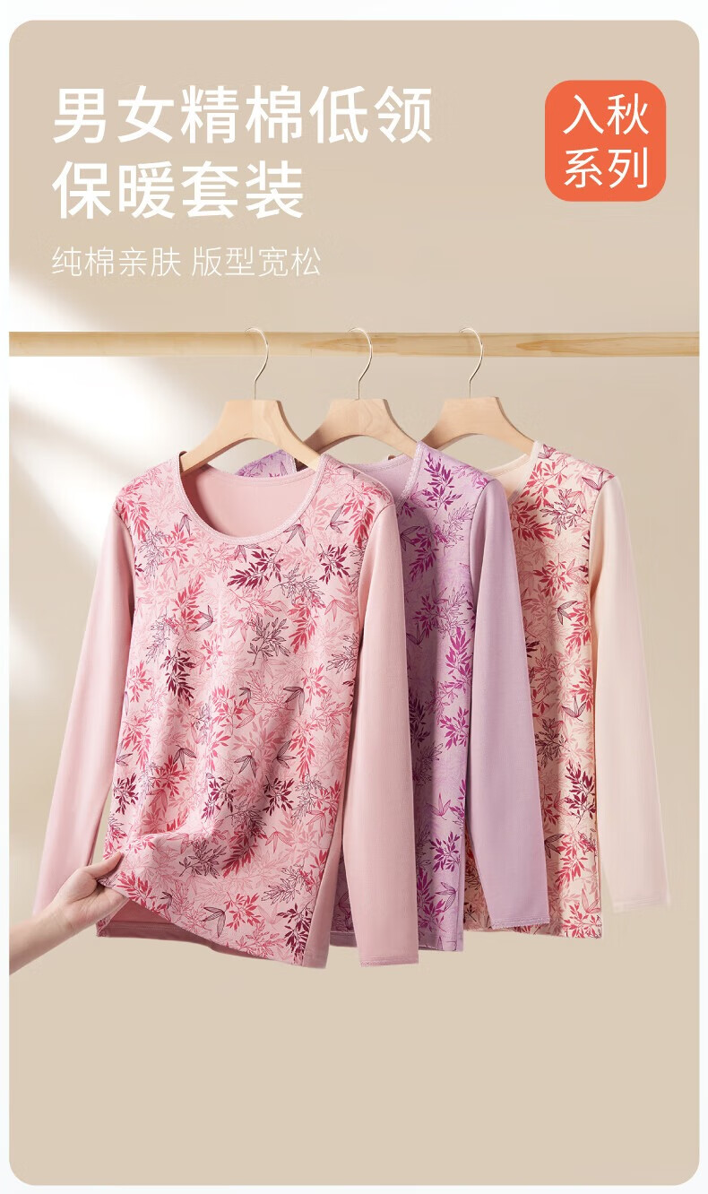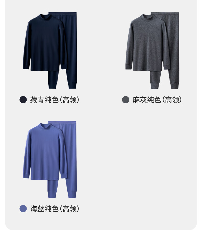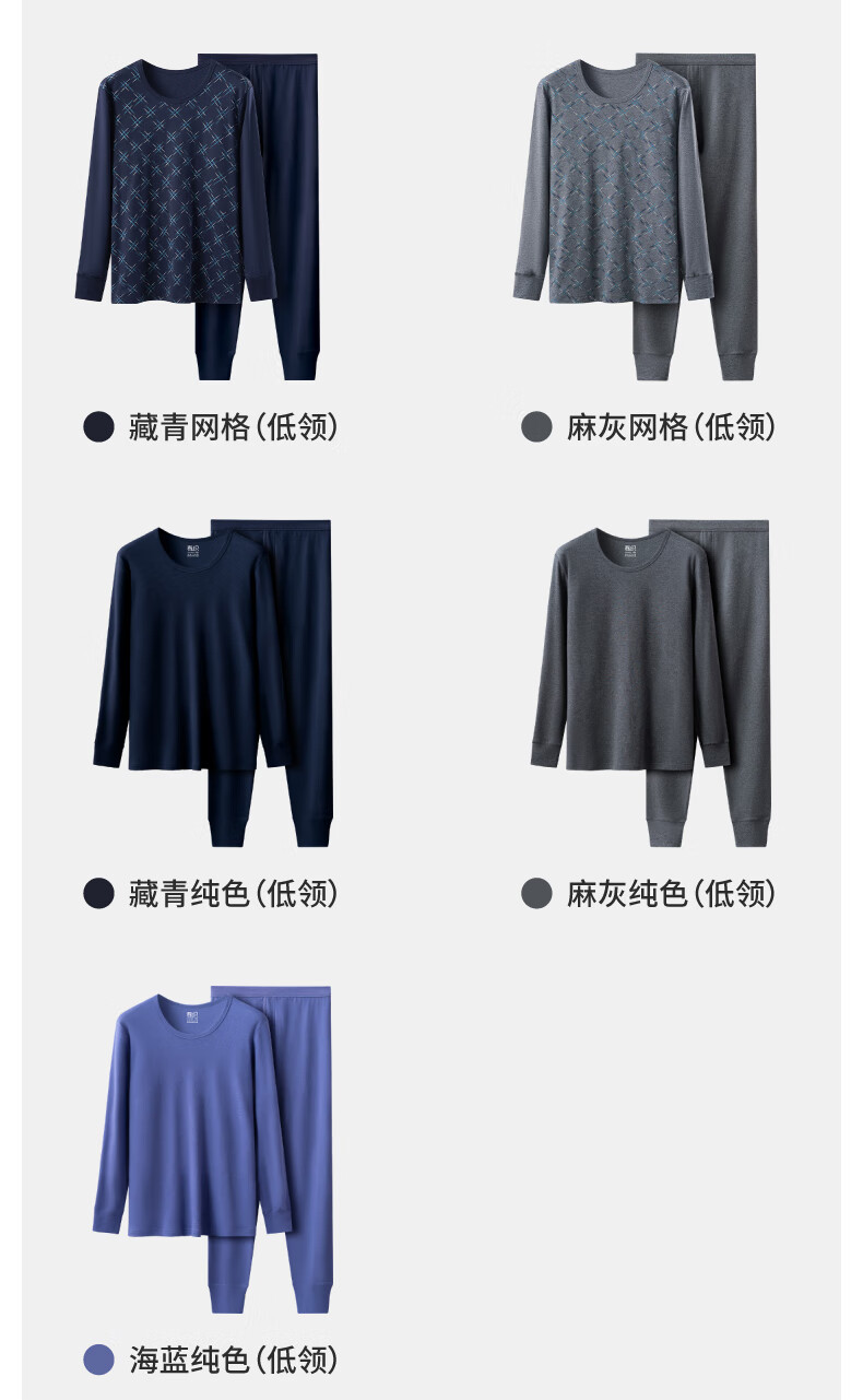 春织中老年人高低圆领秋衣秋裤纯棉套装妈妈秋冬印花加厚保暖内衣 【低领 男款】麻灰网格 95/XL