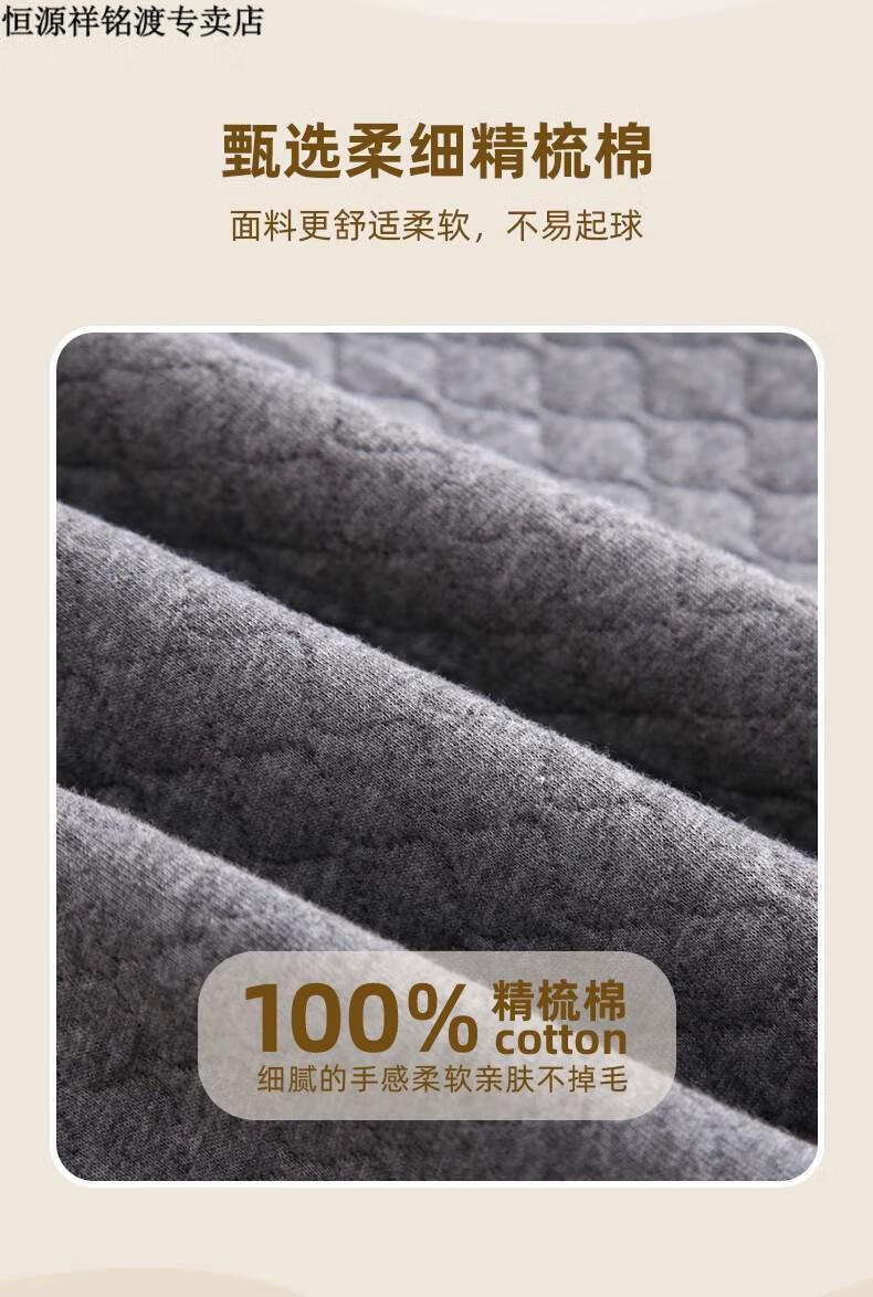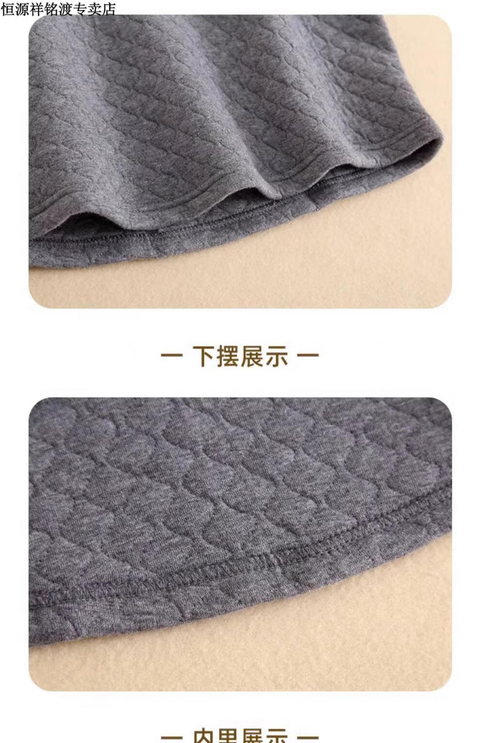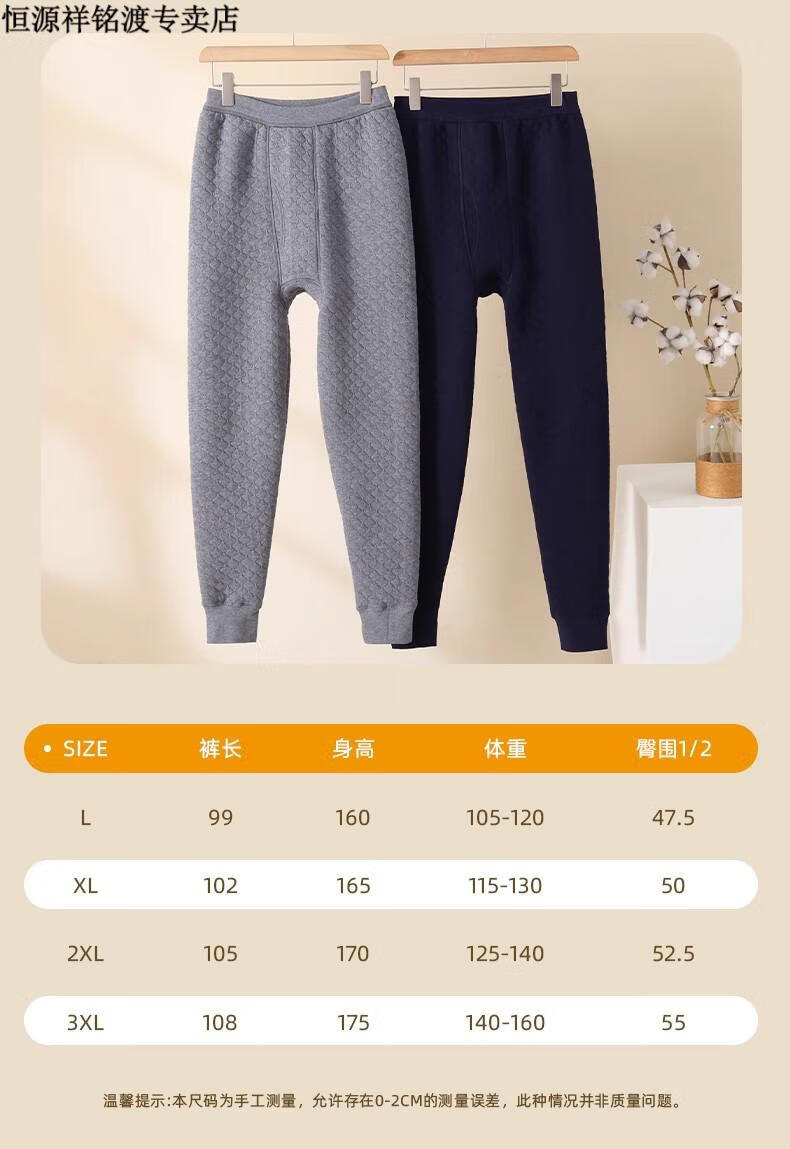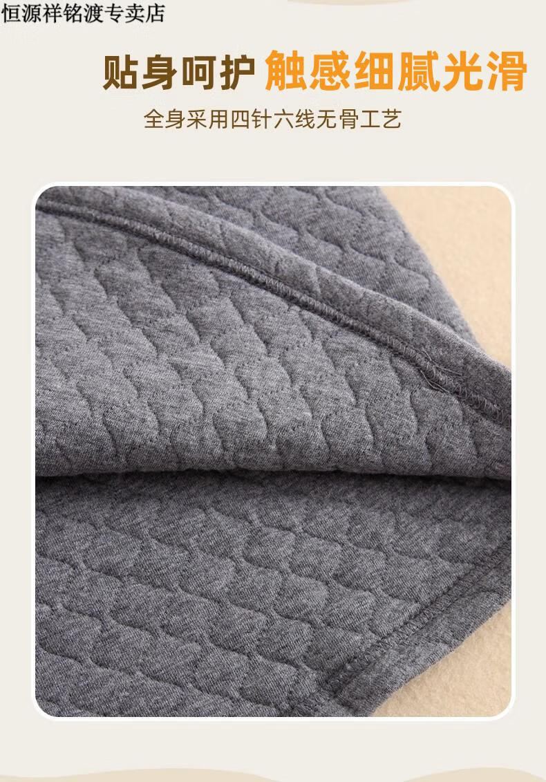 恒源祥三层加厚保暖内衣男士纯棉中老年人棉毛衫夹棉秋衣秋裤套装 藏青圆领 XL 175